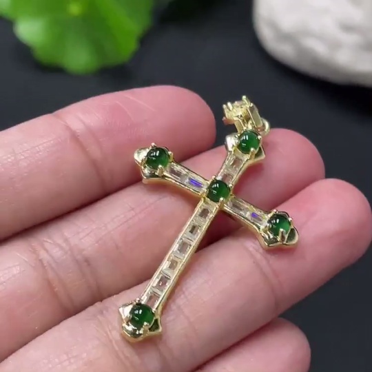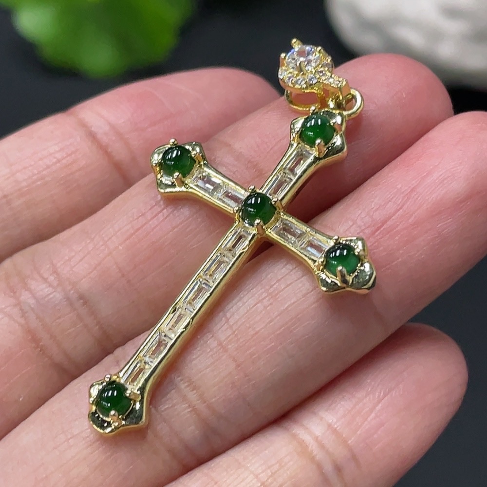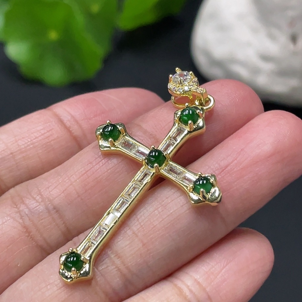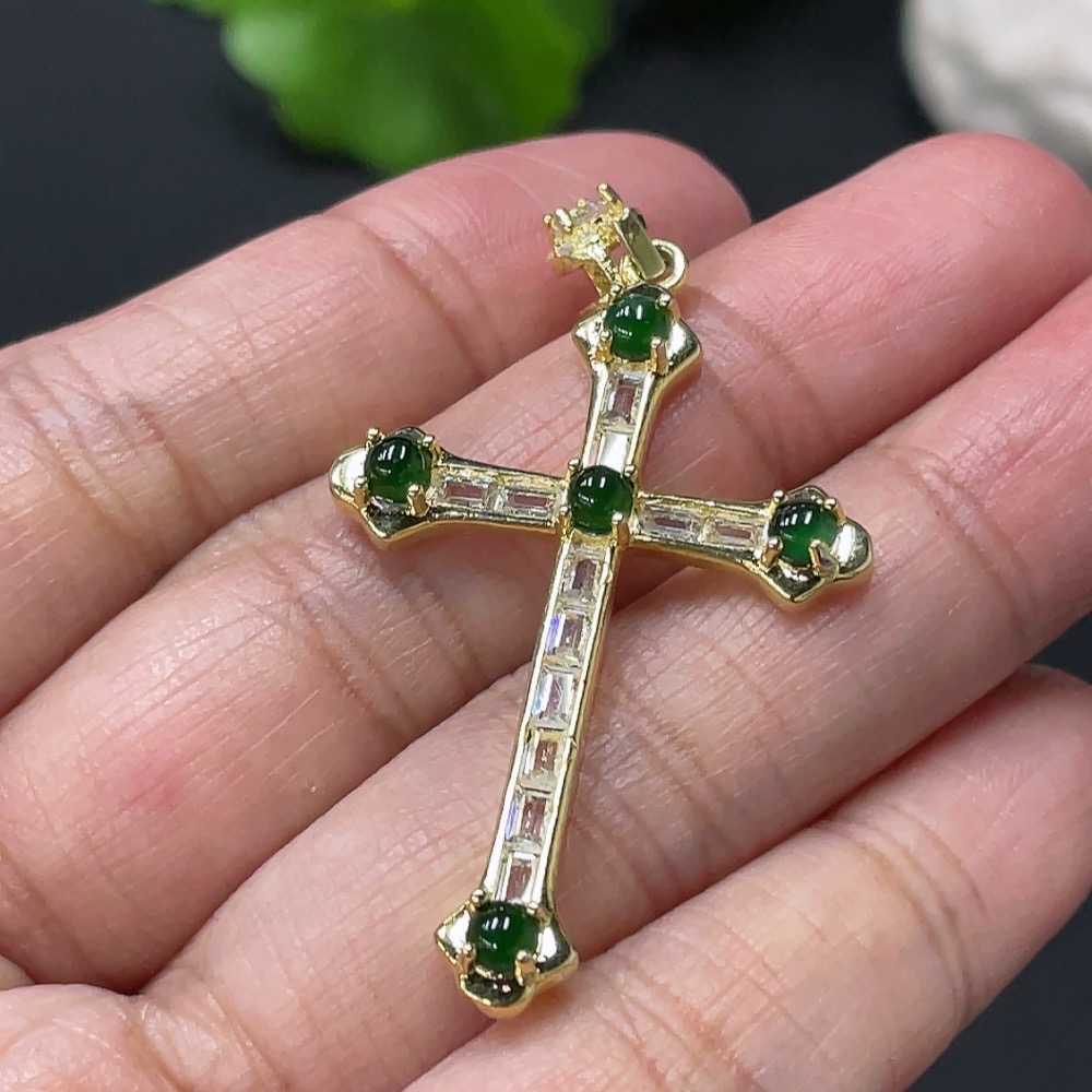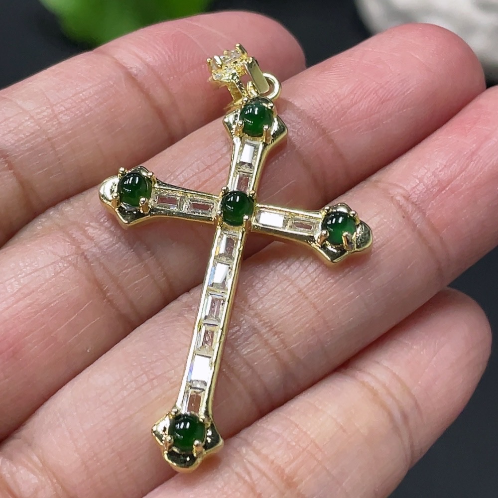 Jadeite Cabochon Inlaid Pendant Non-Gold Inlay Total Weight Approx. 3.25g