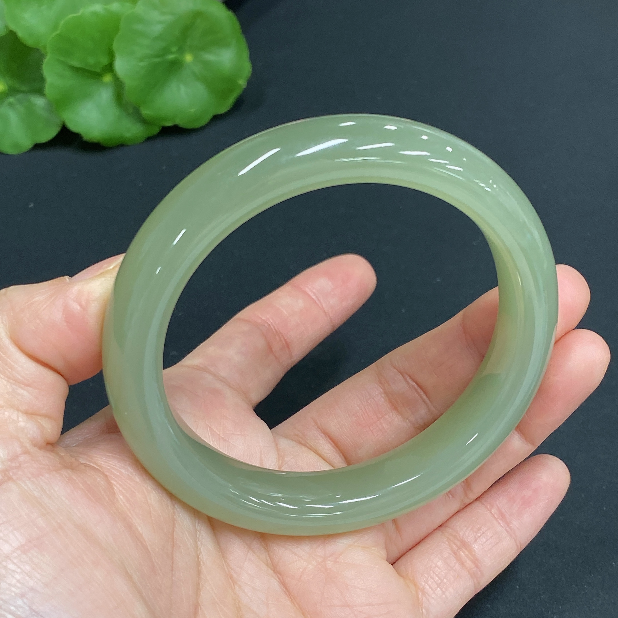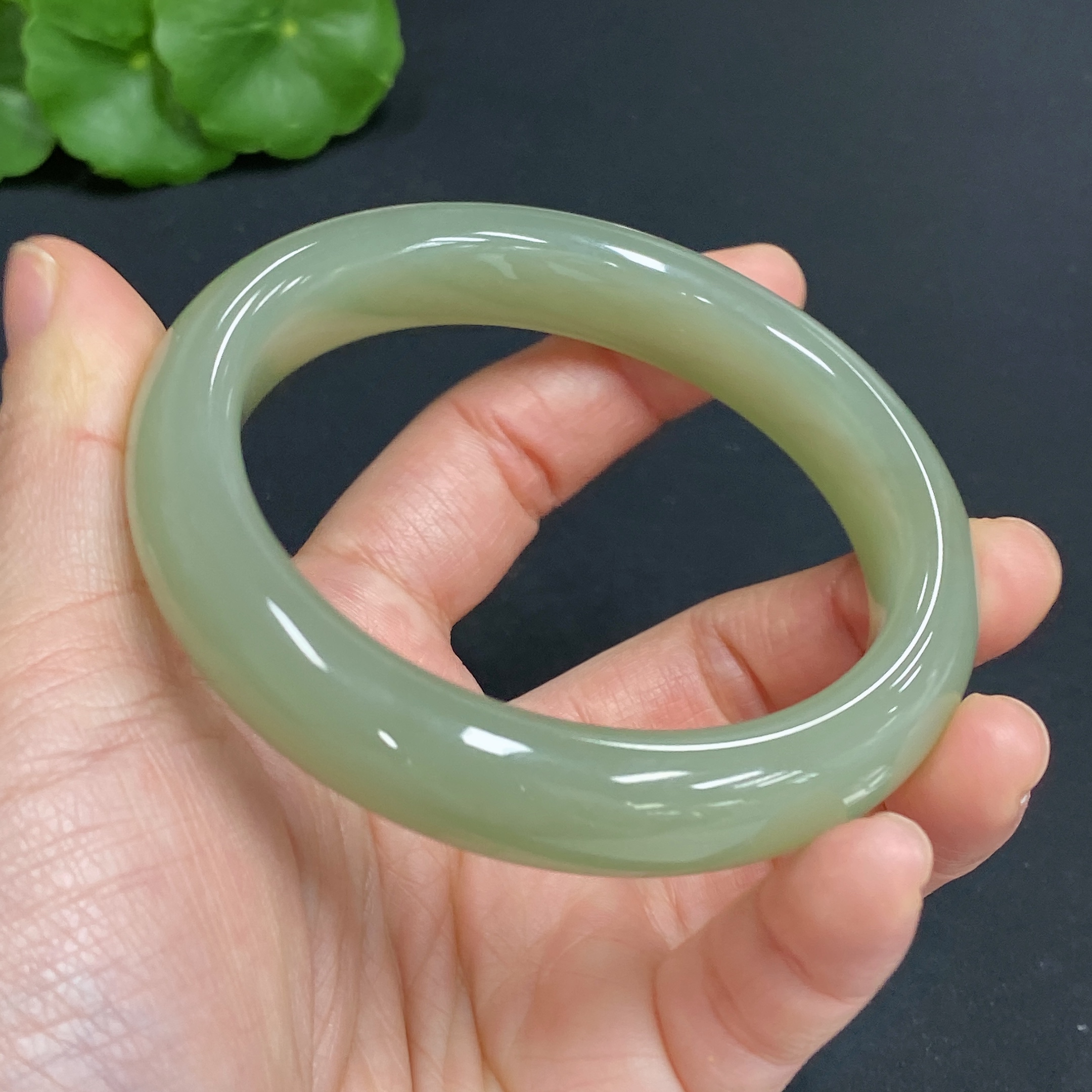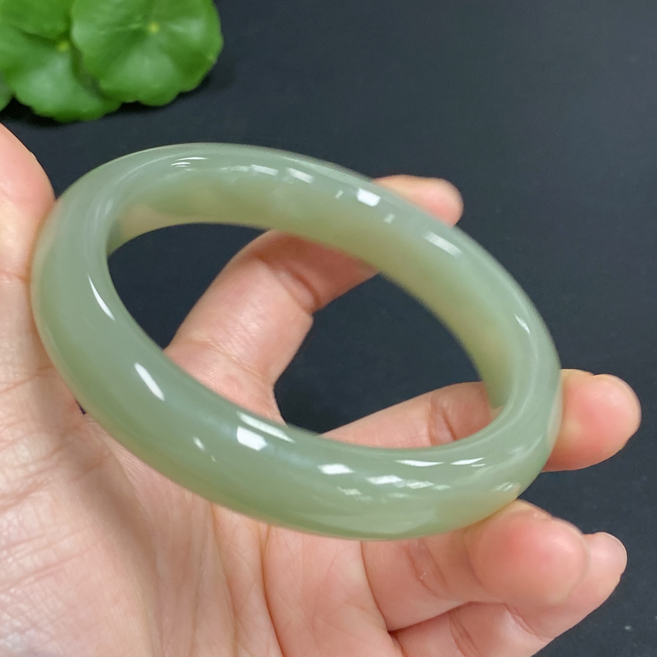 Hetian Jade Round Bracelet (58.4 loop size, approx. 59.8g total weight)