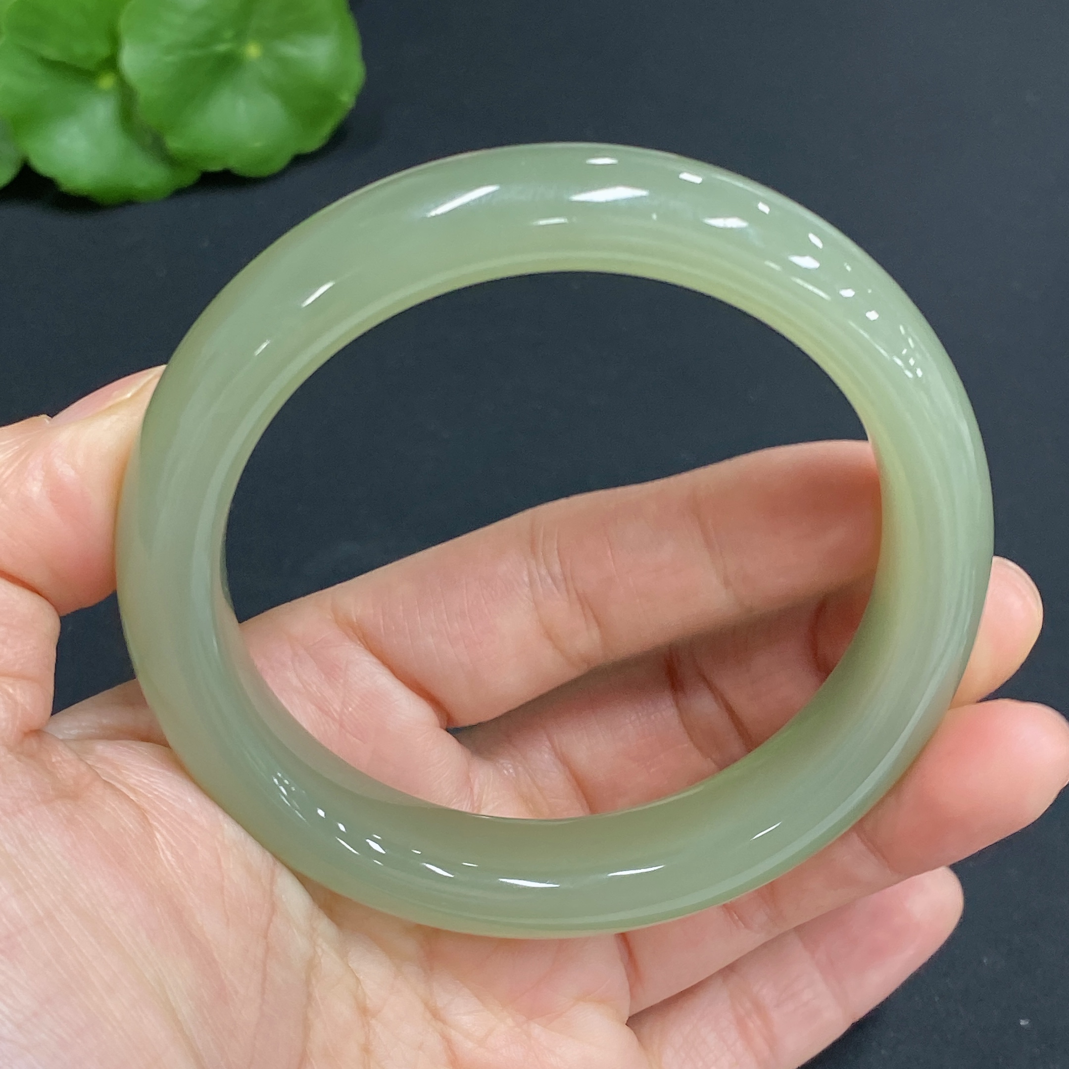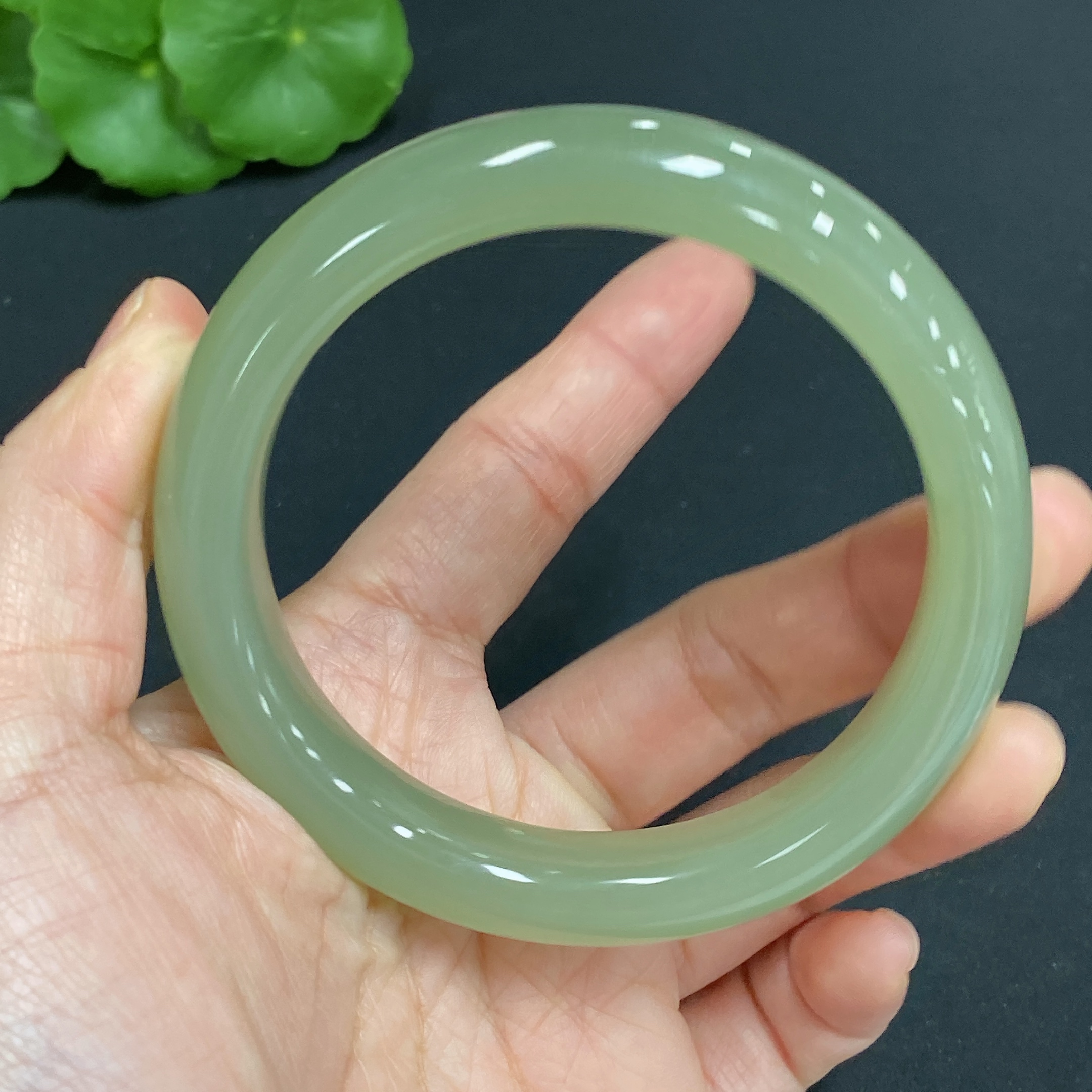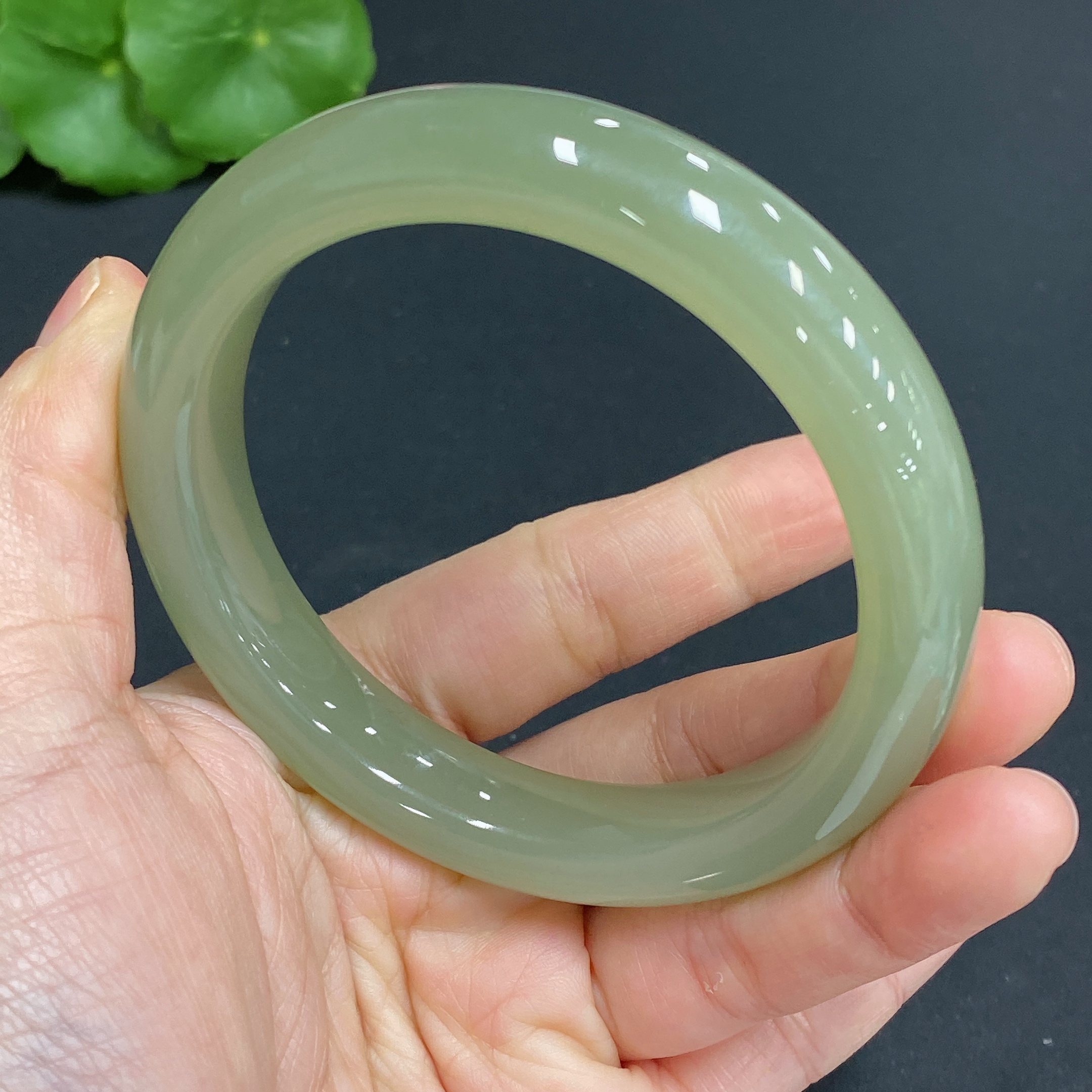 Hetian Jade Round Bracelet (58.4 loop size, approx. 59.8g total weight)