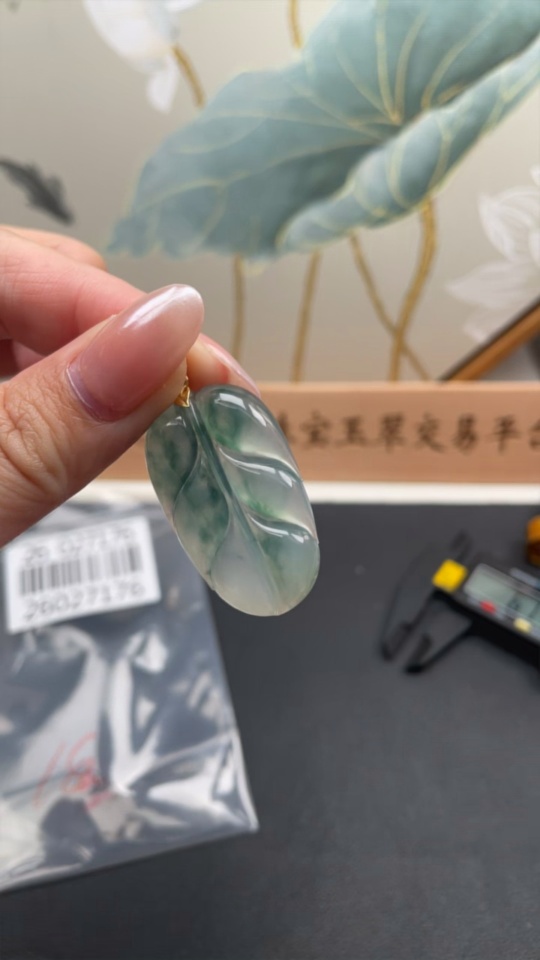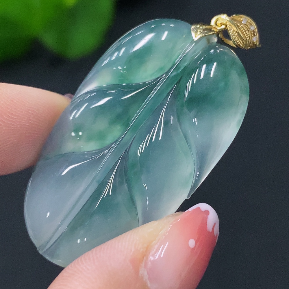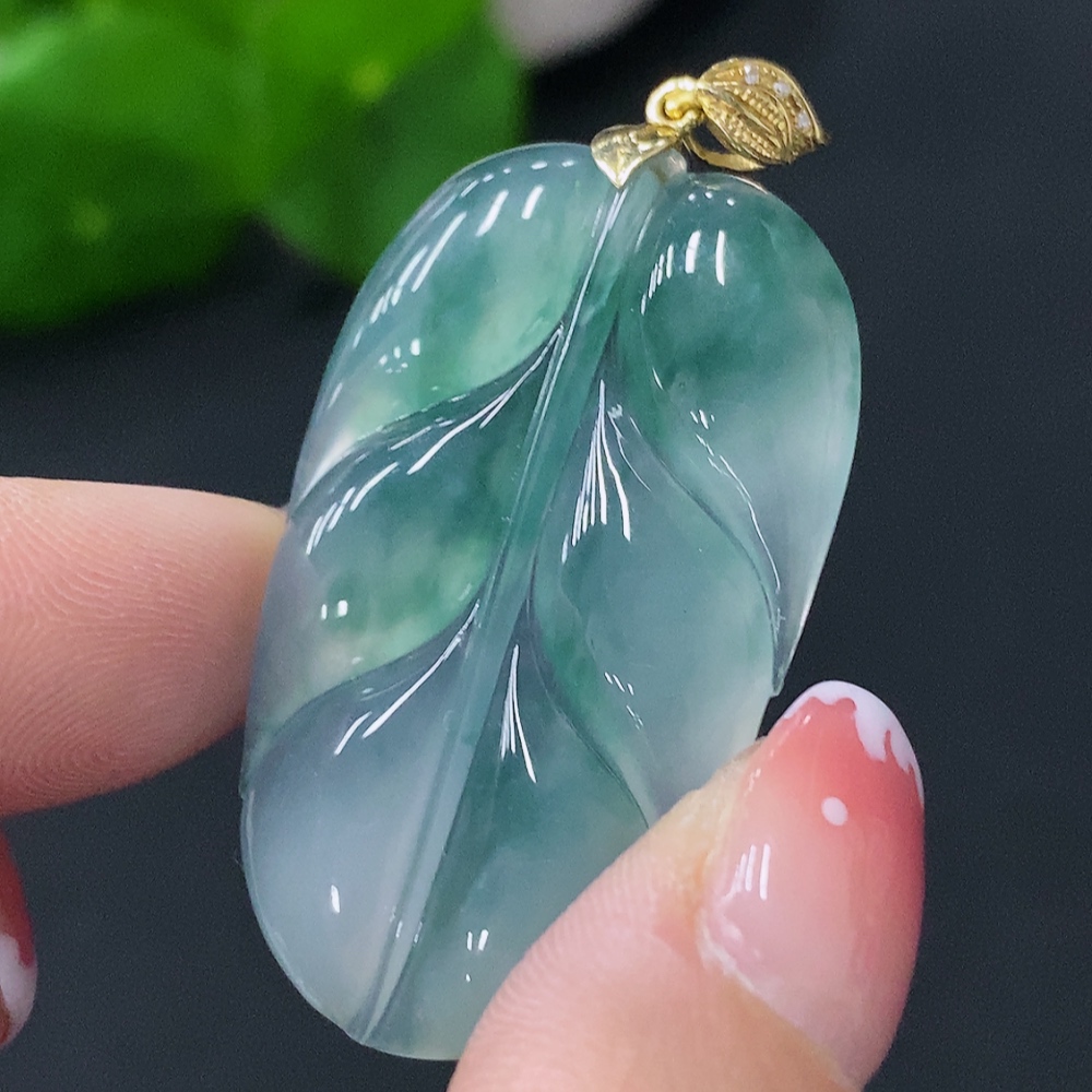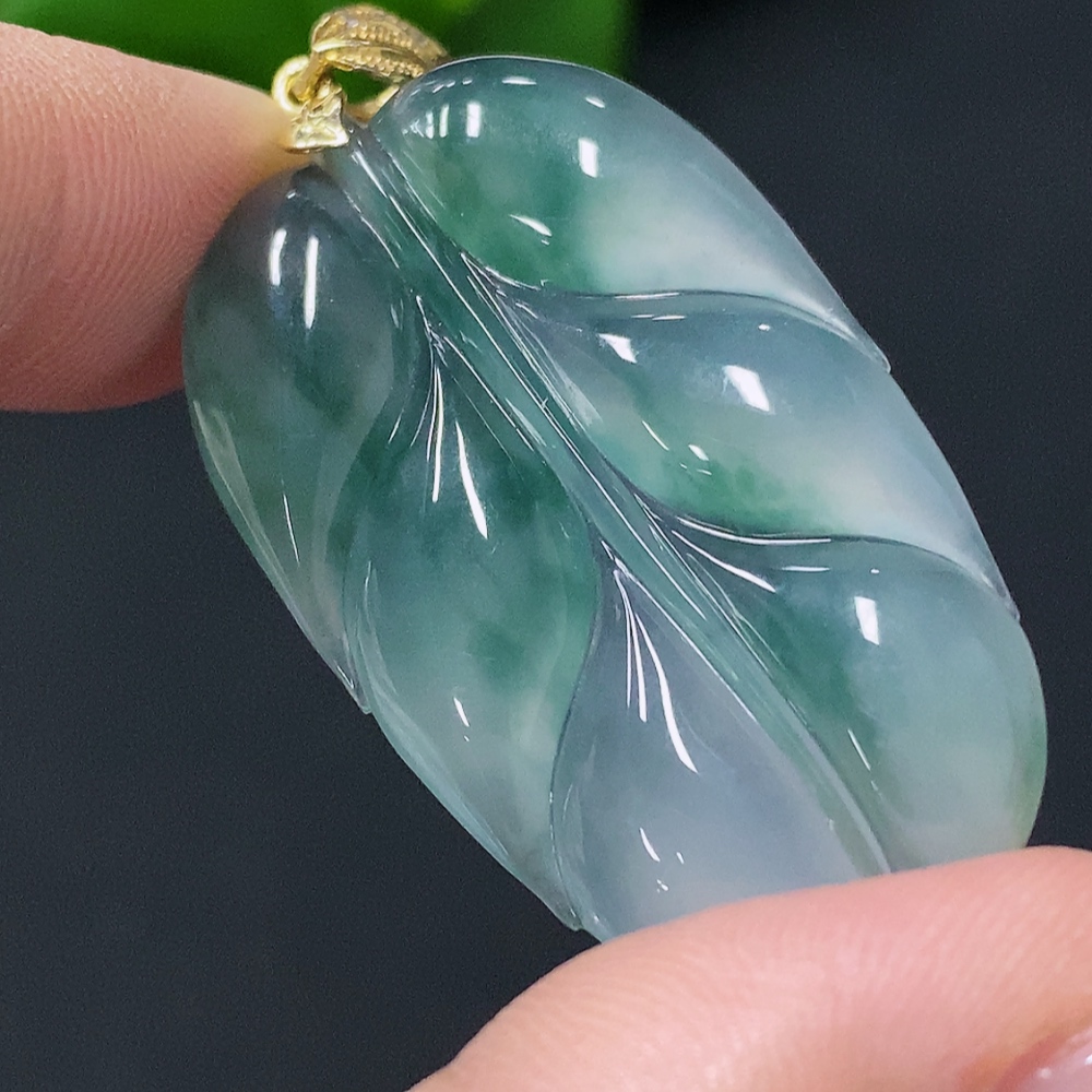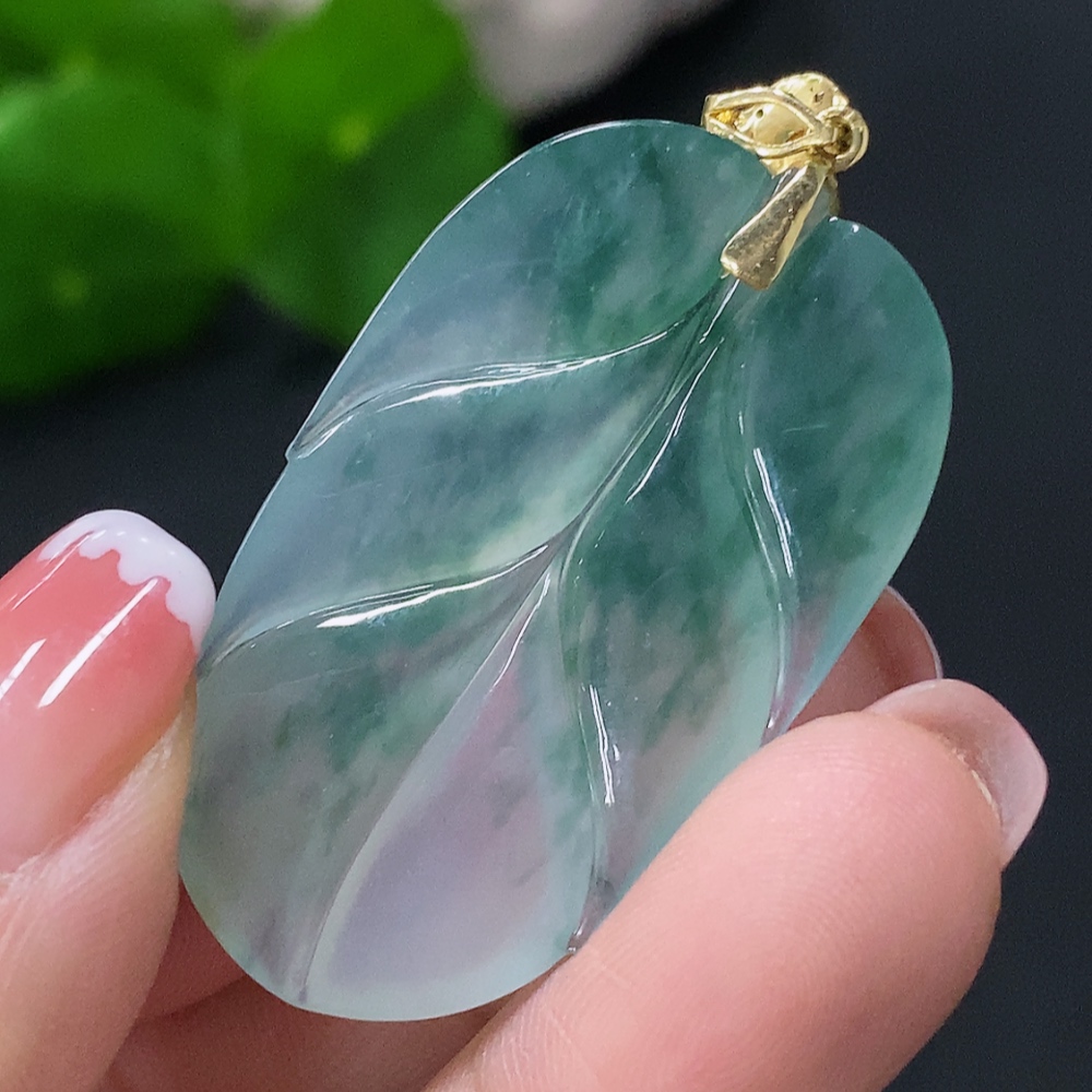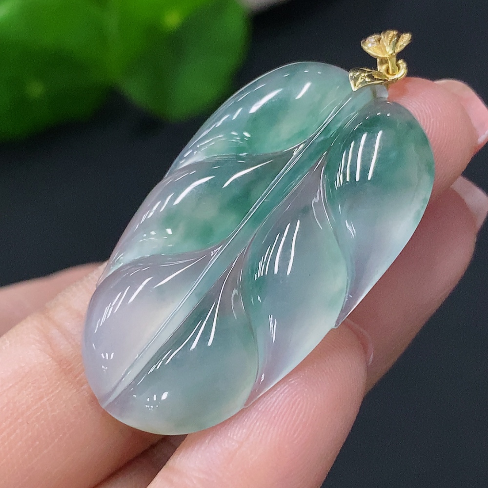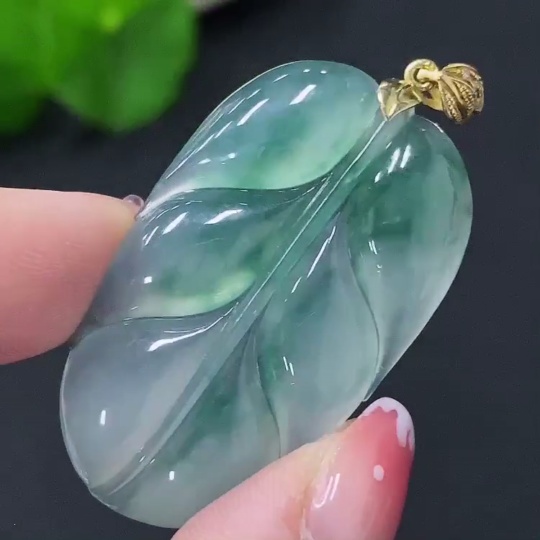 Jadeite Leaf Pendant with 18K Gold Clasp, Total Weight Approx. 7.9g
