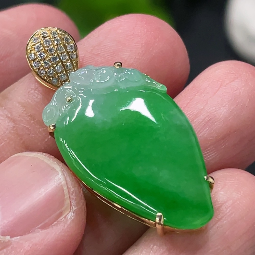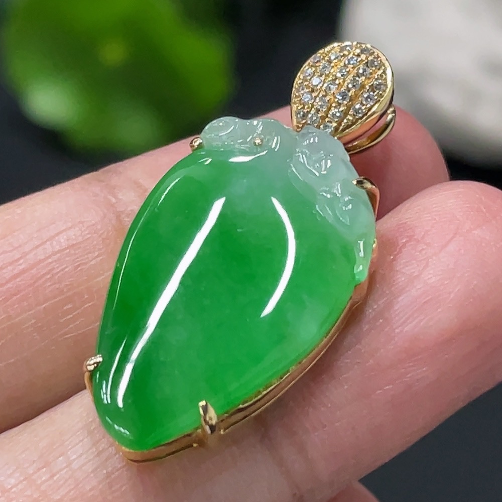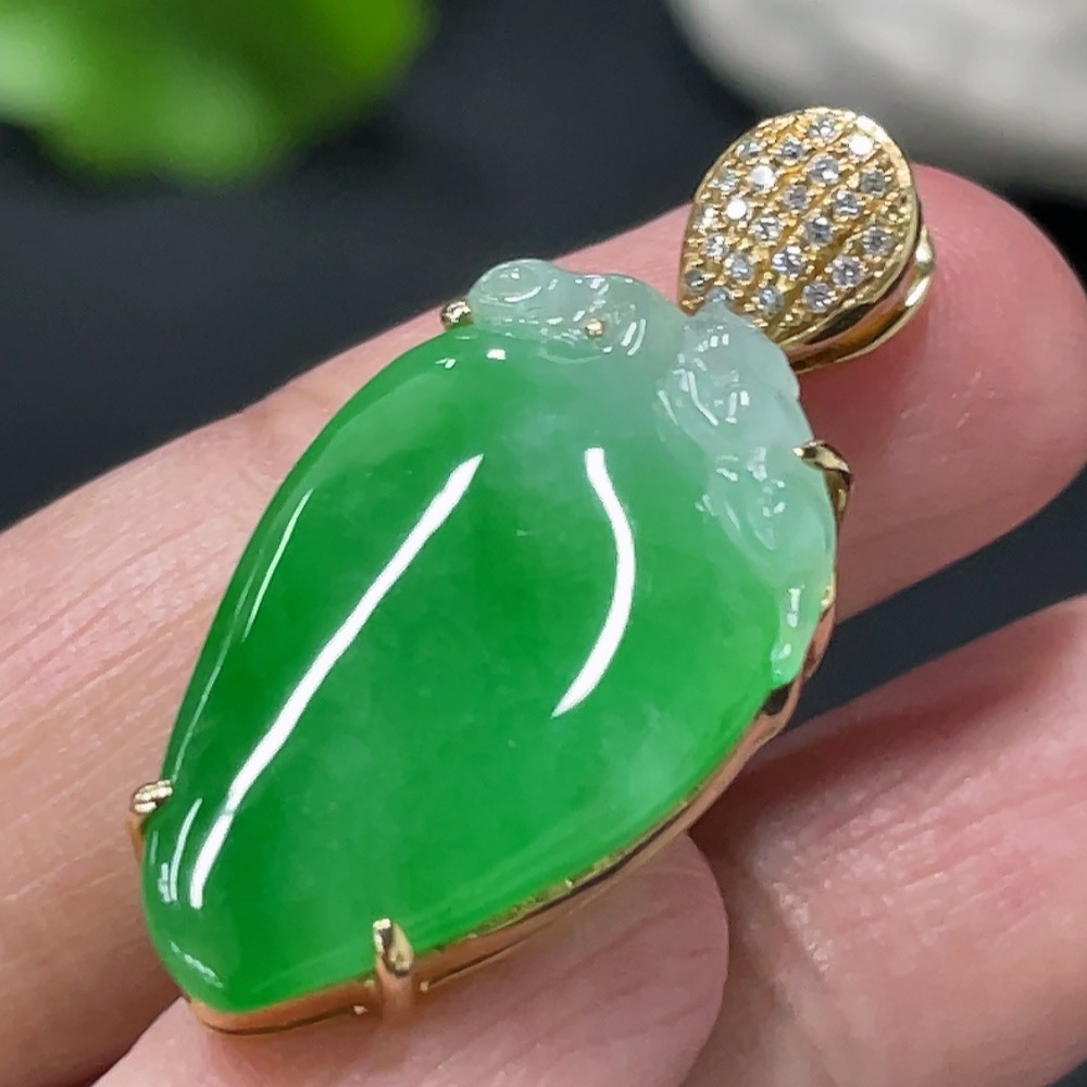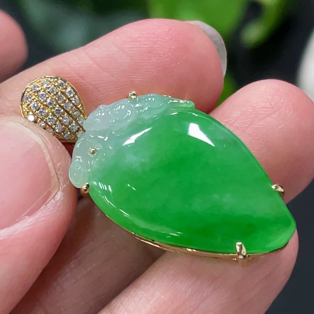 Jadeite Peach Pendant with 18K Gold Setting, Total Weight Approx. 5.77g