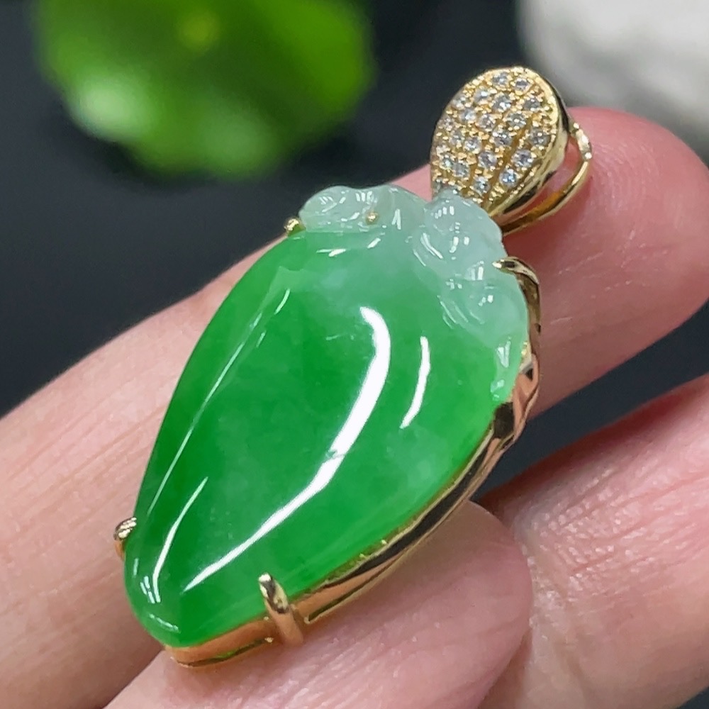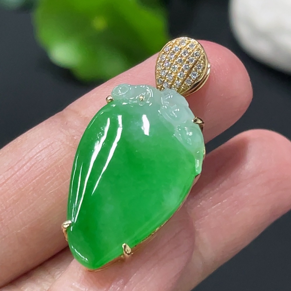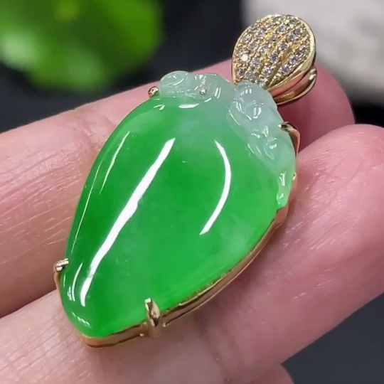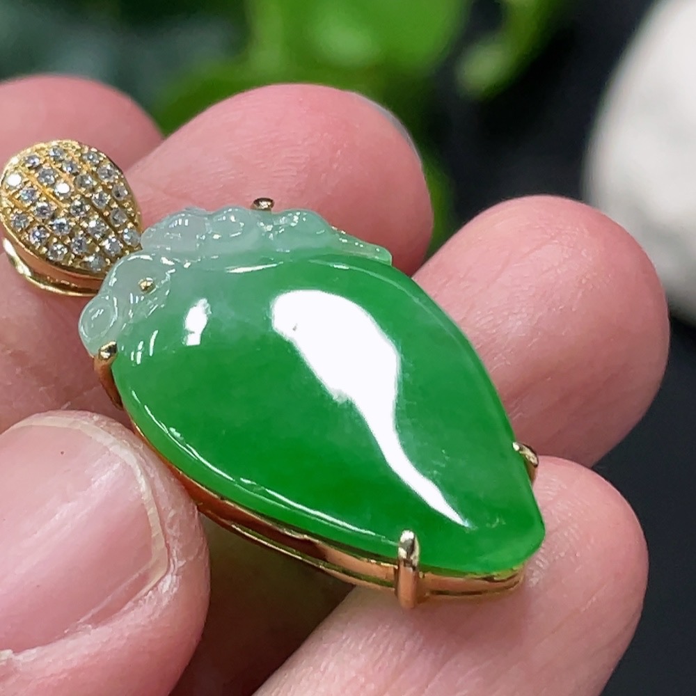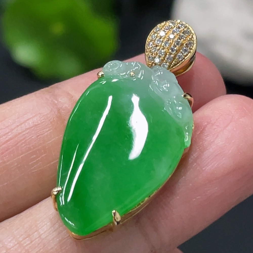 Jadeite Peach Pendant with 18K Gold Setting, Total Weight Approx. 5.77g
