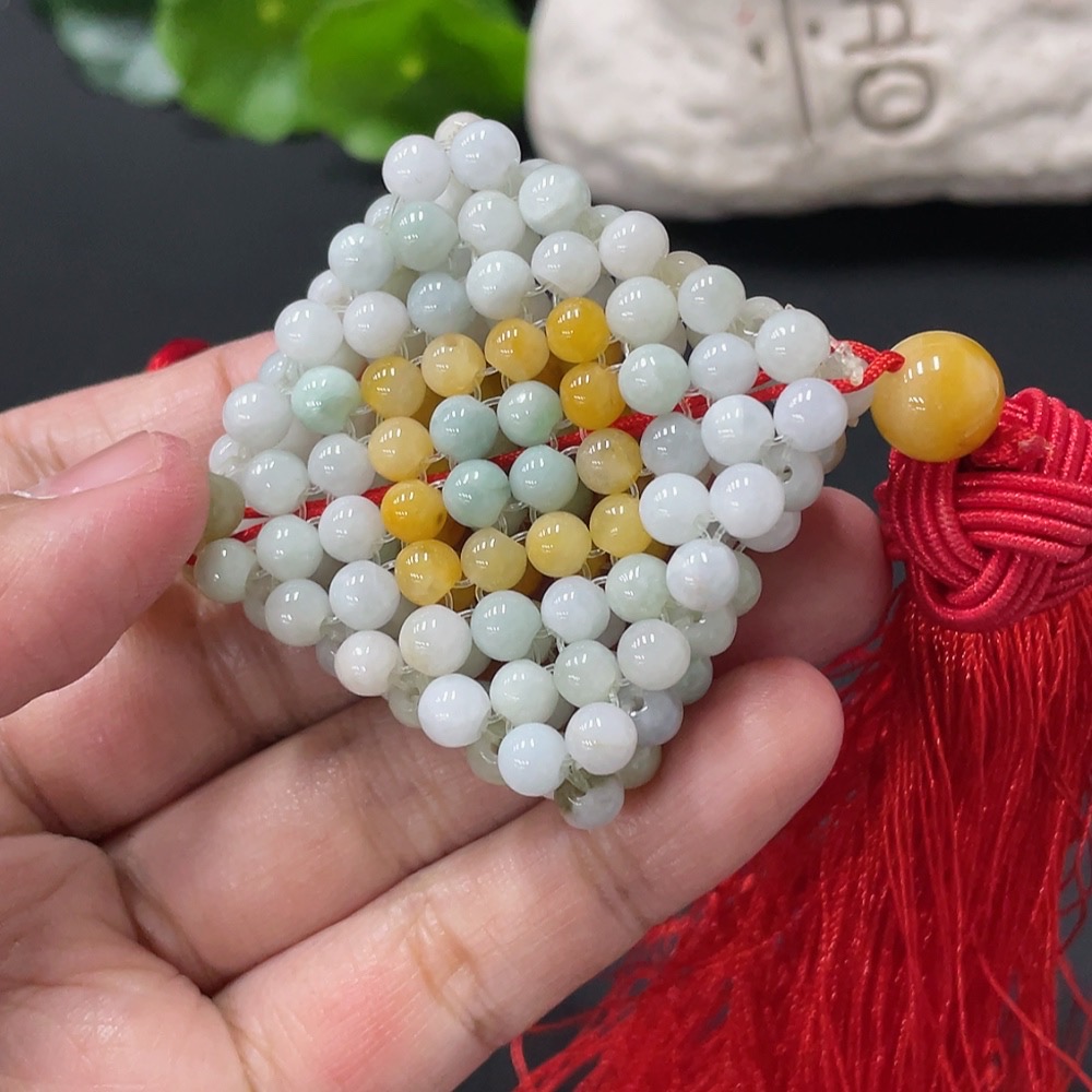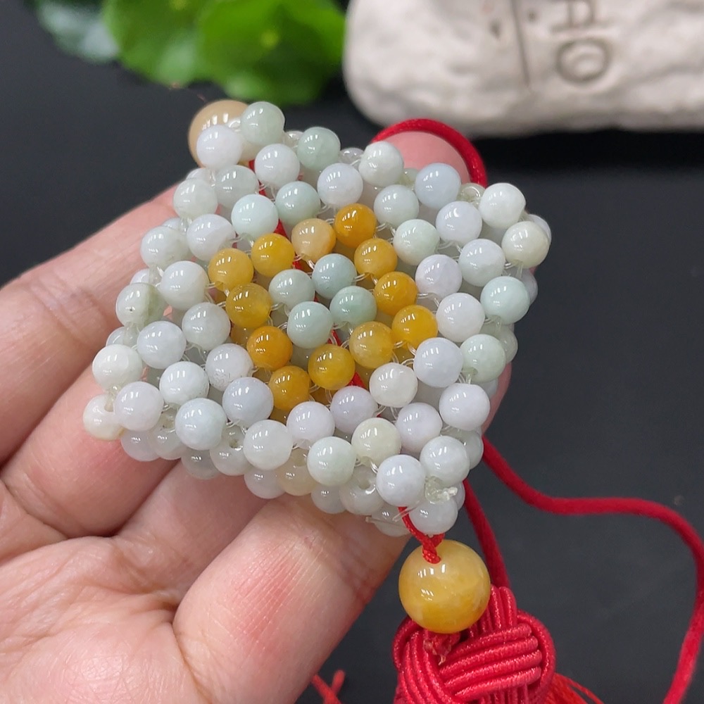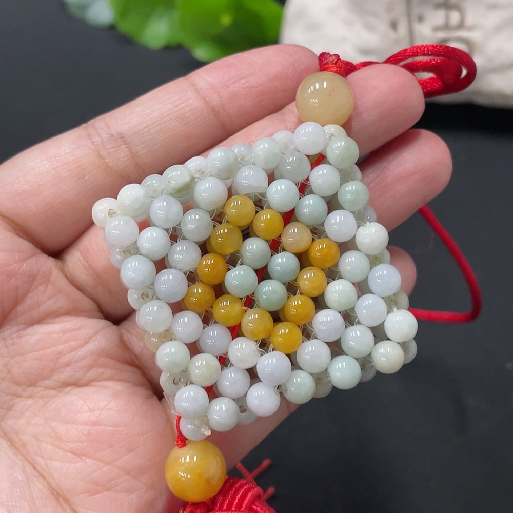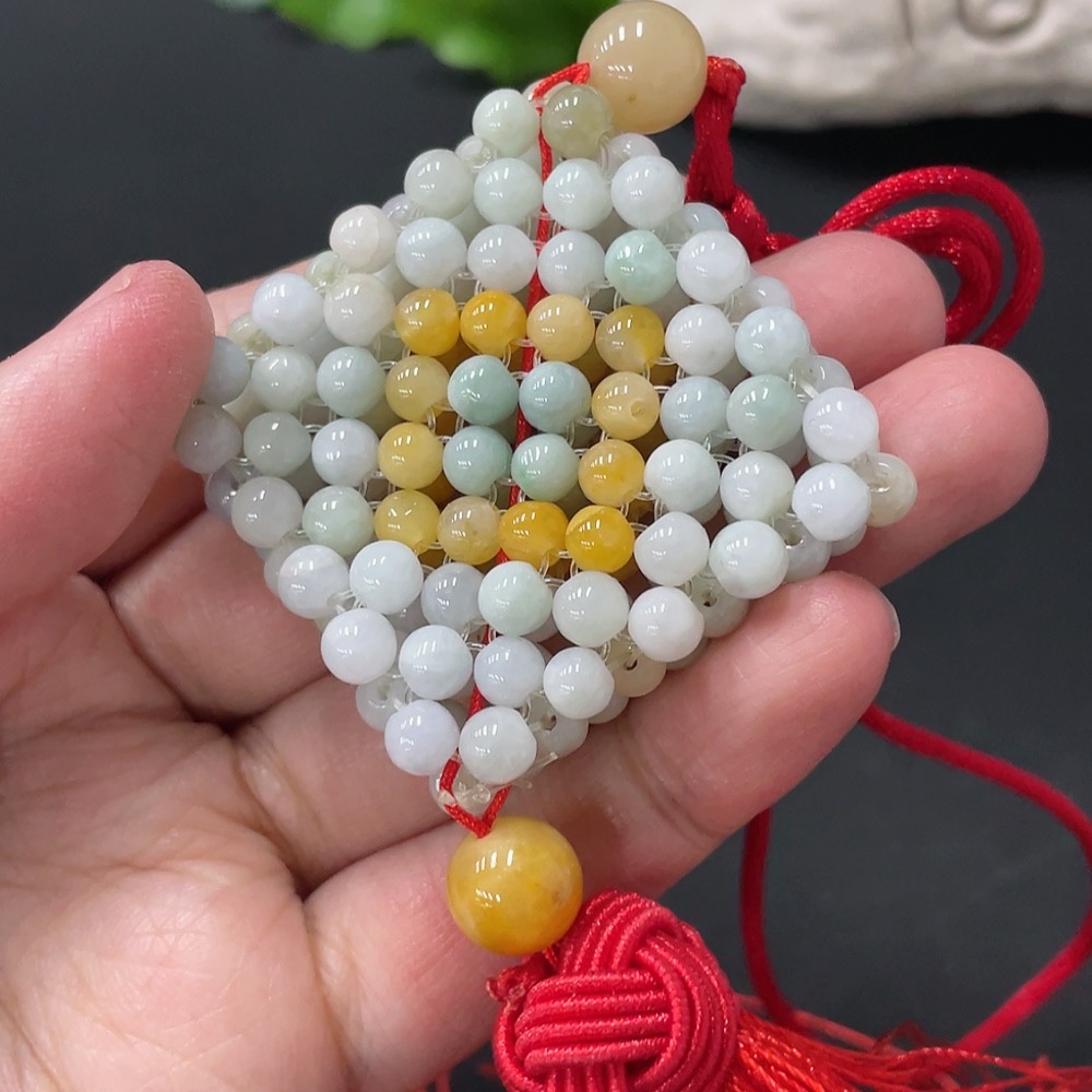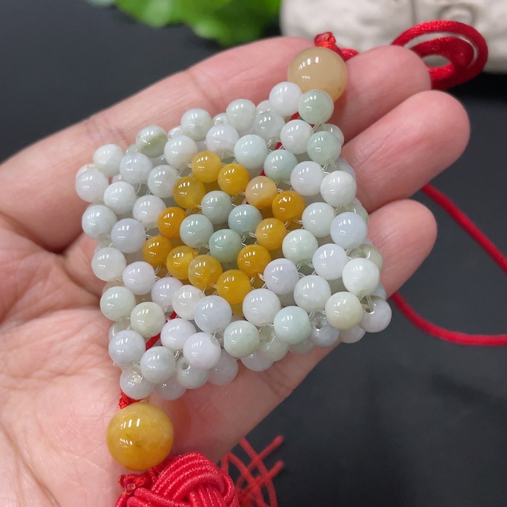 Jadeite Car Hanging Total Weight About 43g Yellow Beads Non-A