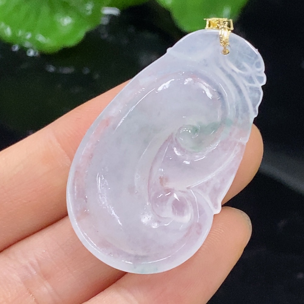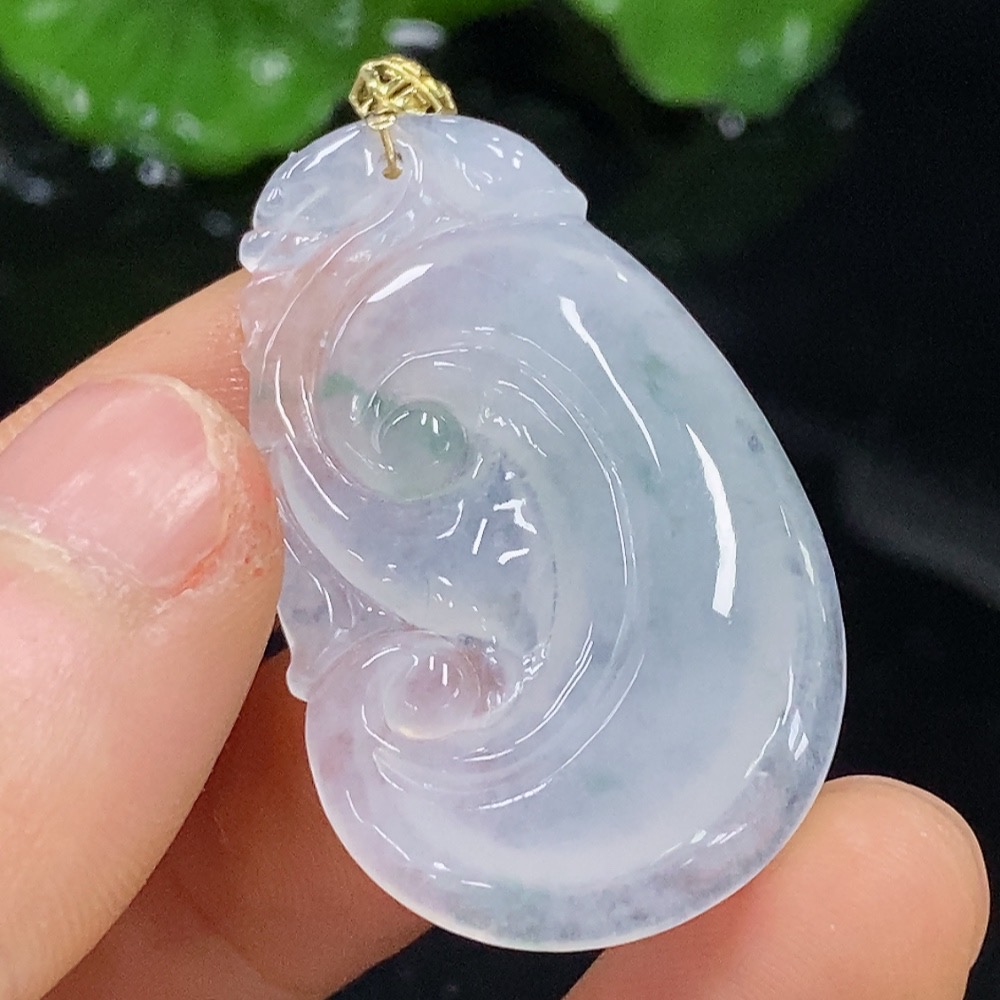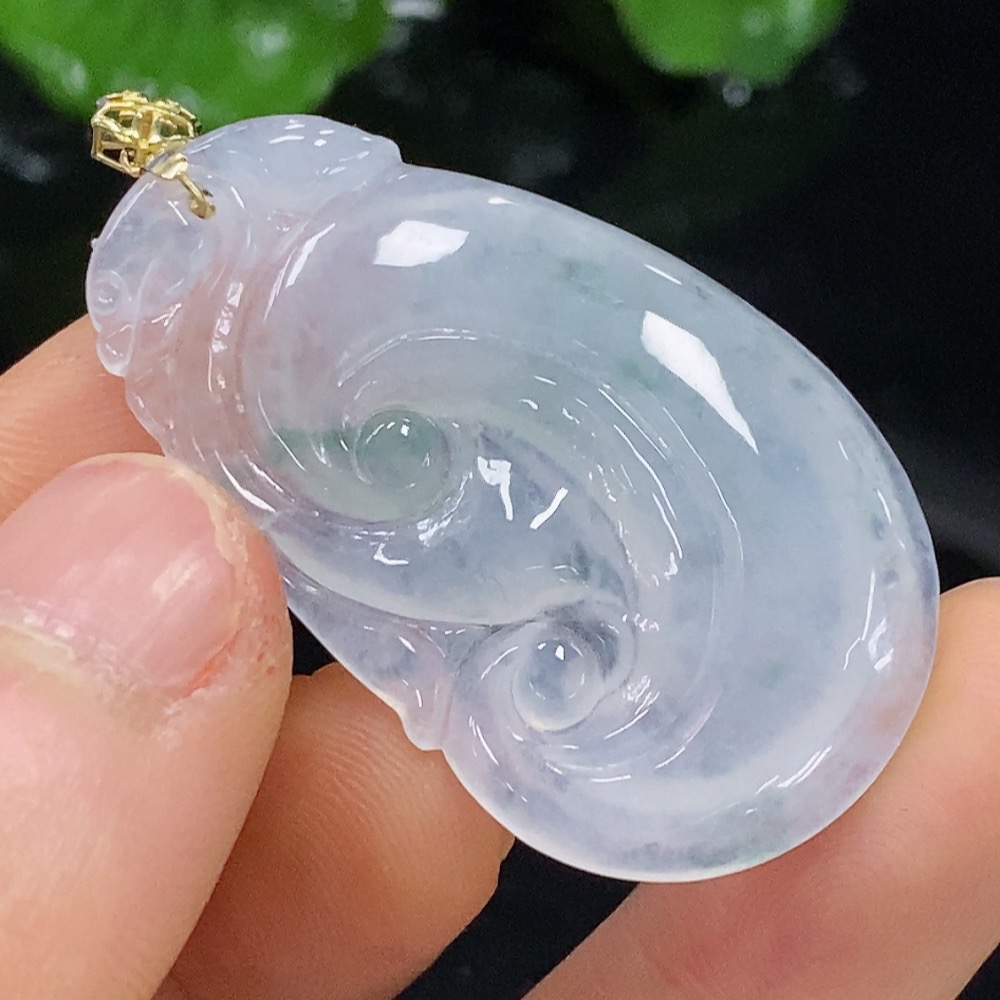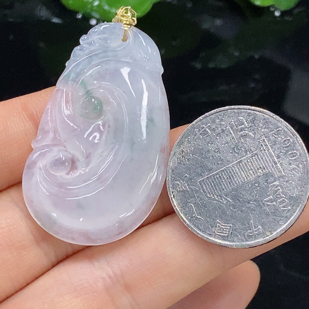 Jadeite Ruyi Pendant with 18K Gold Clasp, Total Weight Approx. 7.54g