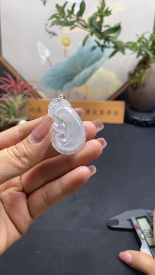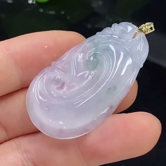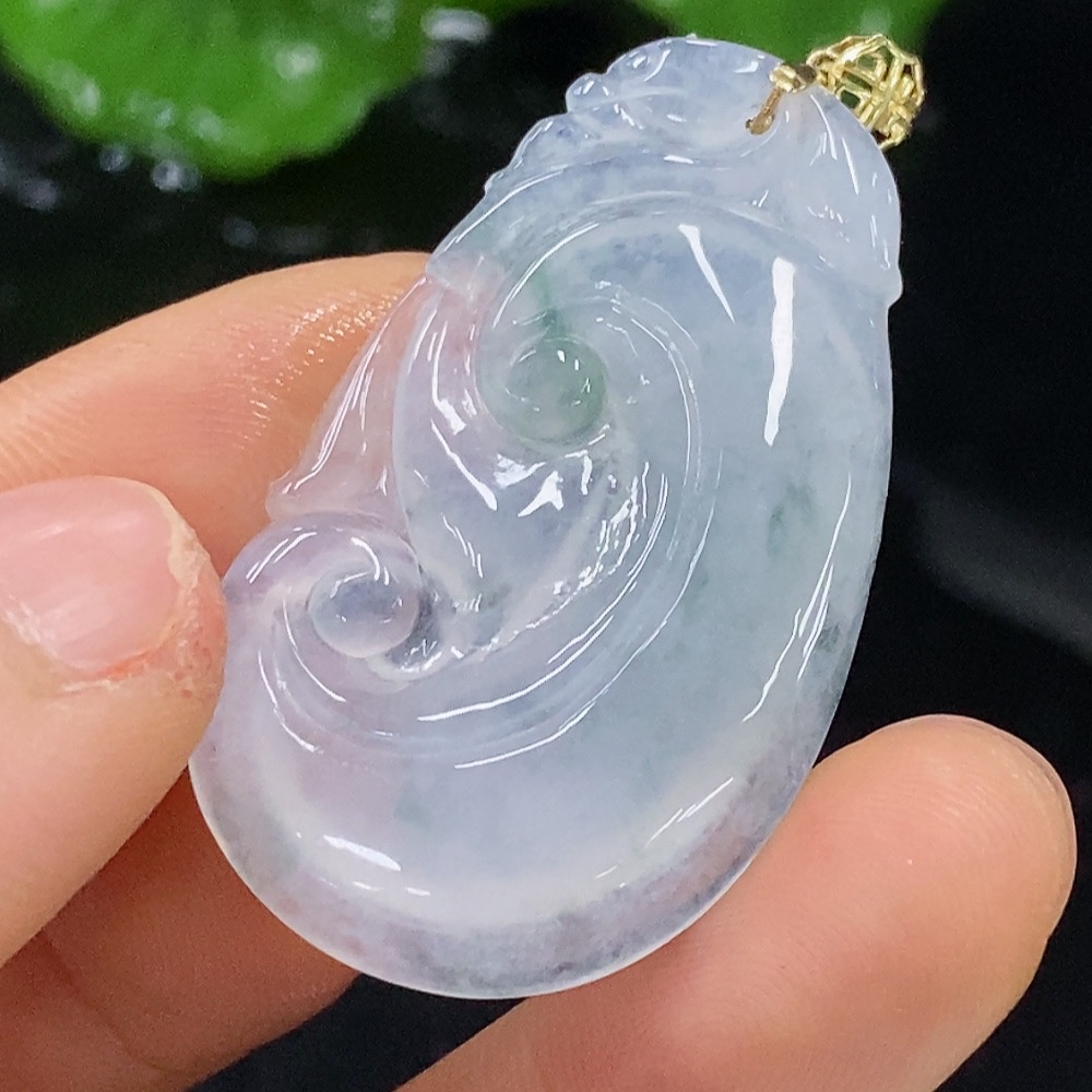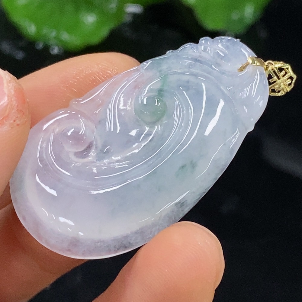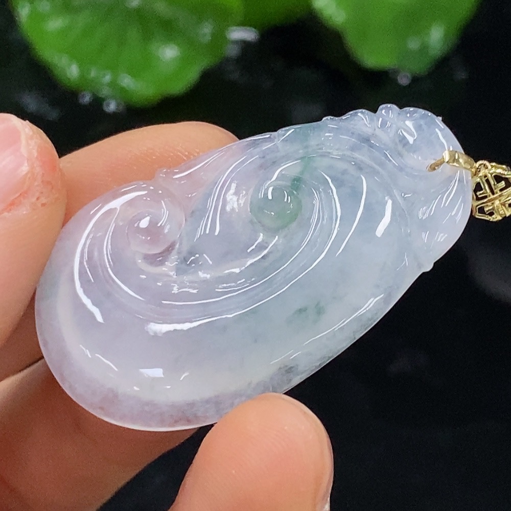 Jadeite Ruyi Pendant with 18K Gold Clasp, Total Weight Approx. 7.54g