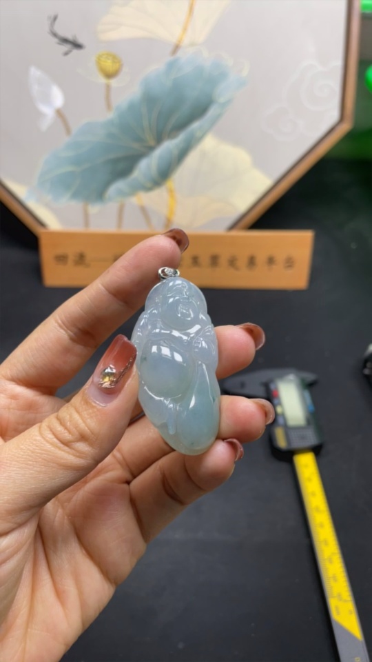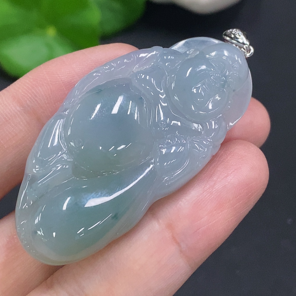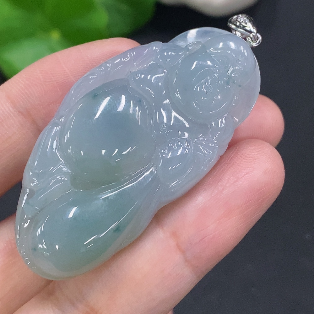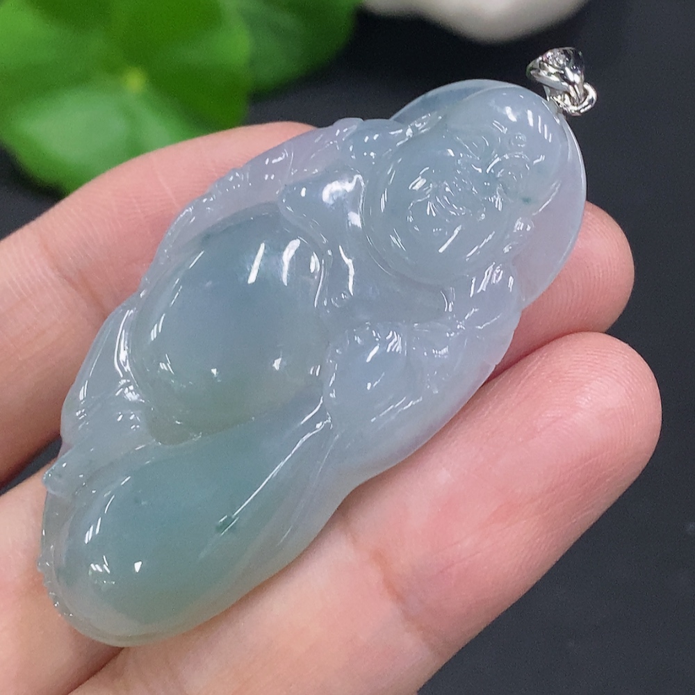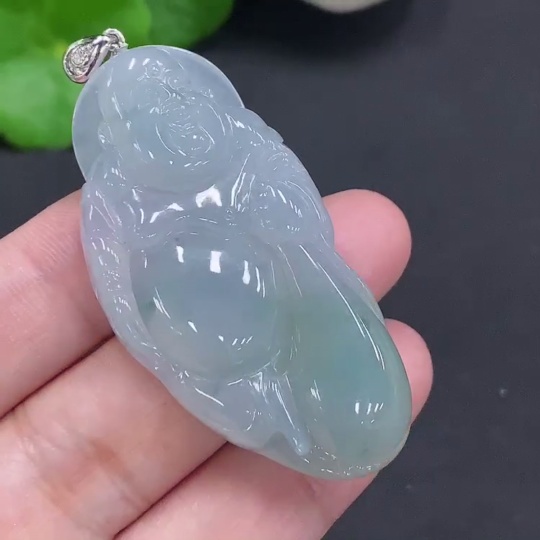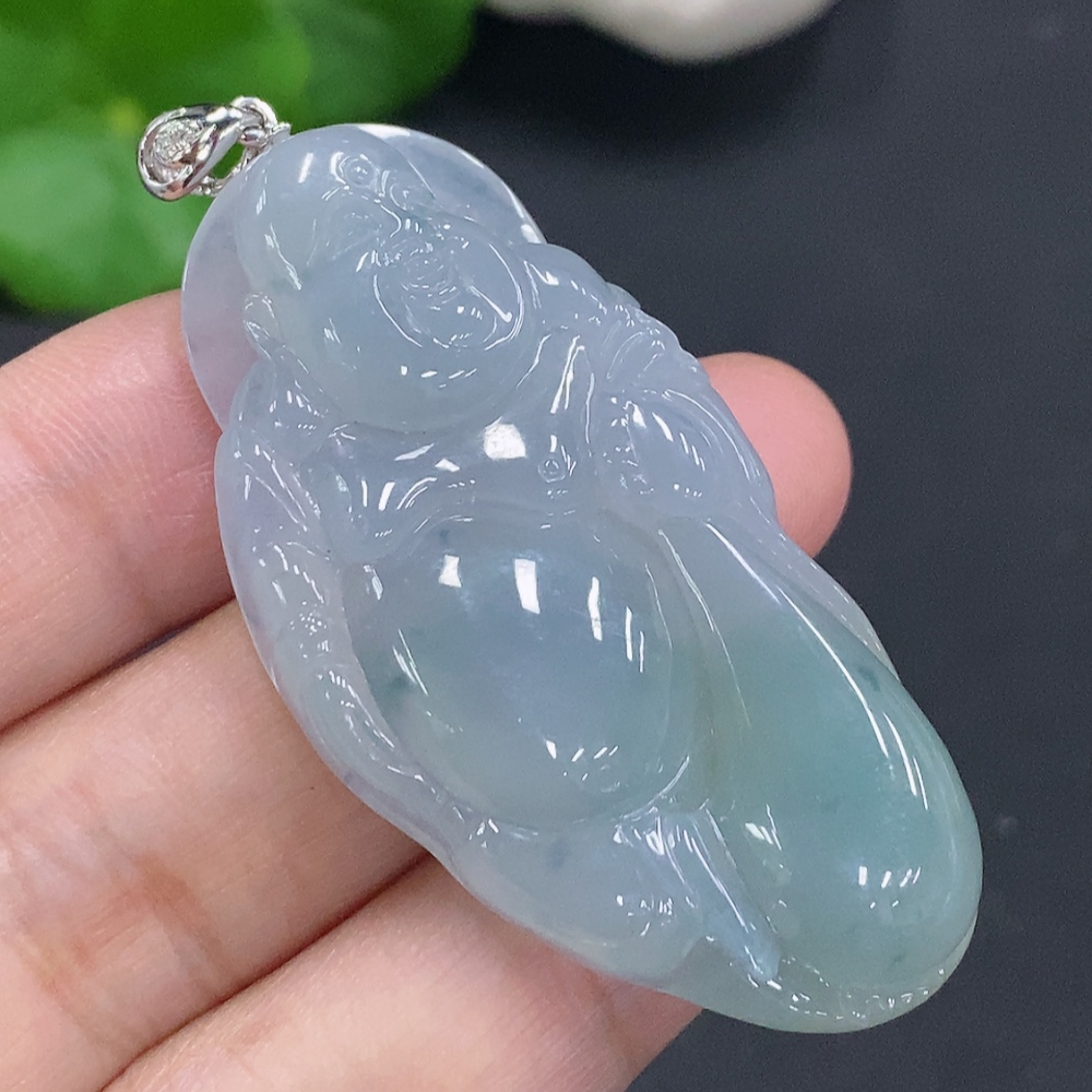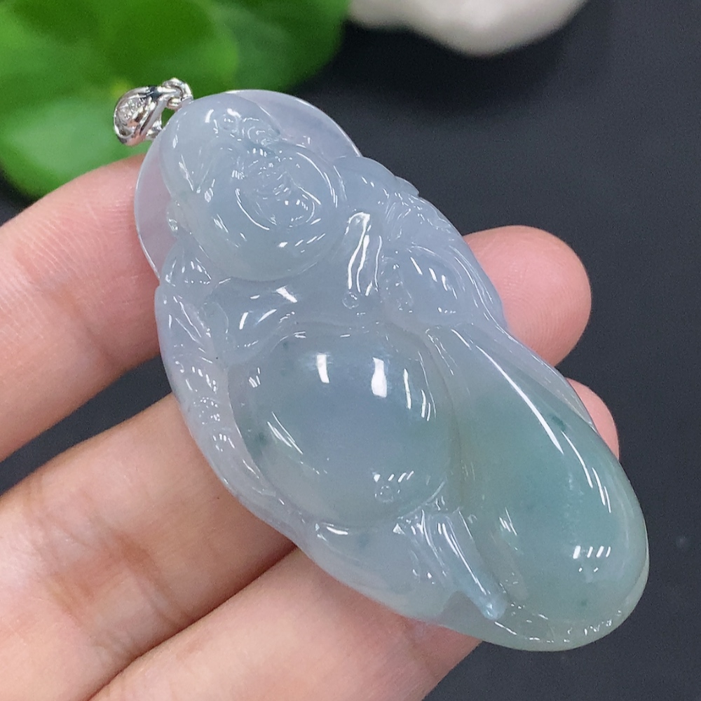 JadeiteBuddha Pendant with 18K Gold Clasp, Total Weight Approximately 19g
