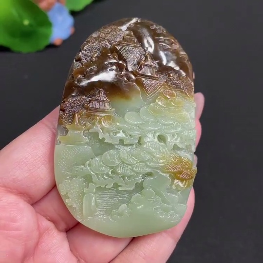 Hetian Jade Pendant Landscape Total Weight Approx. 71.9g