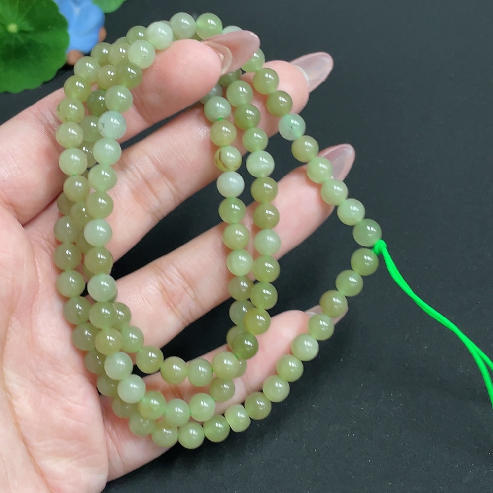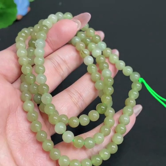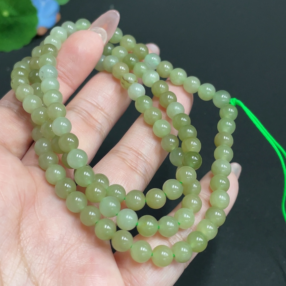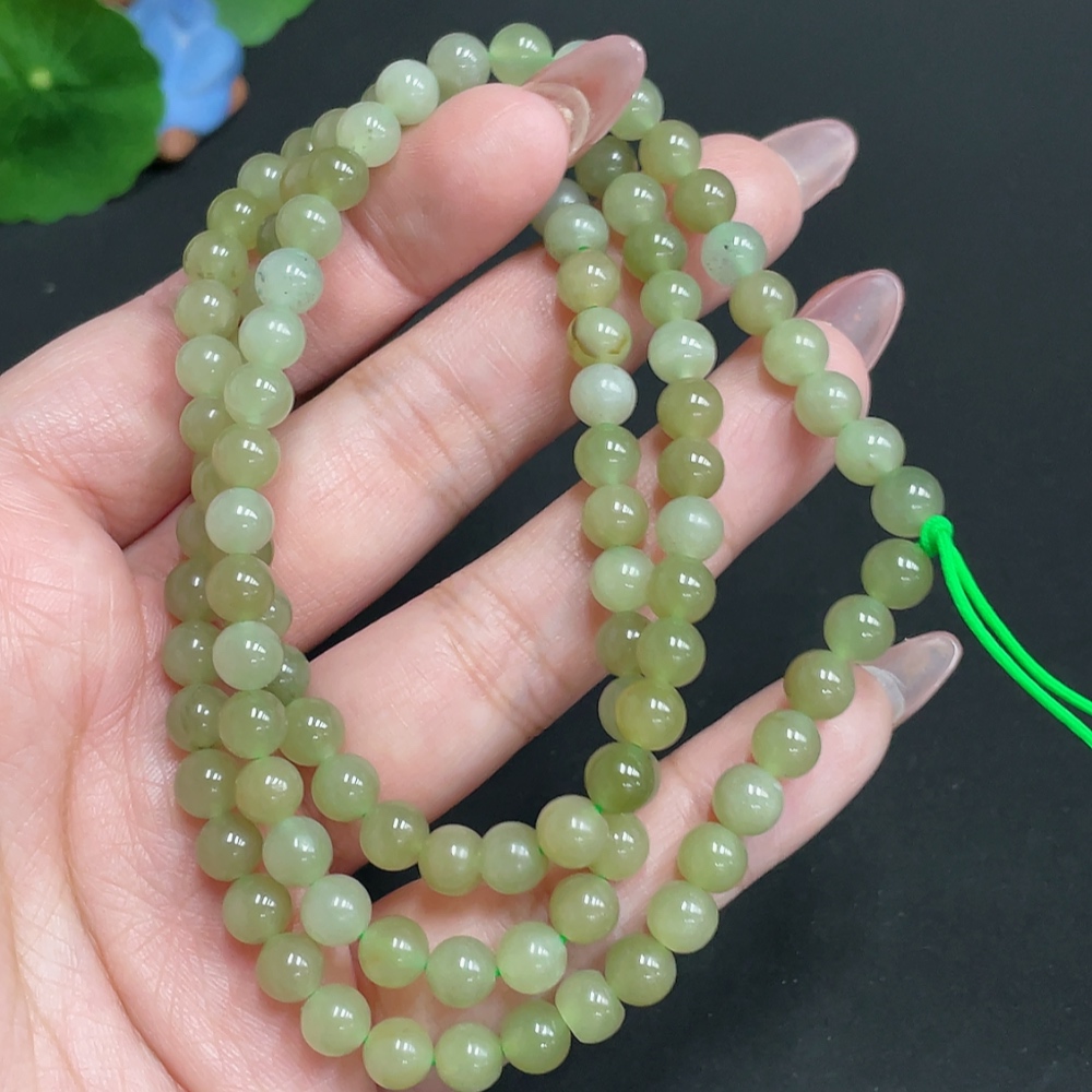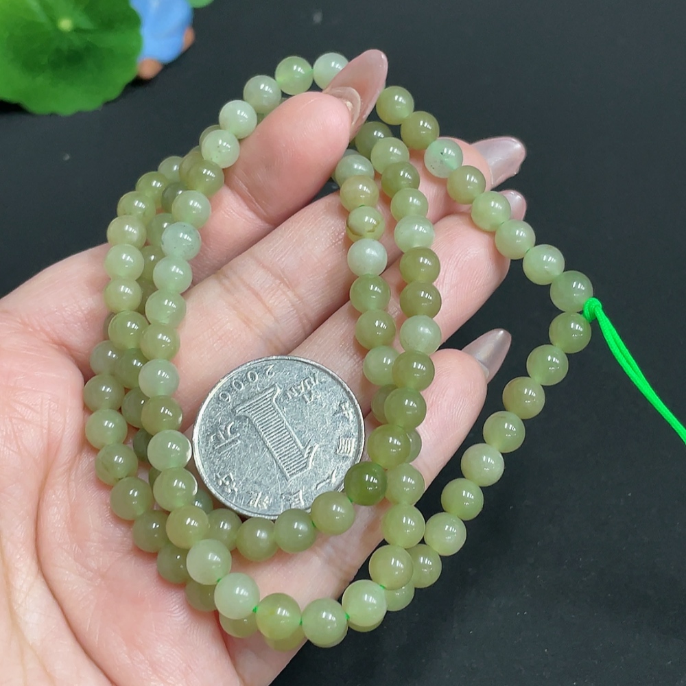Hetian Jade Bead Necklace Approx. 5.9mm Total Weight Approx. 36.9g
