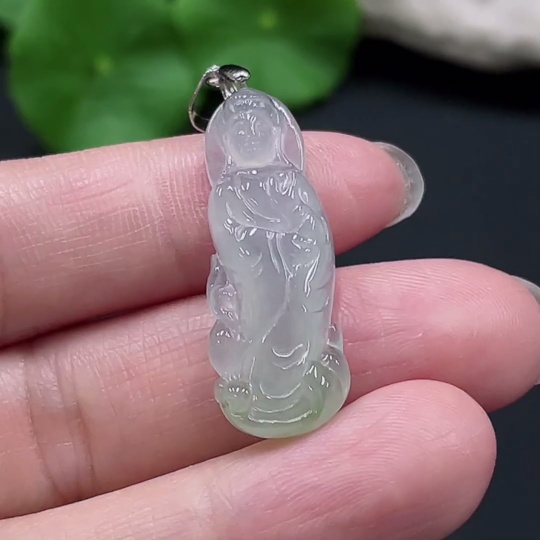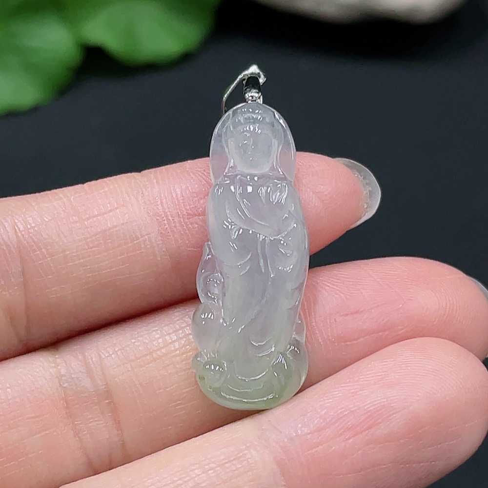 Jadeite Guanyin Pendant Non-Gold-Inlaid Total Weight Approx. 4.05g
