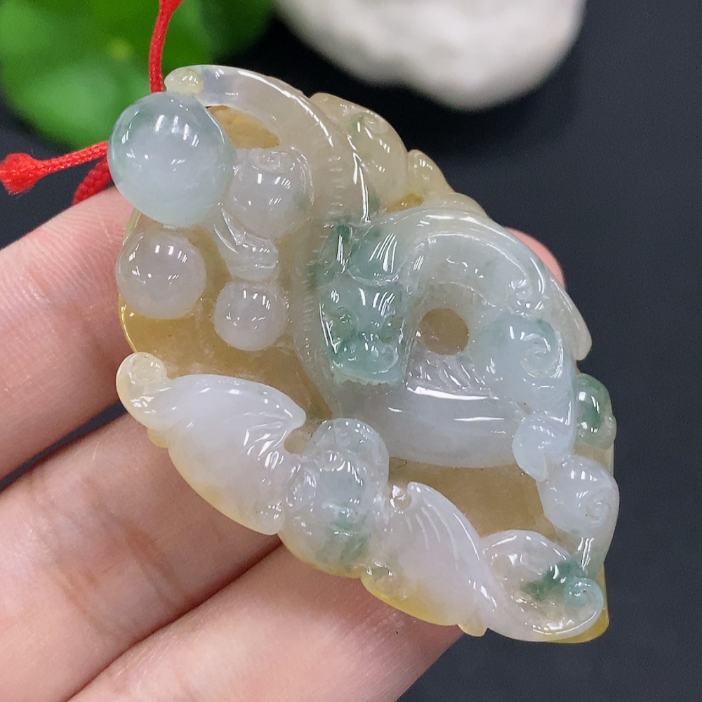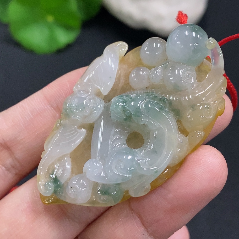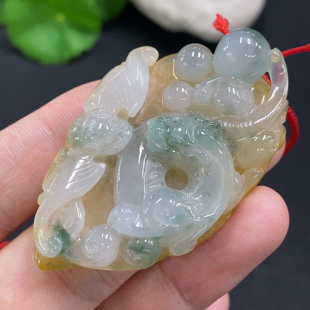 Jadeite pendant with cord, total weight approximately 25.2g (color origin undetermined)
