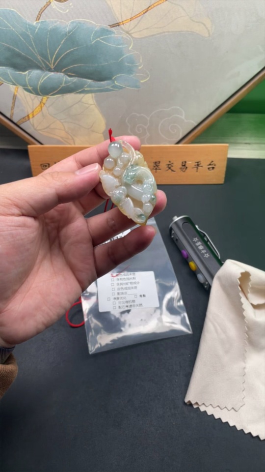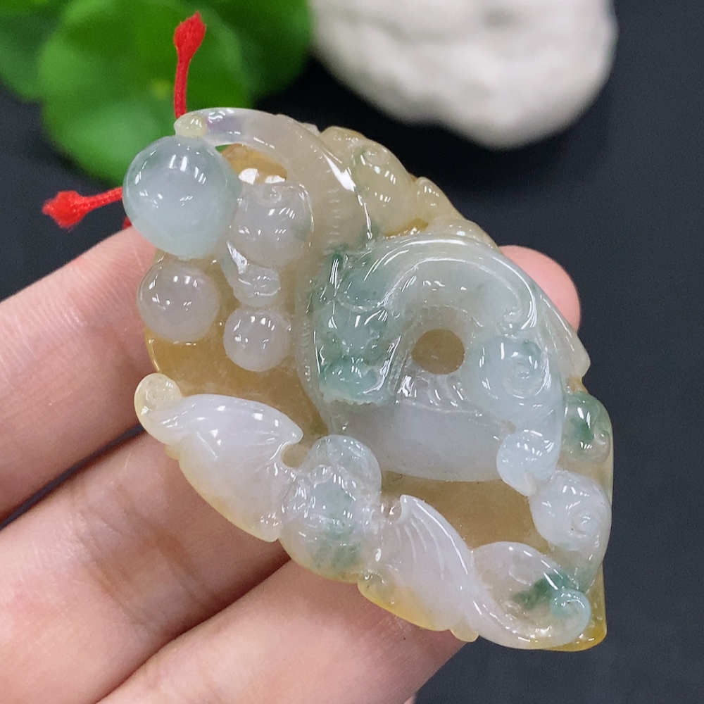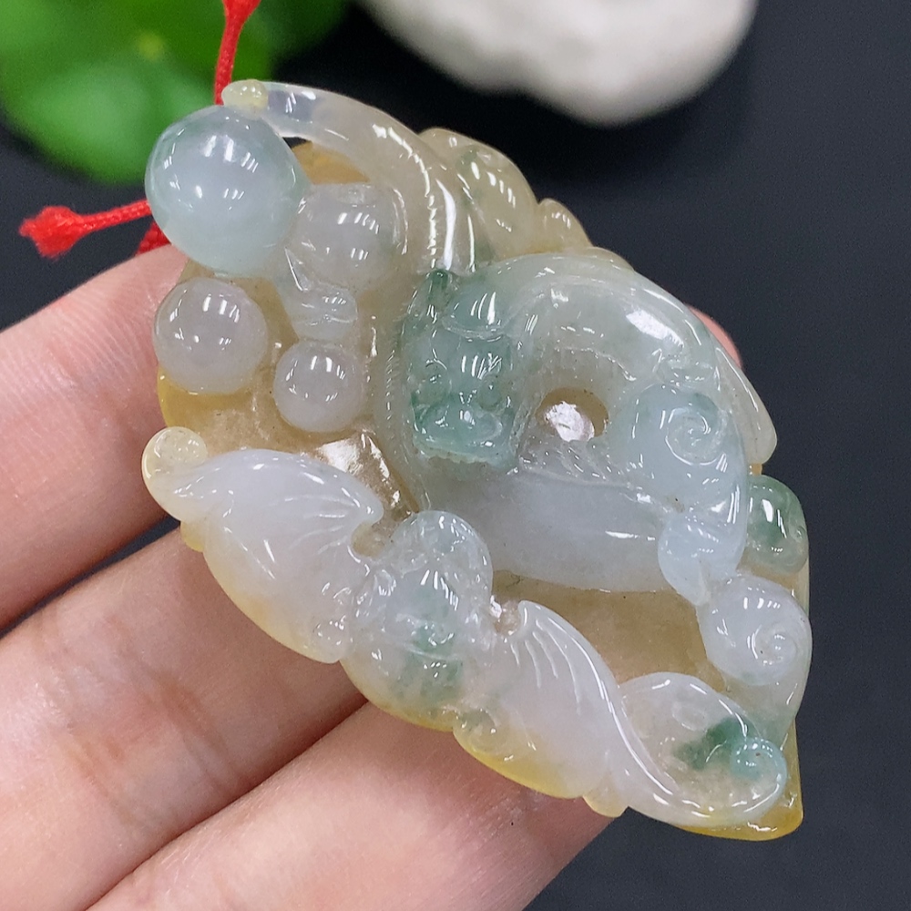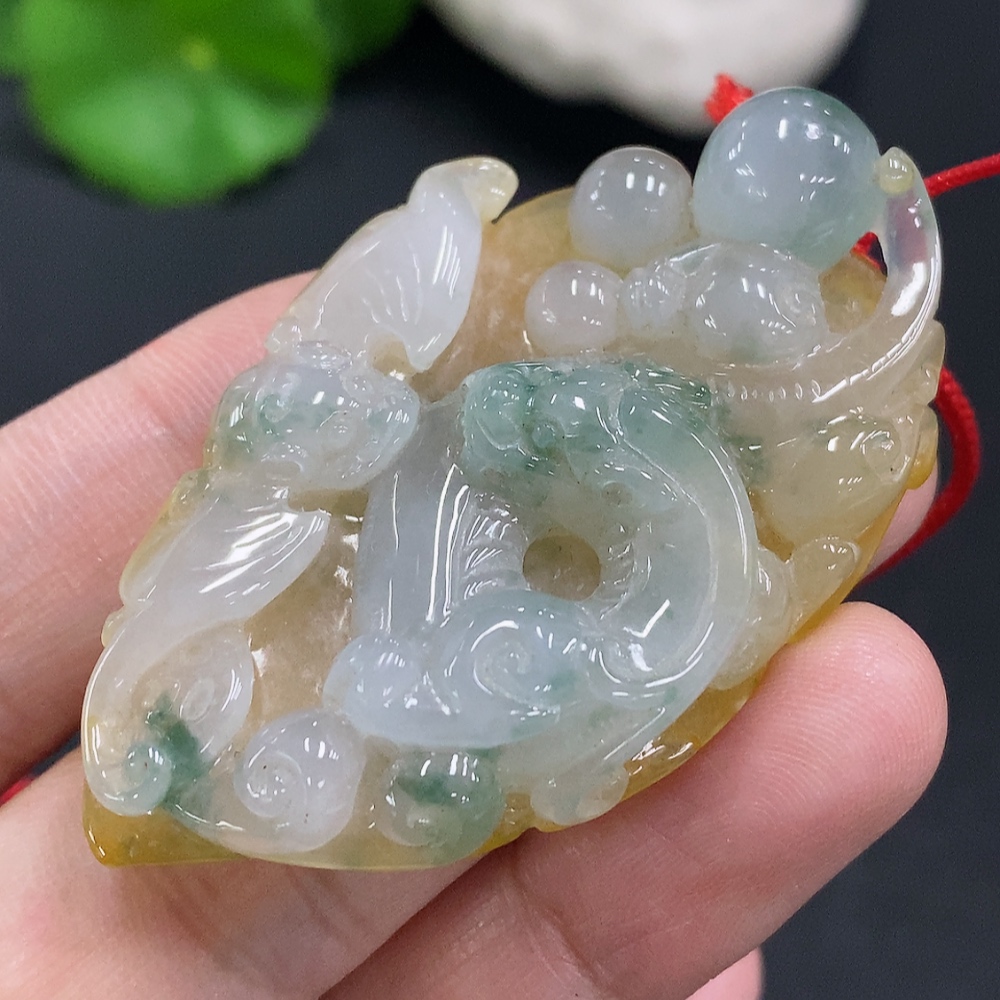 Jadeite pendant with cord, total weight approximately 25.2g (color origin undetermined)
