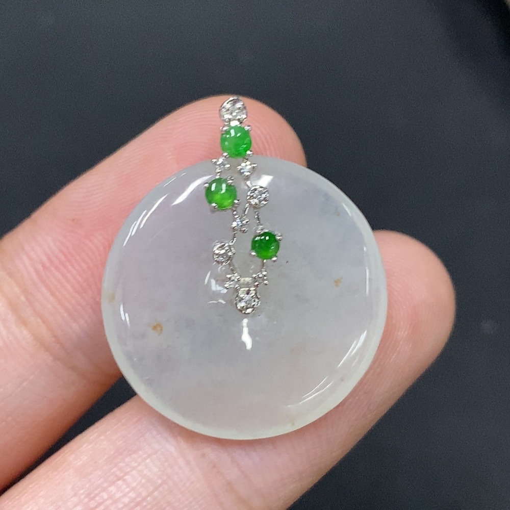 JadeitePeace Pendant with 18K Gold, Total Weight Approximately 3.74g