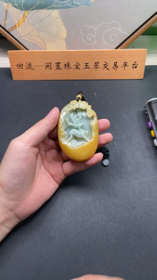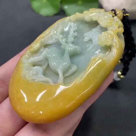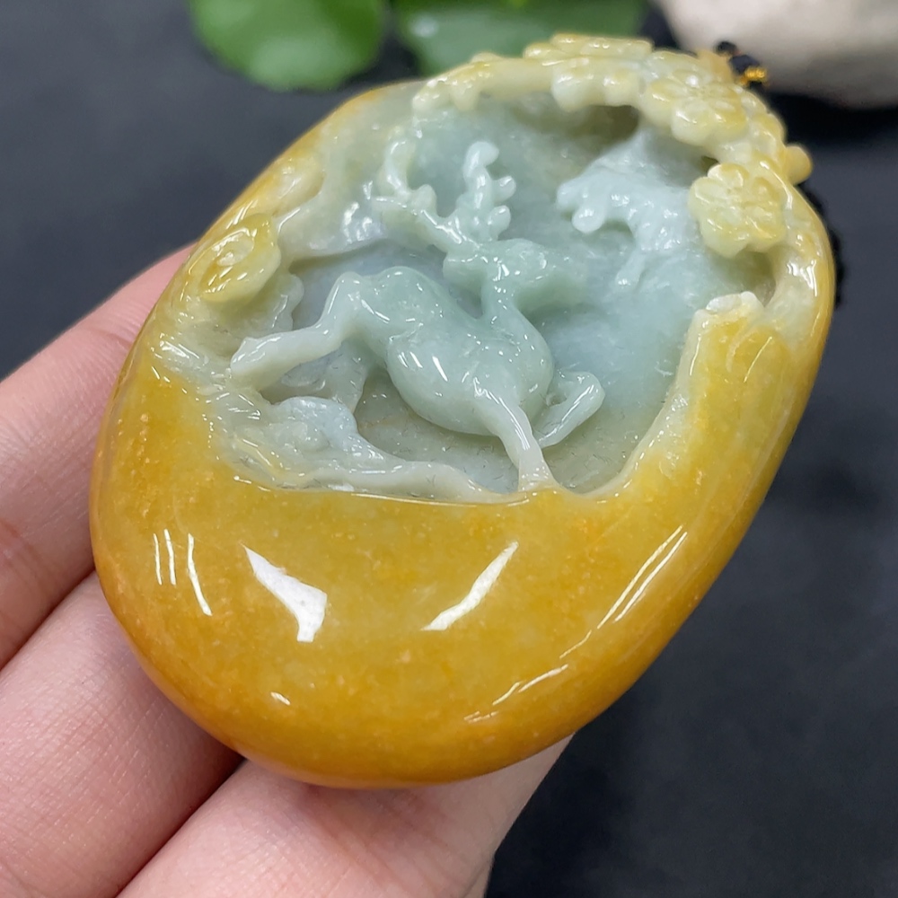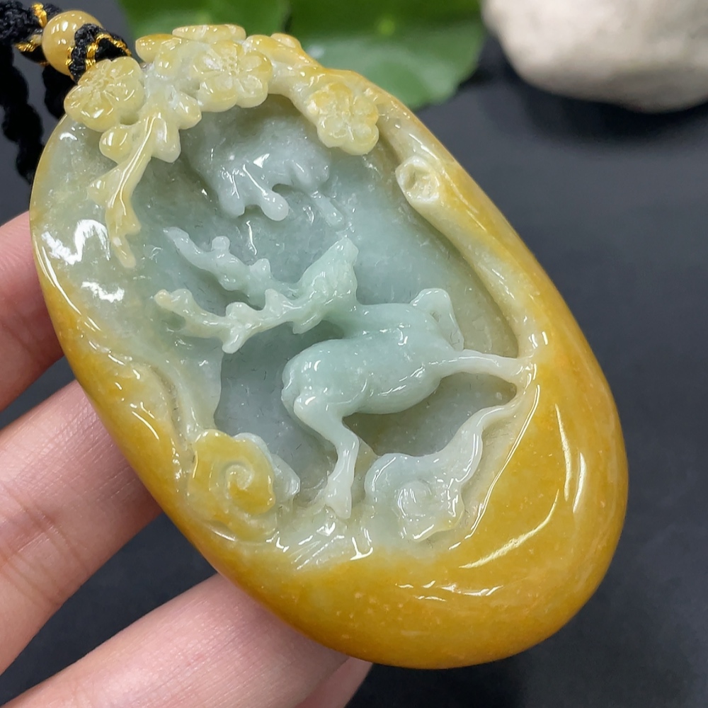JadeitePendant "Deer Accompany You" Color Origin Undetermined With Non-Grade A Beads Total Weight 108.116g