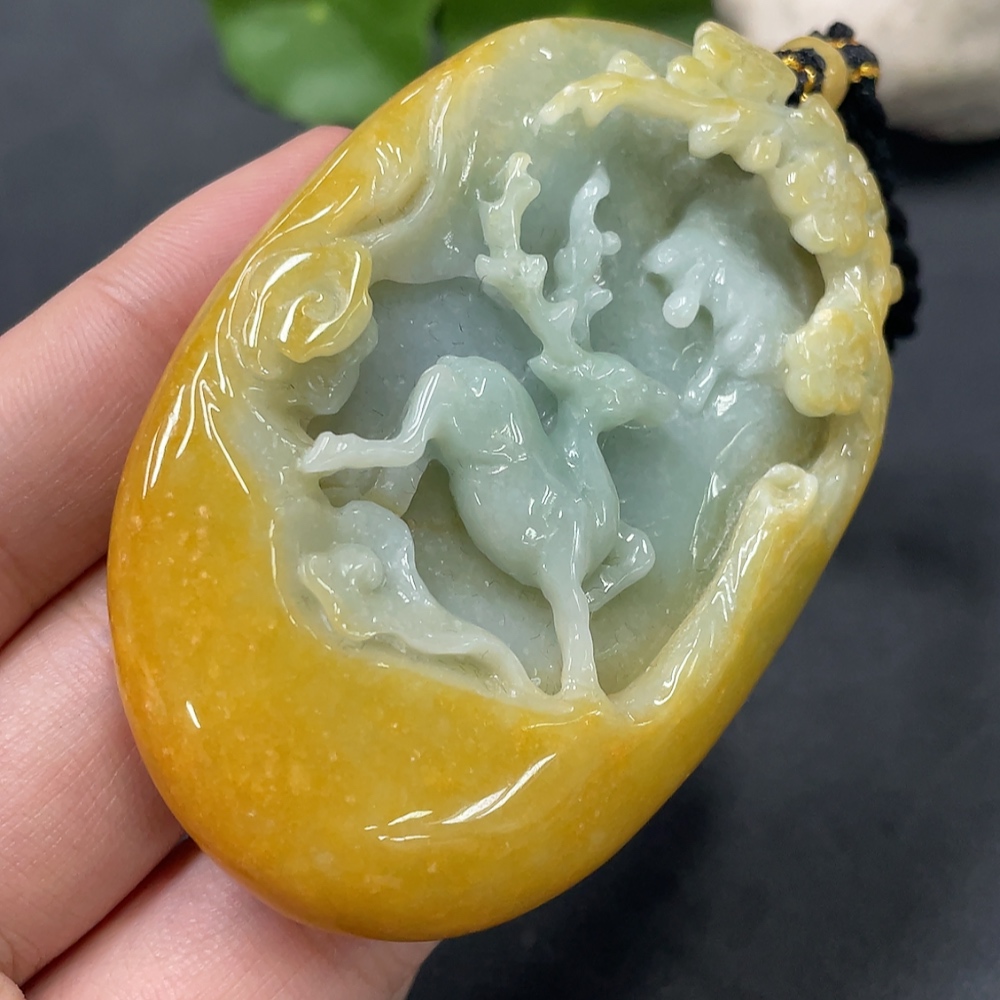 Trezaar - JadeitePendant "Deer Accompany You" Color Origin Undetermined With Non-Grade A Beads Total Weight 108.116g