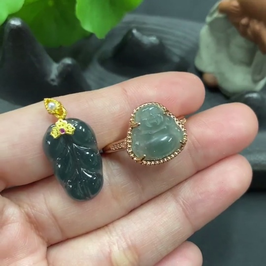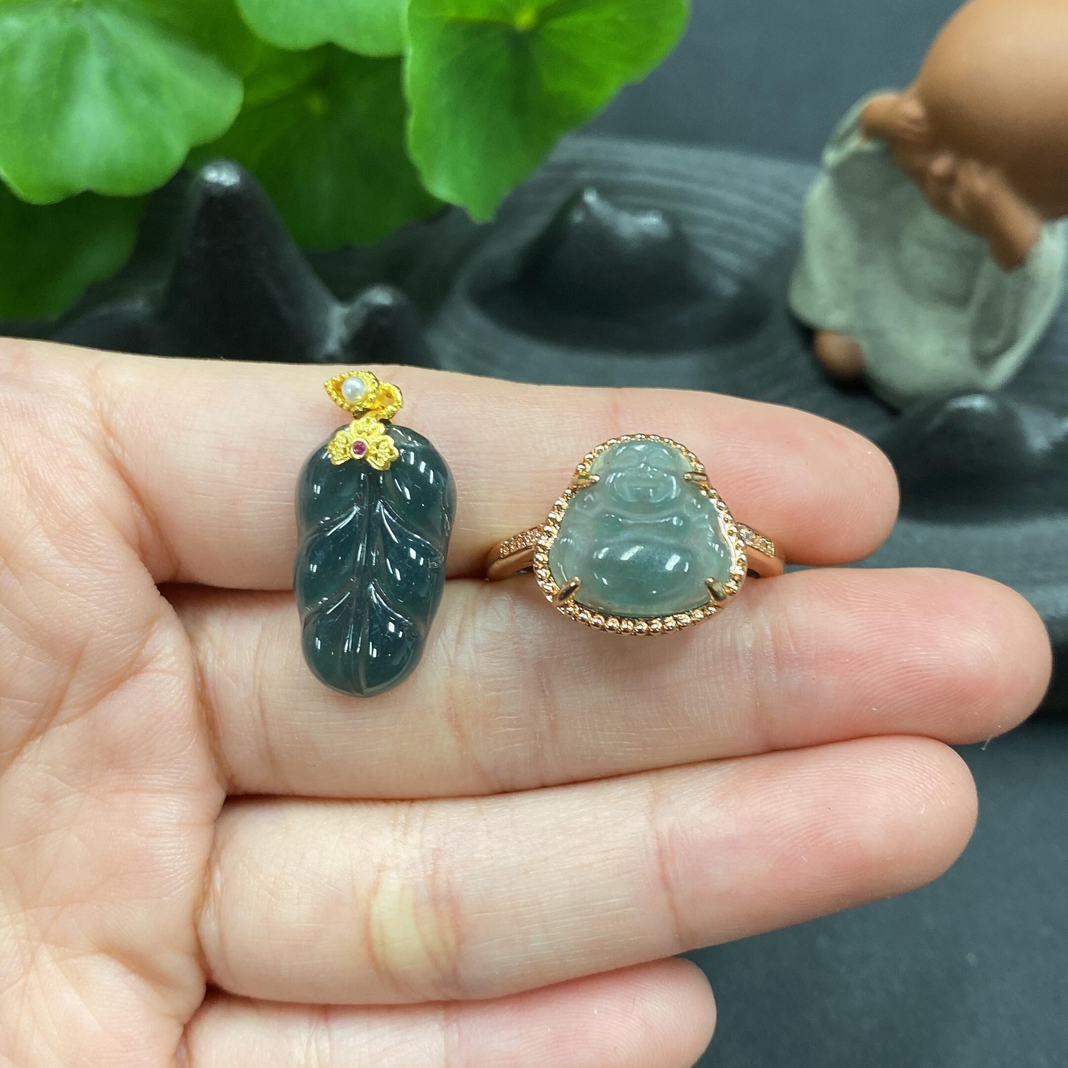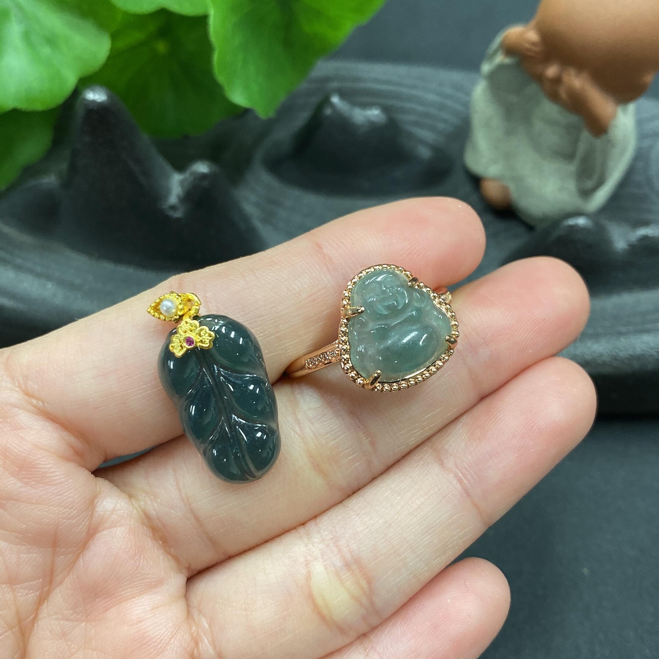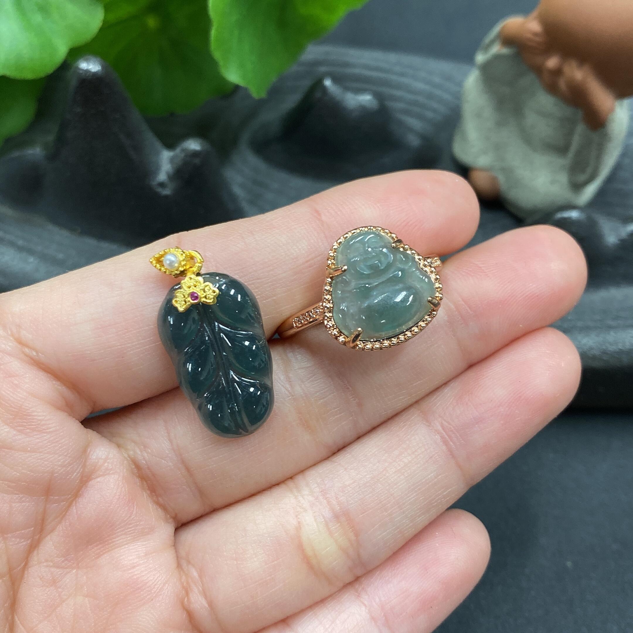 Jadeite Pendant + Ring (Individual Pieces with Veins/Cracks, Adjustable Size, Non-Gold Setting)