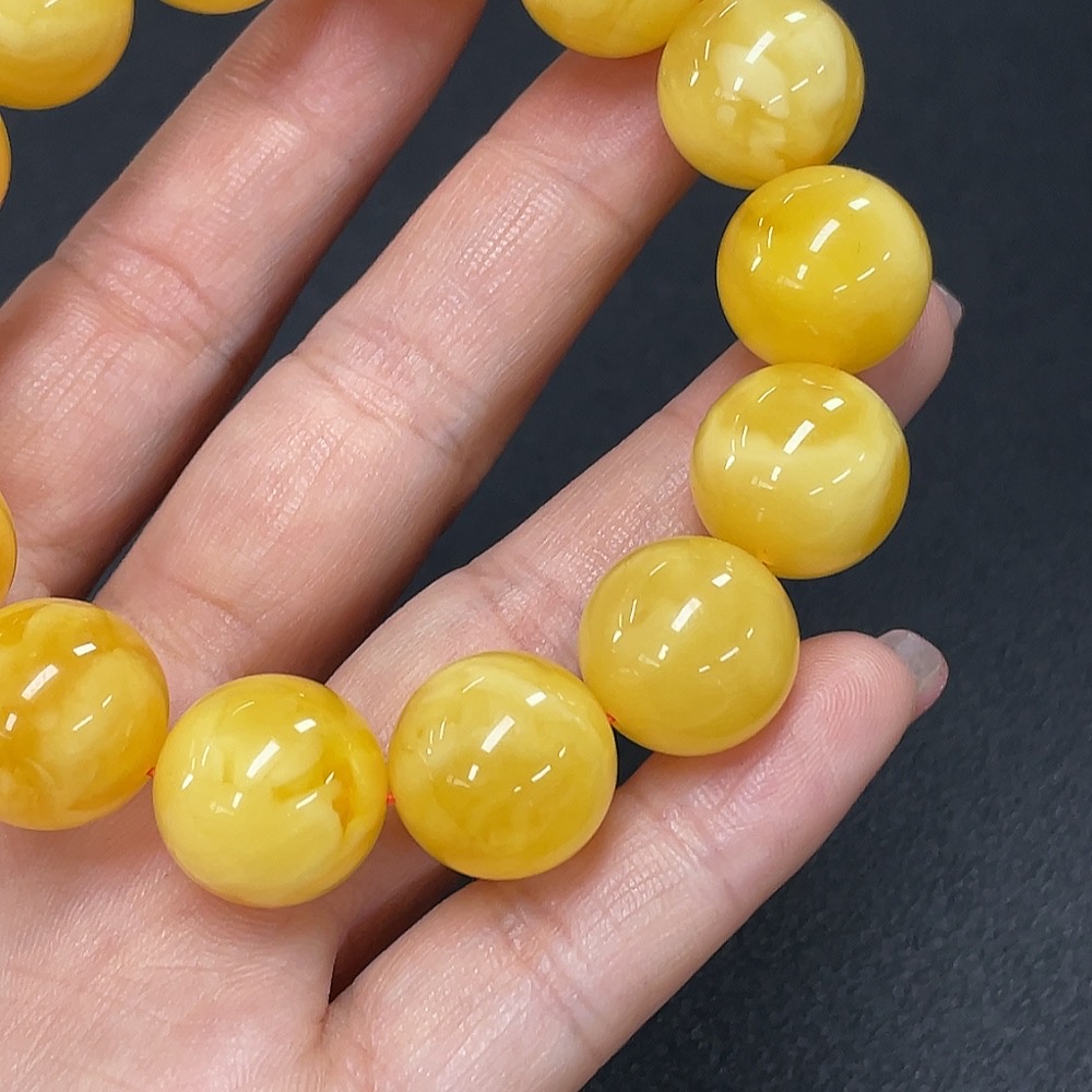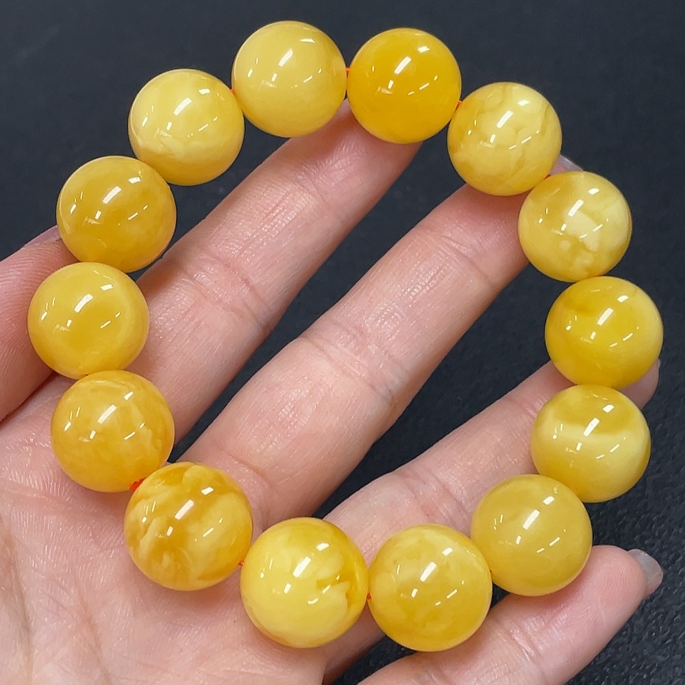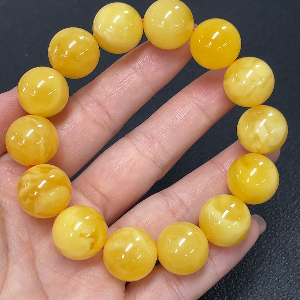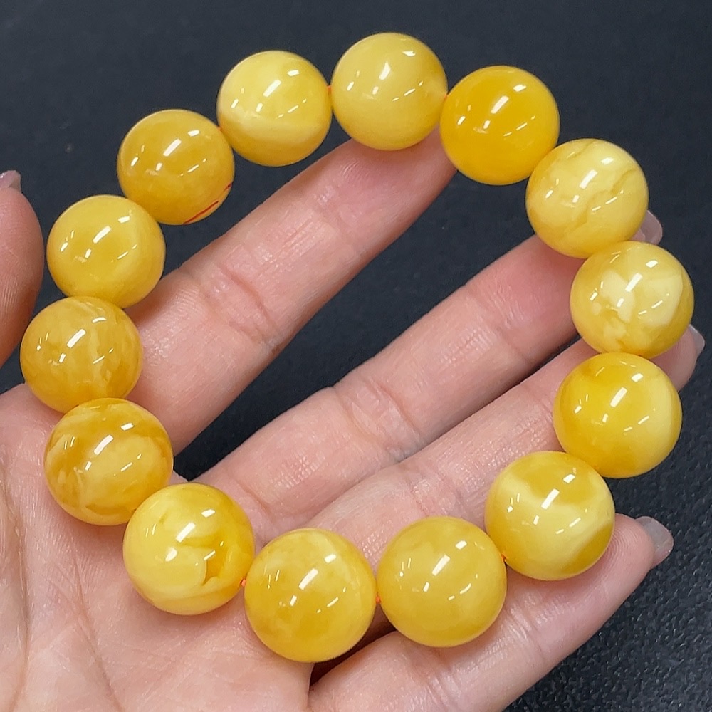 Amber Beeswax Bracelet with Repairs at Marked Area, Total Weight Approx. 27.63g, Size Approx. 14.8mm