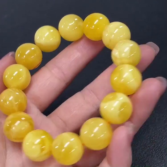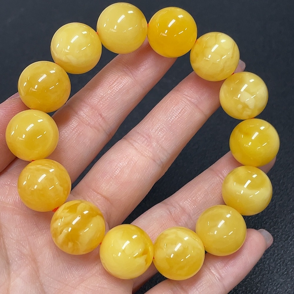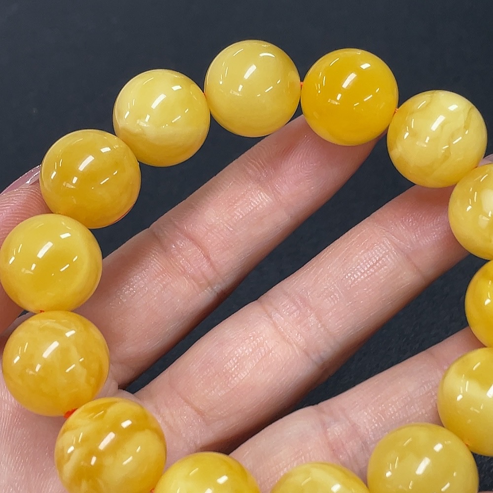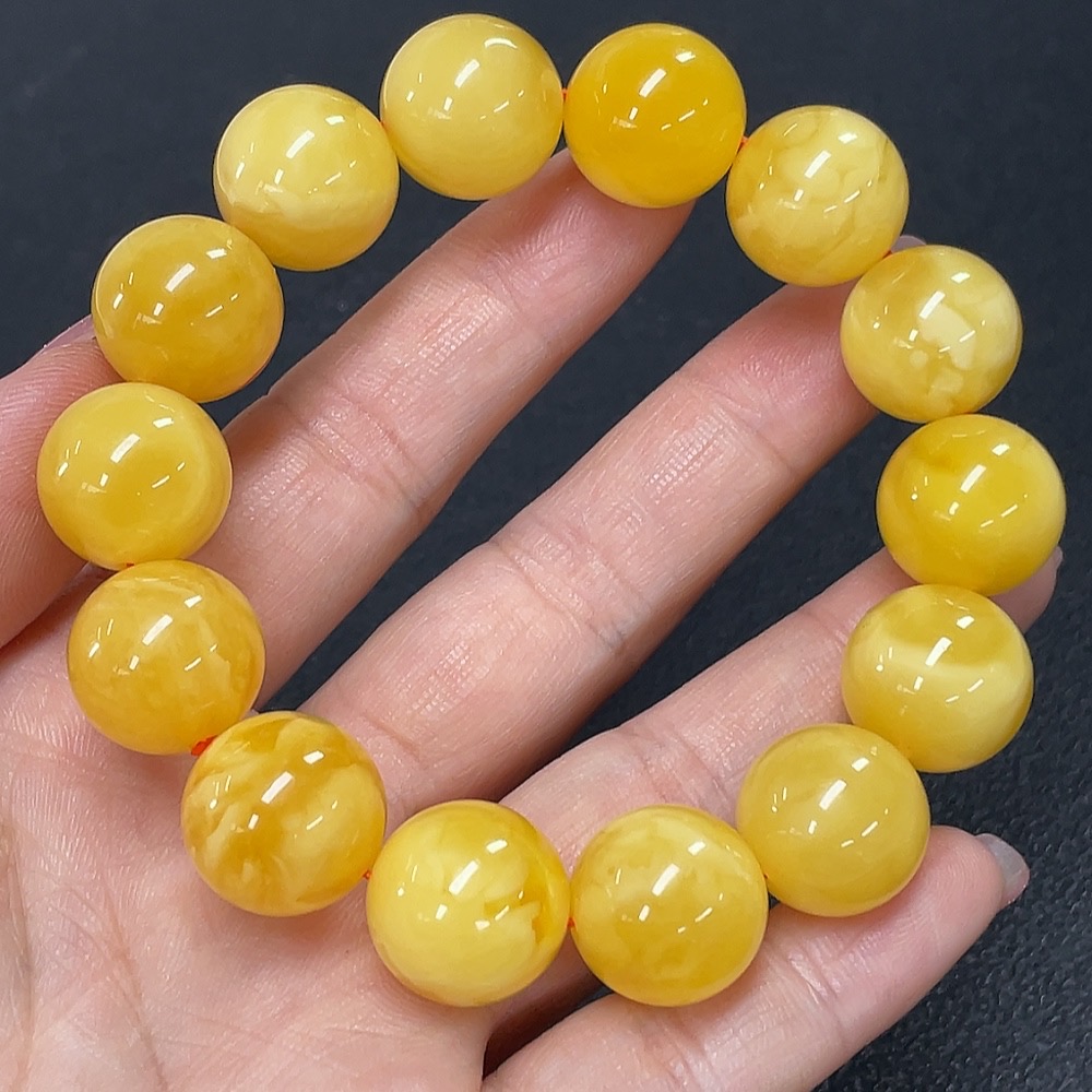 Amber Beeswax Bracelet with Repairs at Marked Area, Total Weight Approx. 27.63g, Size Approx. 14.8mm