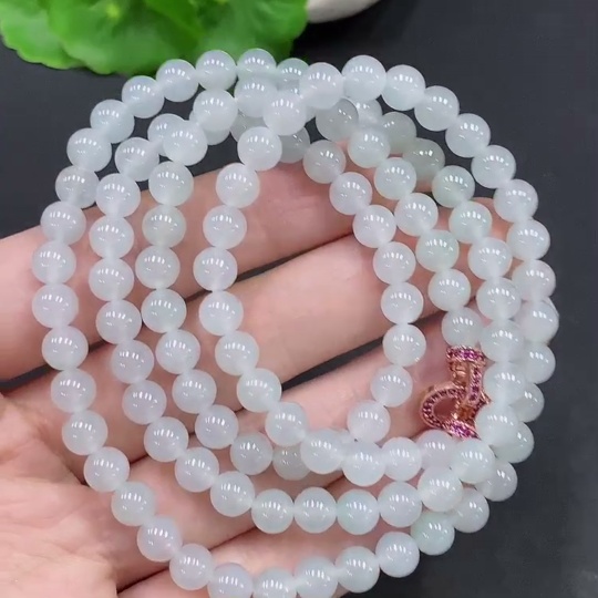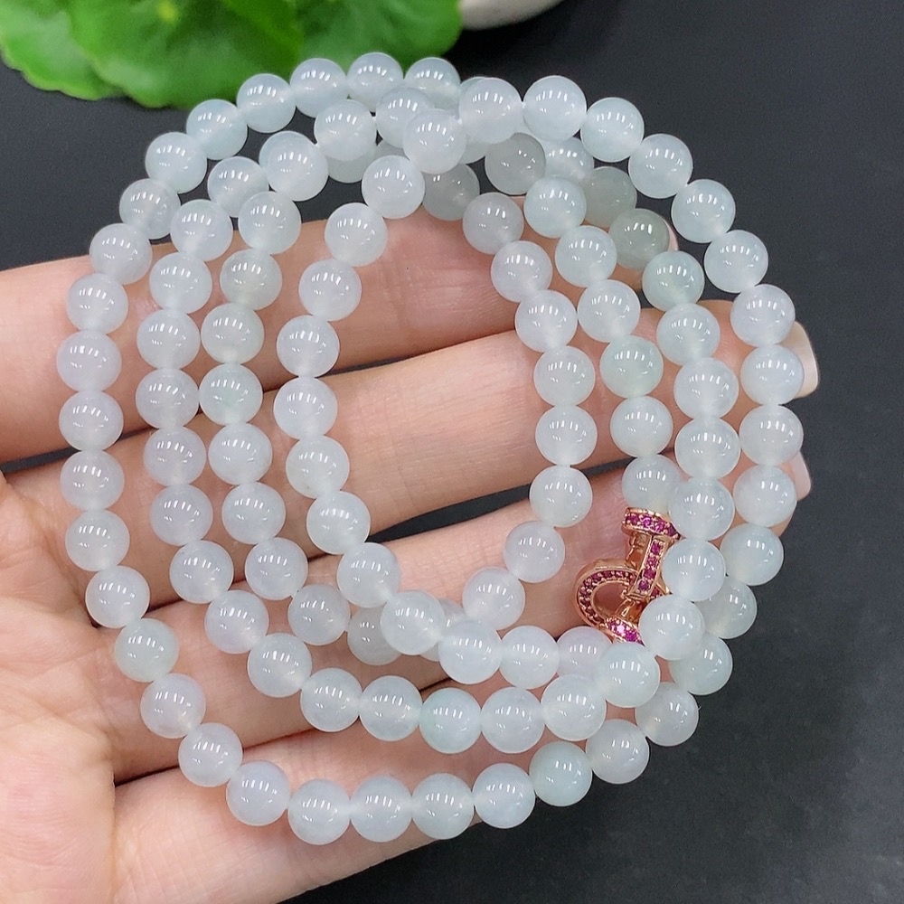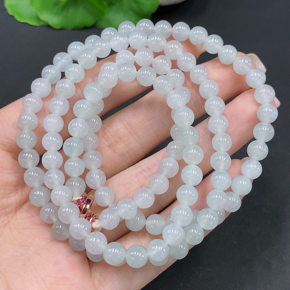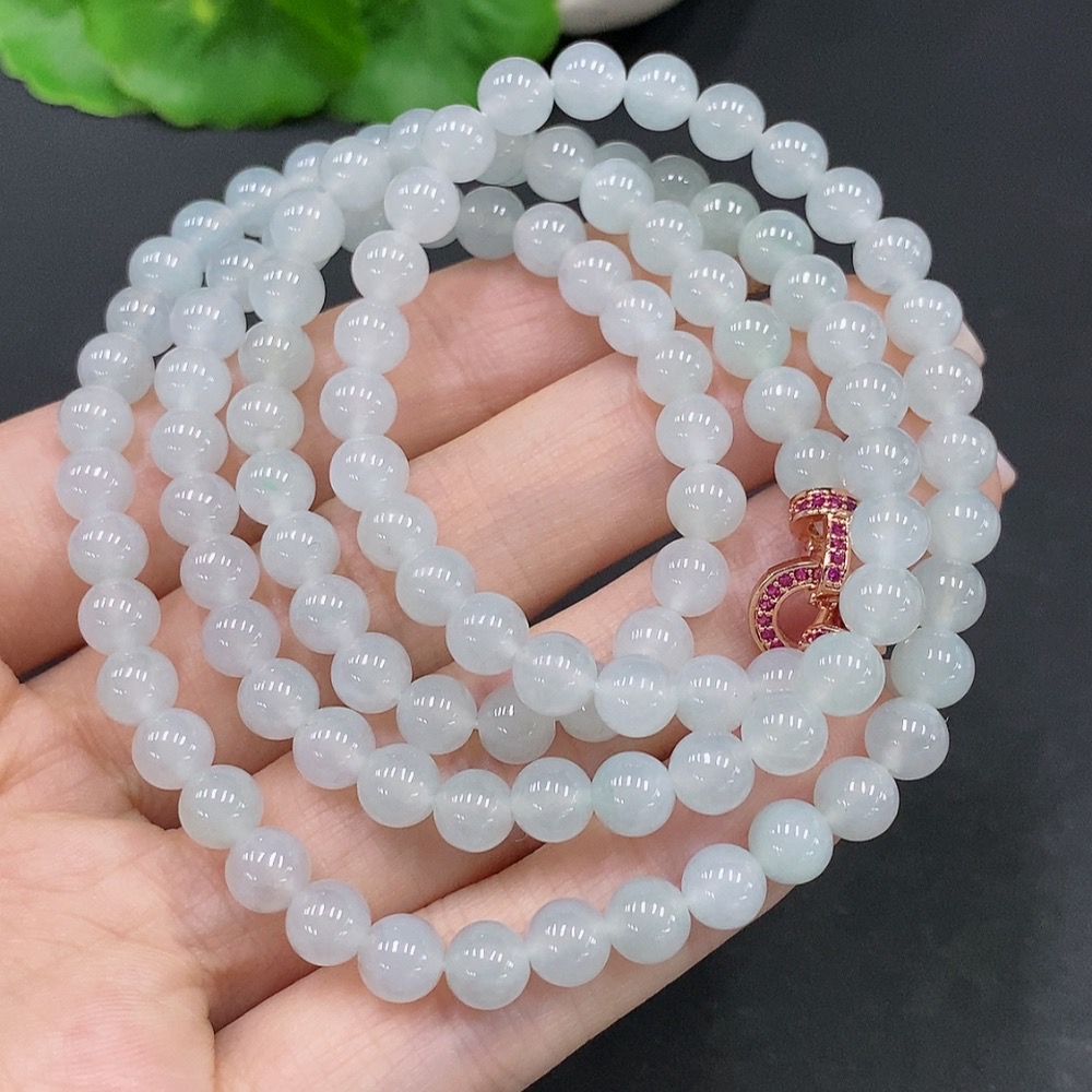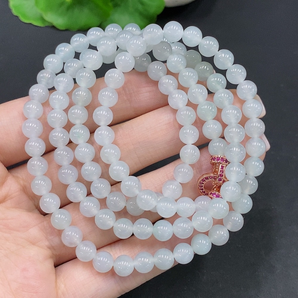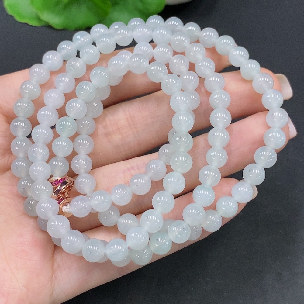 Jadeite Bead Necklace Total Weight Approx. 42.1g Size About 5.7mm Non-Gold Setting