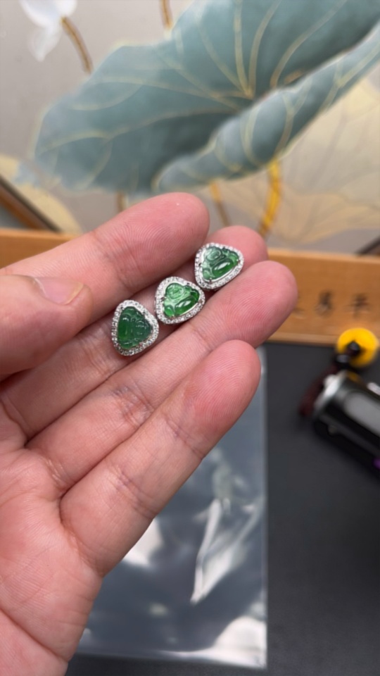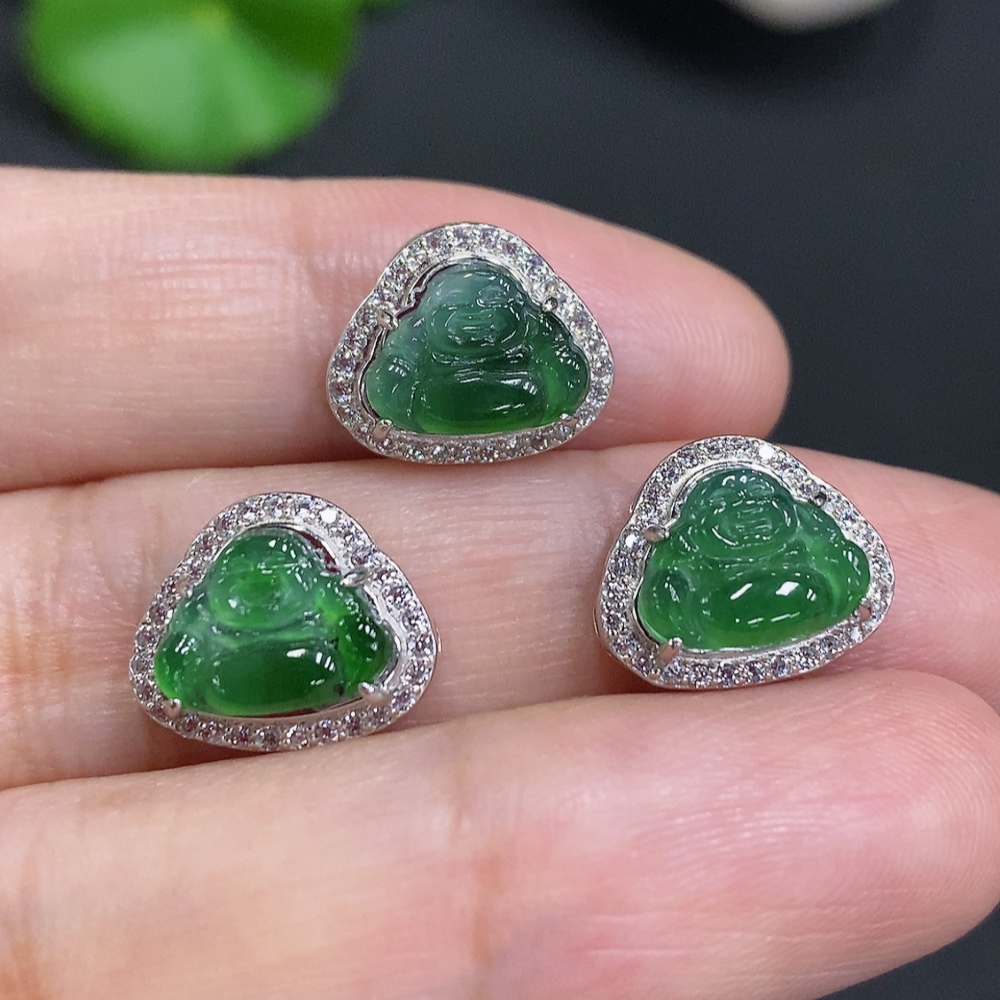 Jadeite Buddha Inlaid Pendant Sell as a Lot Non-Gold Inlaid