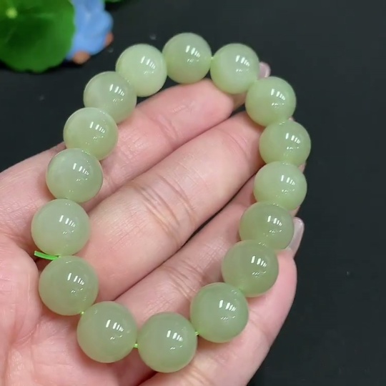 Hetian Jade Bracelet, Approx. 11.7mm Beads, Total Weight About 42.7g