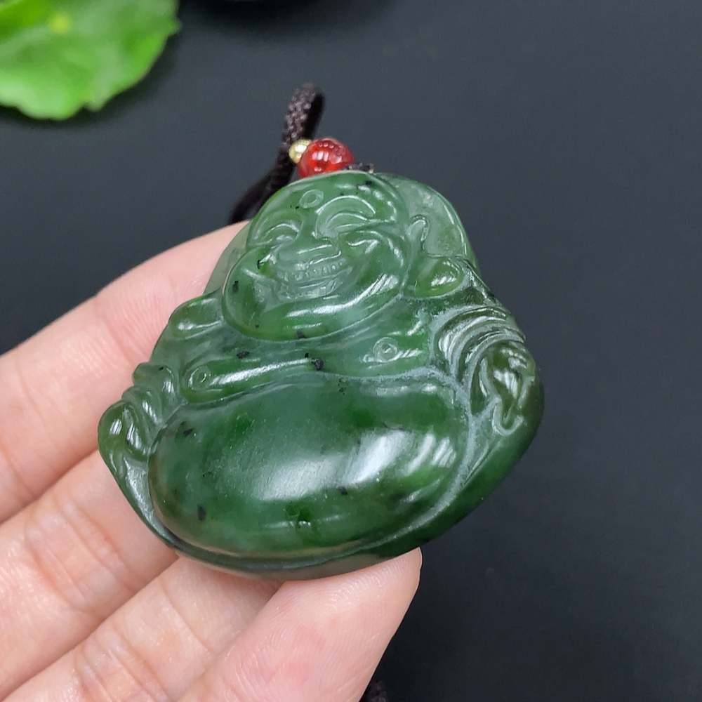 Hetian Jade Pendant - Buddha, Total Weight (including rope): 27.5g