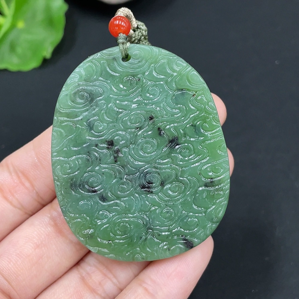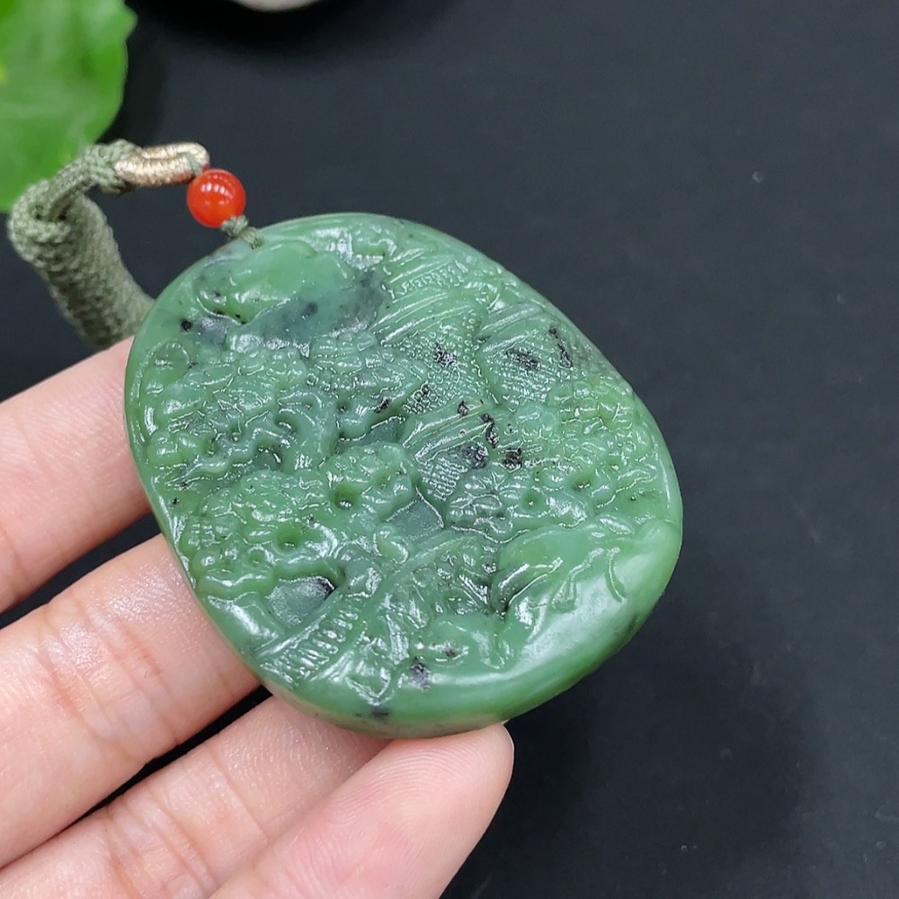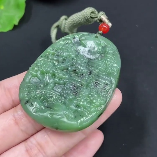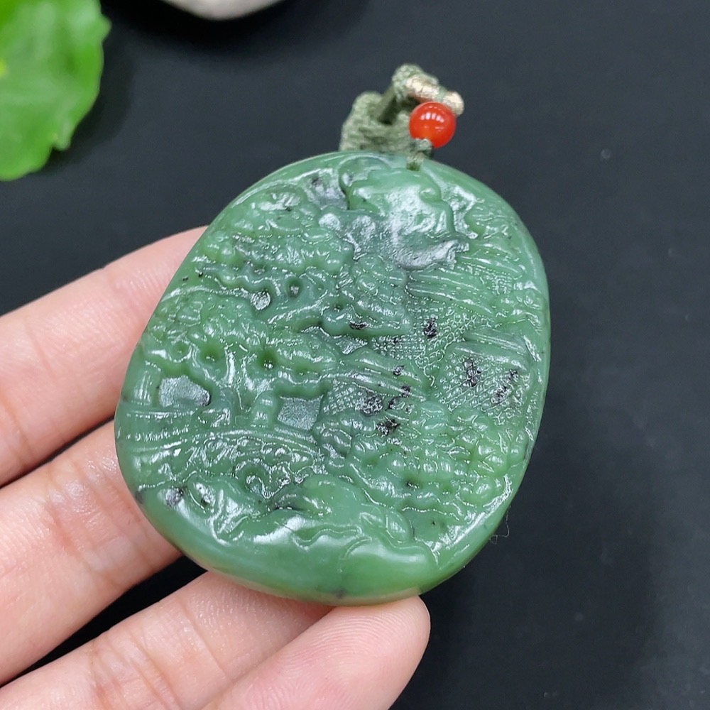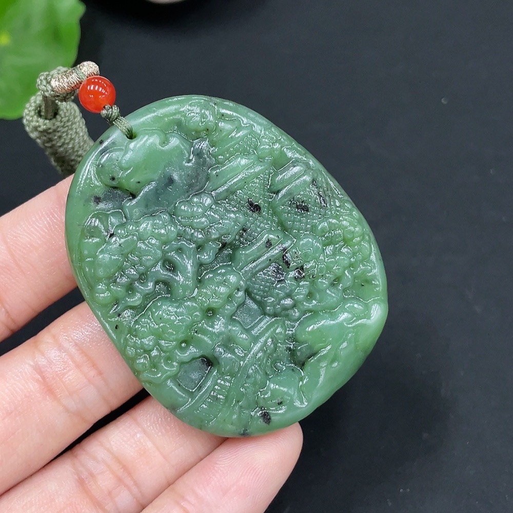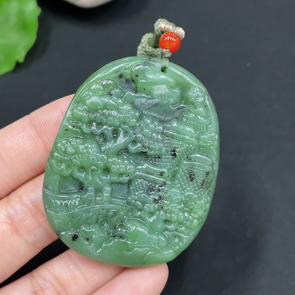 Hetian Jade Pendant, Landscape, Total Weight Approx. [with Rope] 32g