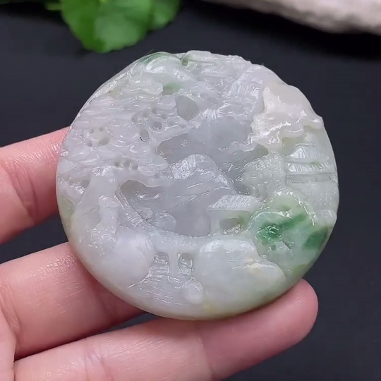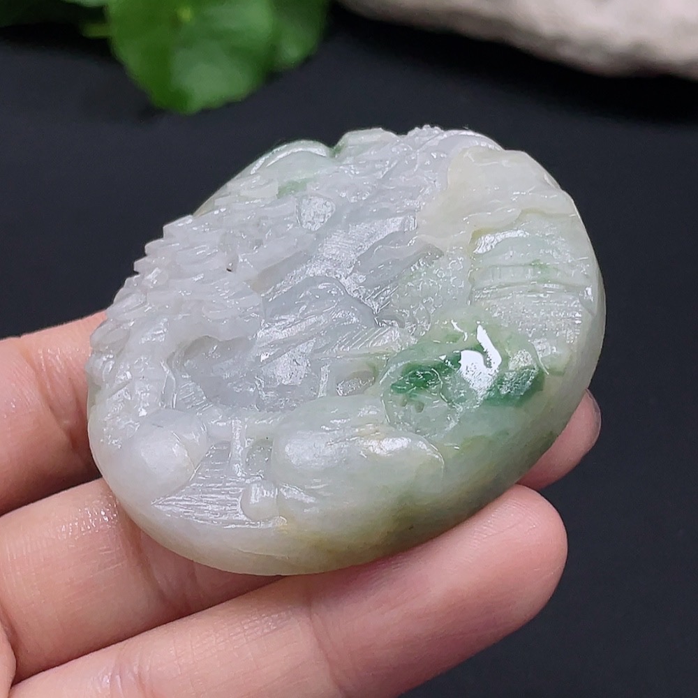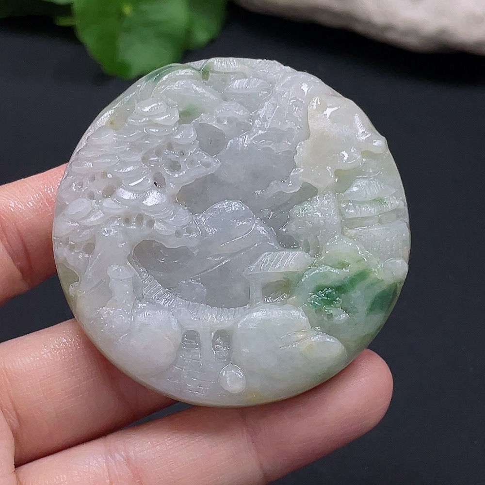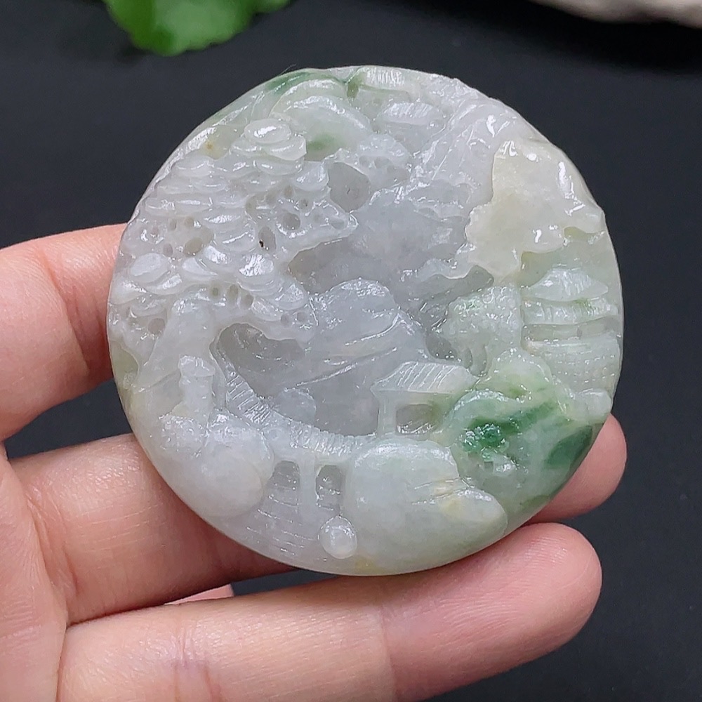 Jadeite Landscape Pendant Total Weight Approx. 68.94g Unpolished