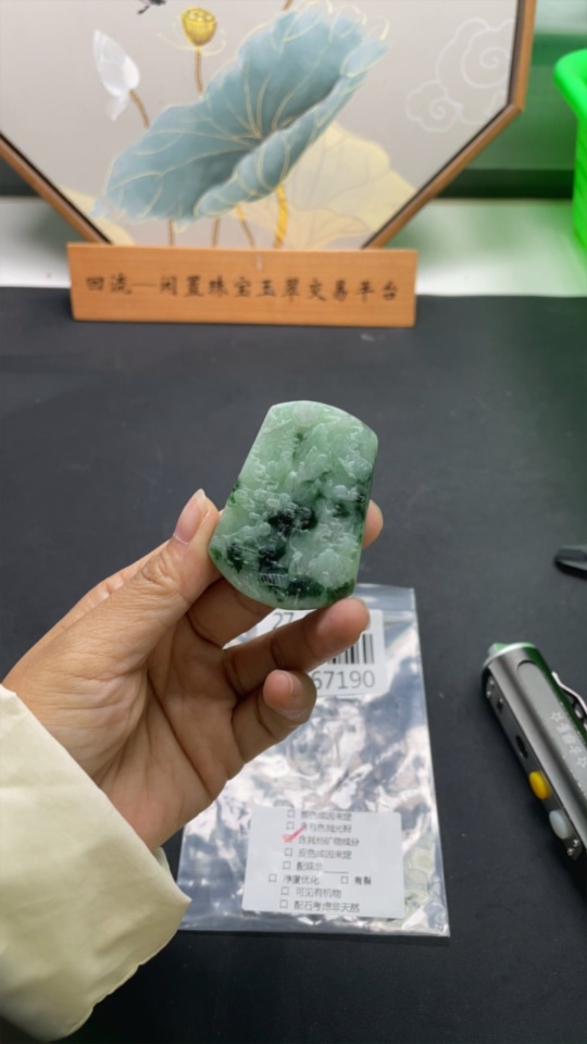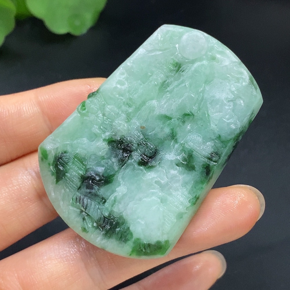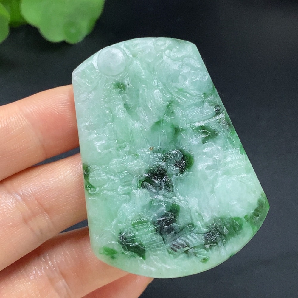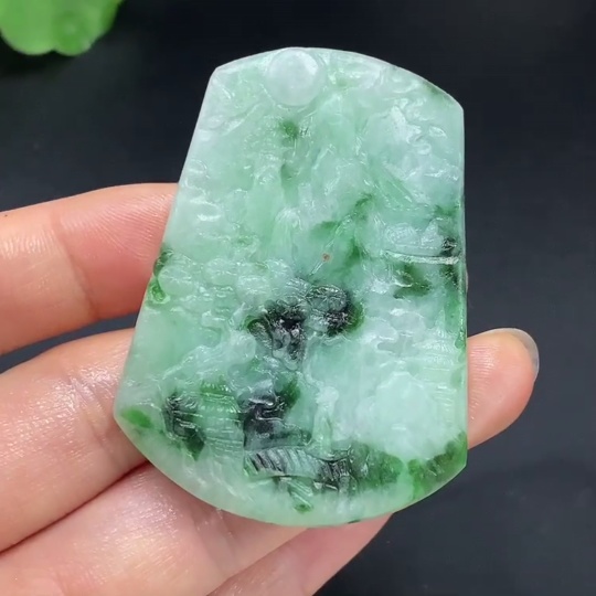 Jadeite Rough Landscape Pendant Total Weight Approx. 34.8g Including Other Mineral Components
