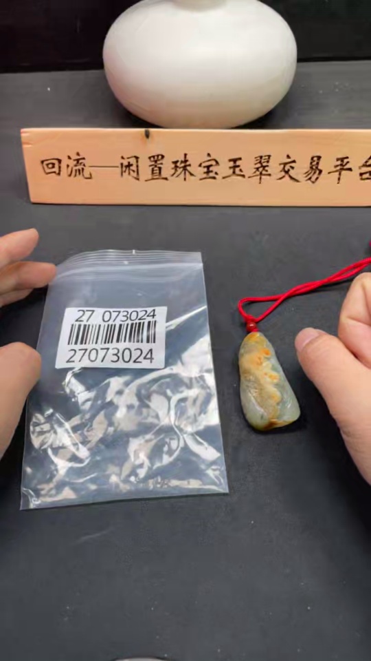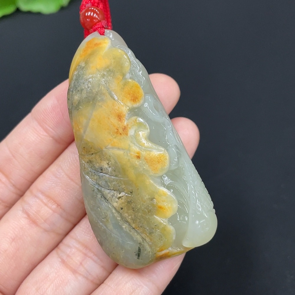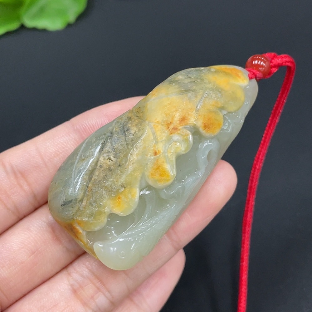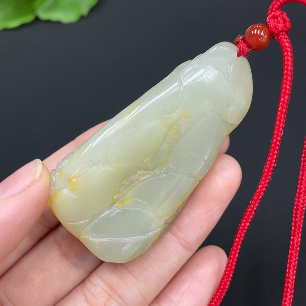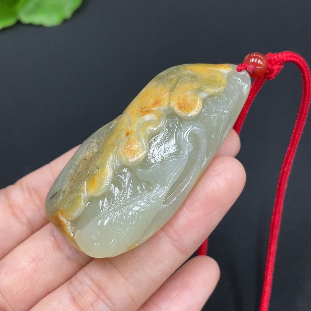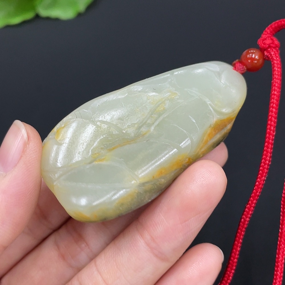 Hetian Jade Pendant - Abundance Every Year, Undetermined Skin Color Origin, Total Weight (Including Rope) Approx. 44.4g