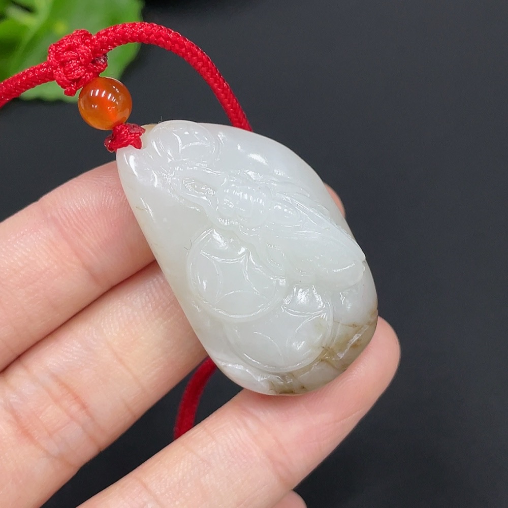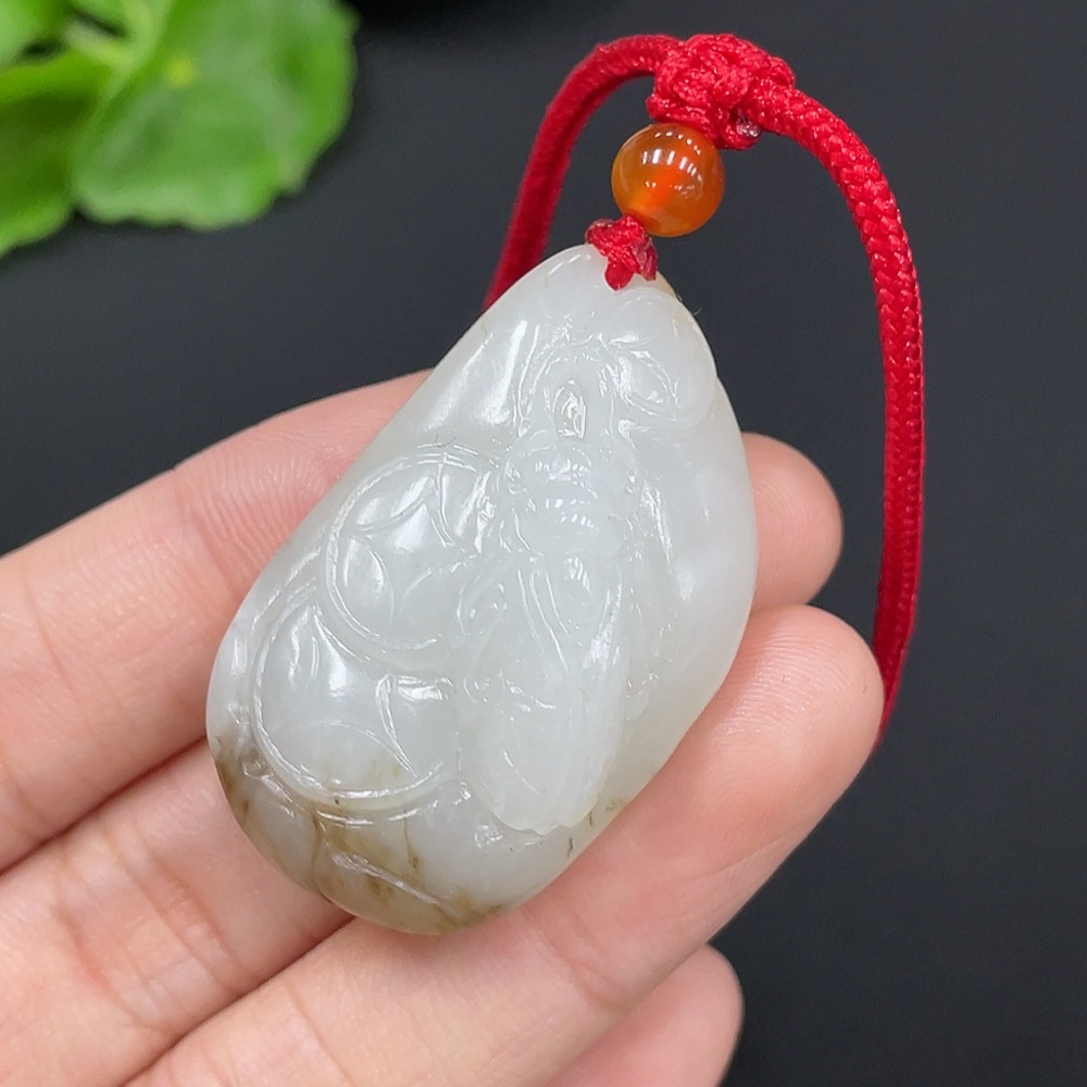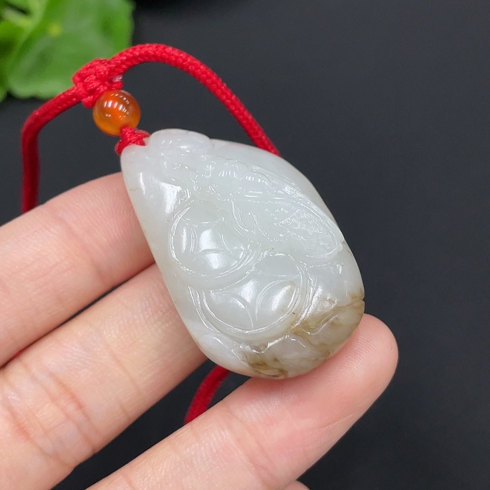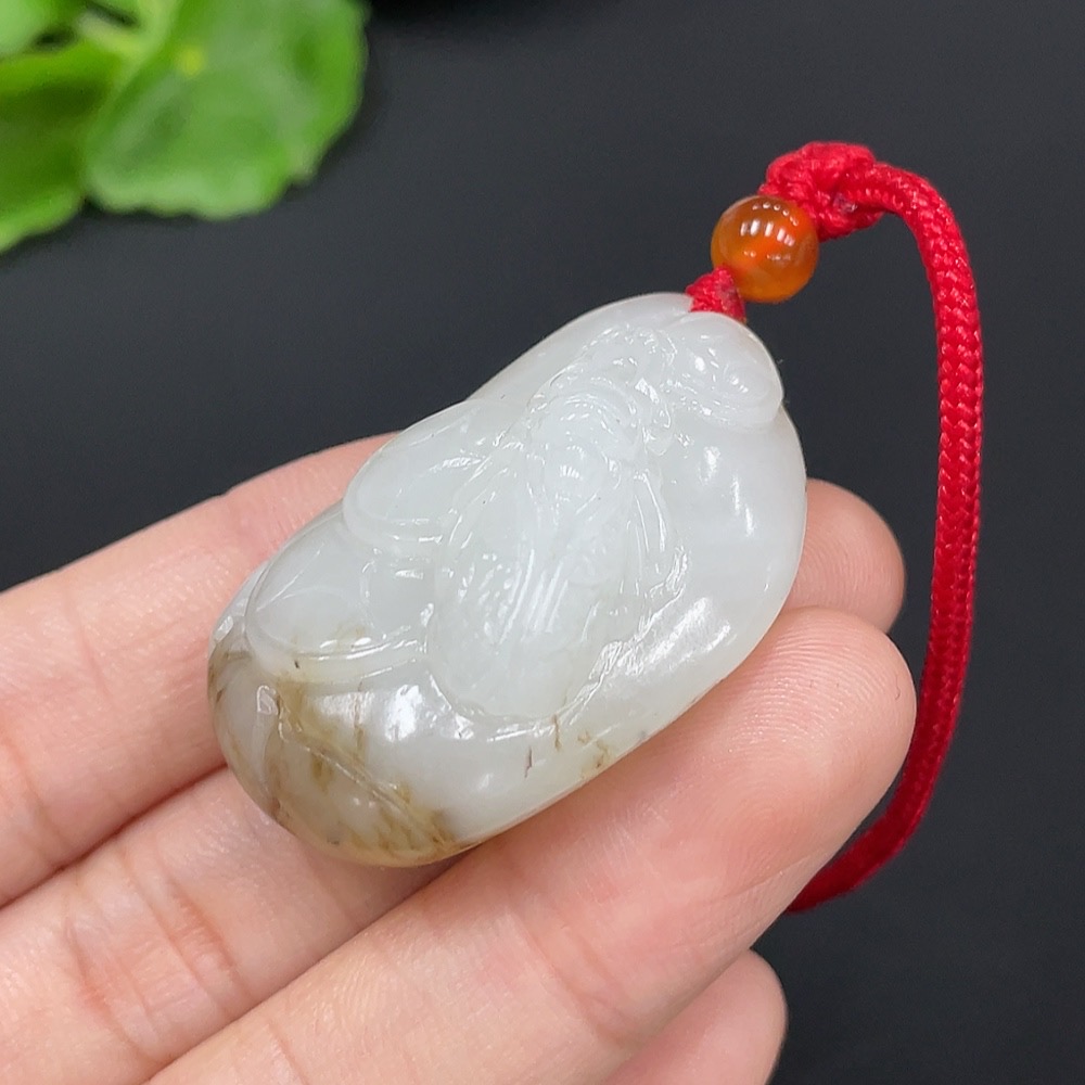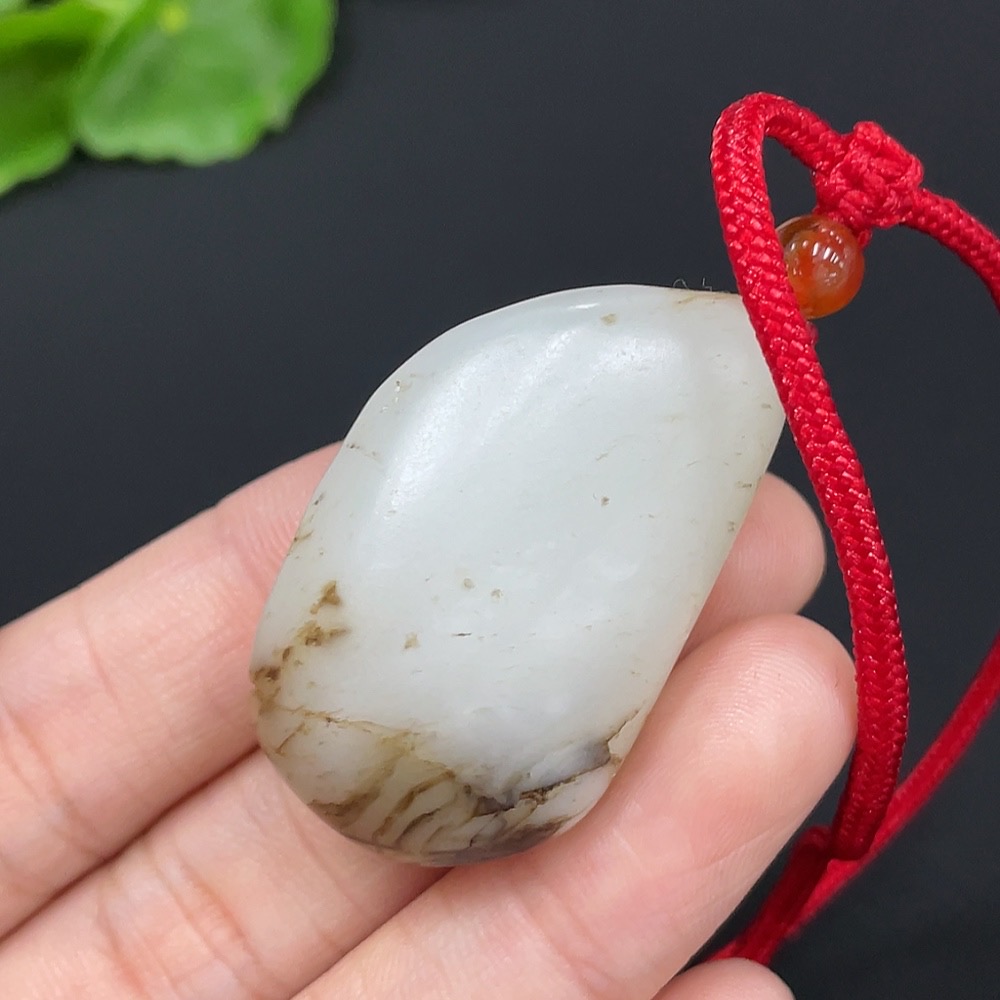 Hetian Jade Pendant, A Startling Debut, Undetermined Skin Color Origin, Total Weight (Including String) Approx. 23.8g