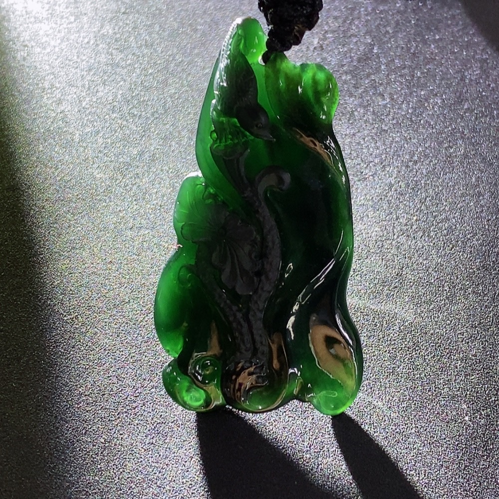 Jadeite Magpie on Plum Branch Pendant Total Weight: Approx. 13.37g