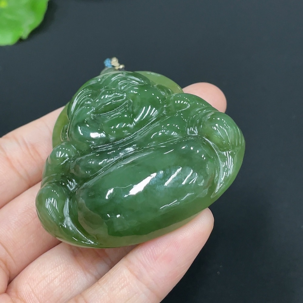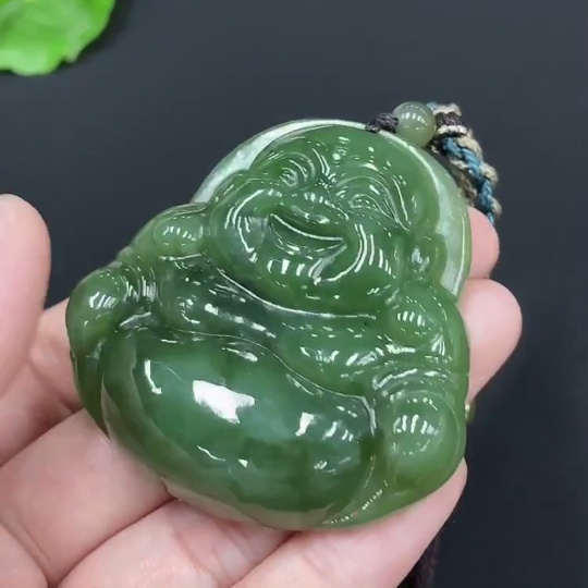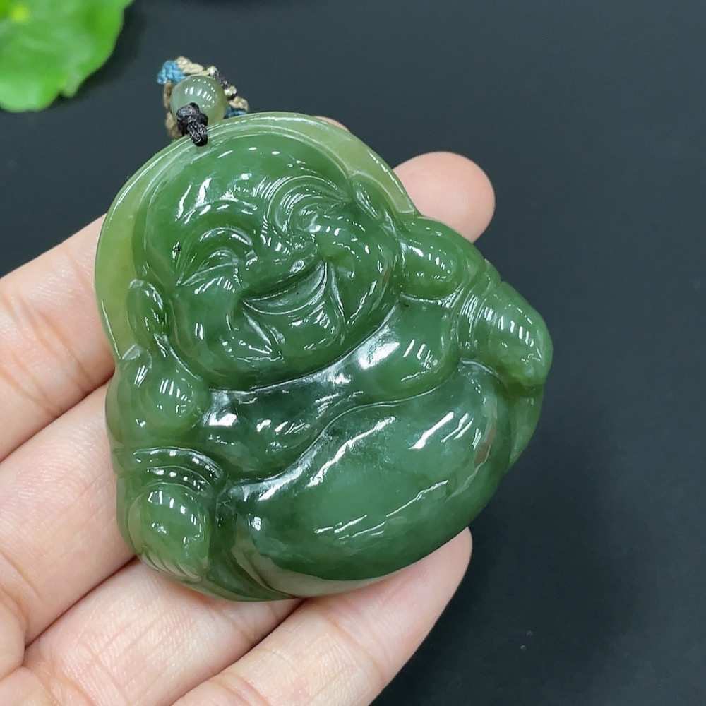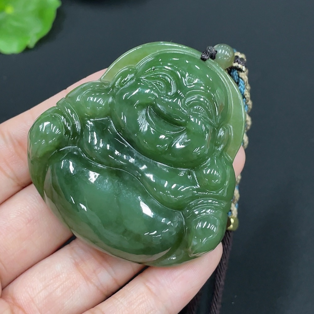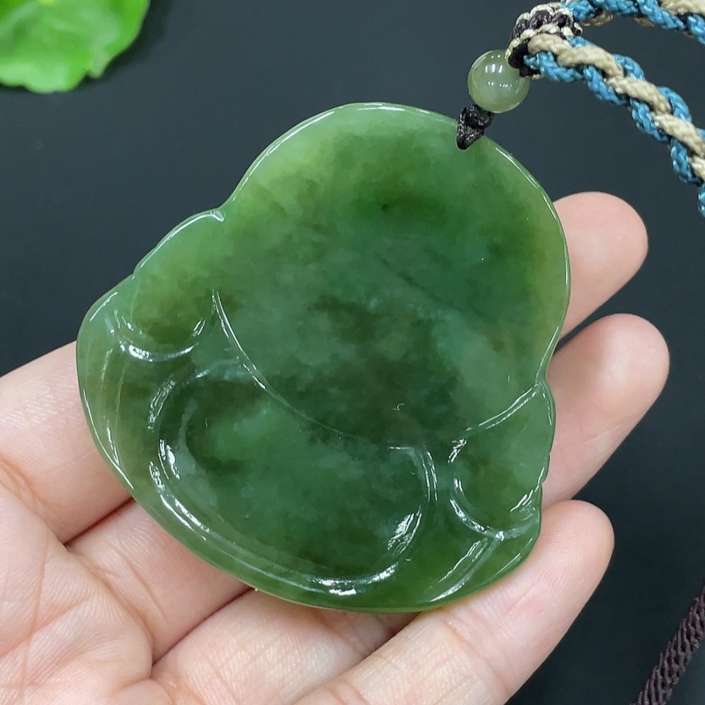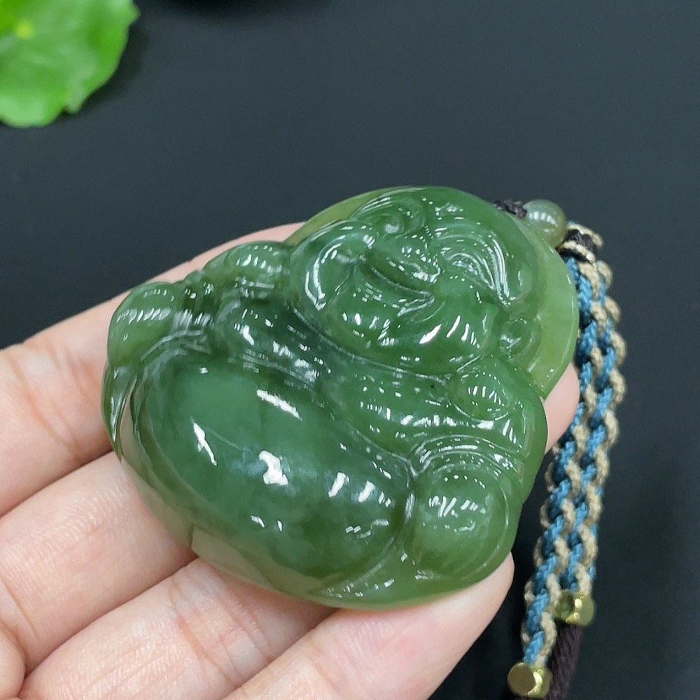 Hetian Jade Pendant Buddha, Total Weight (including rope): 51.4g