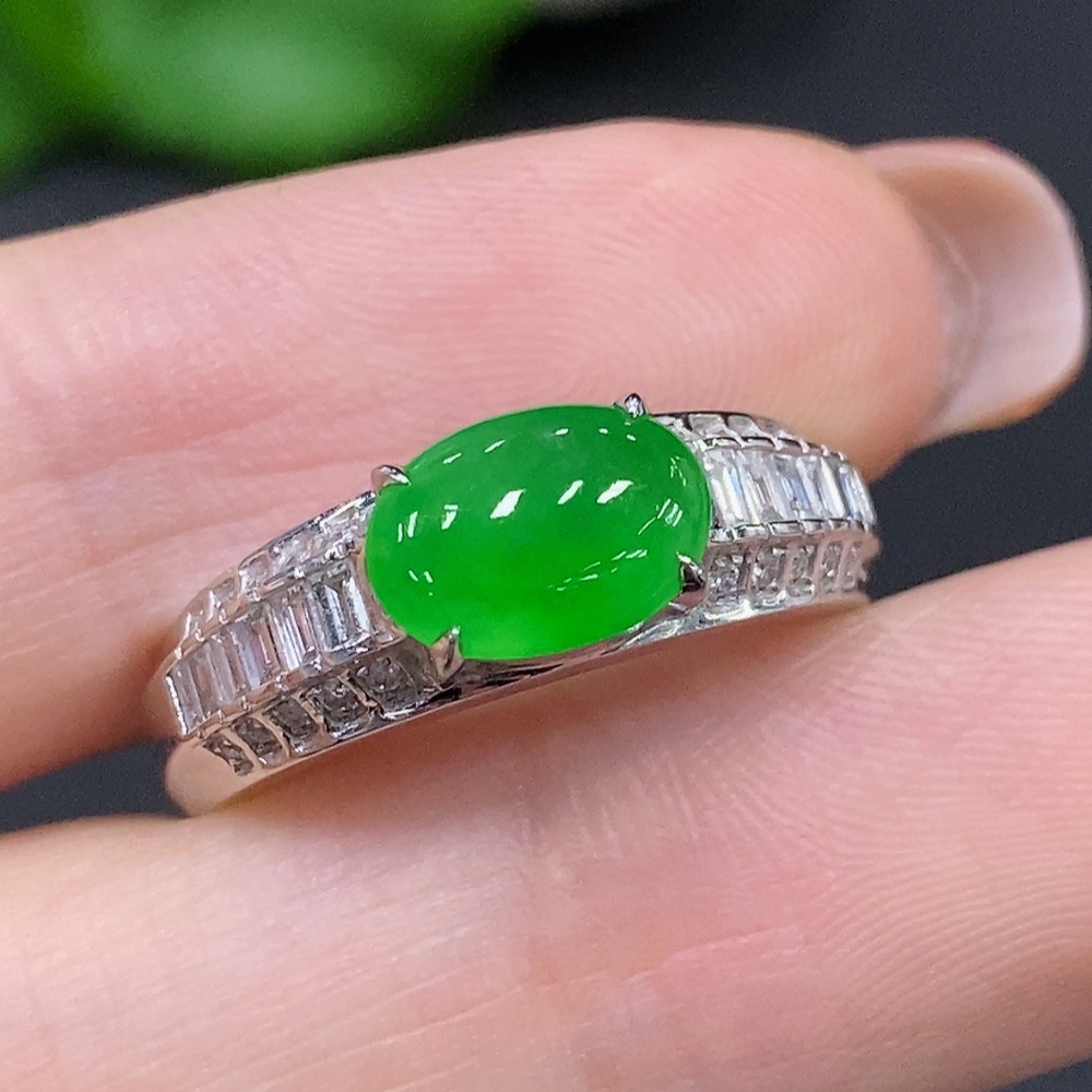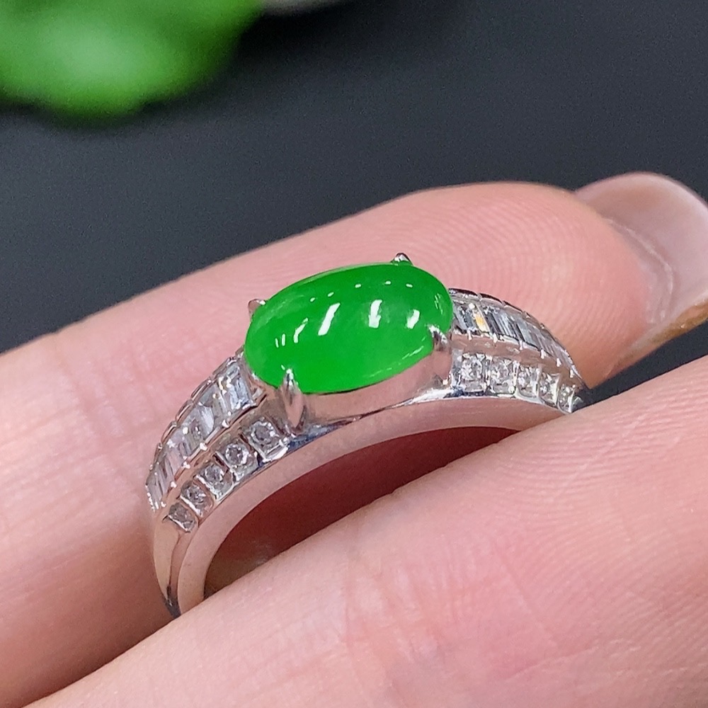 Jadeite Cabochon Ring 18k Gold Total Weight Approx. 3.8g Size 16