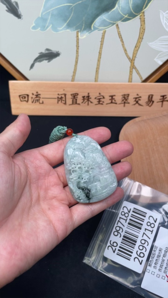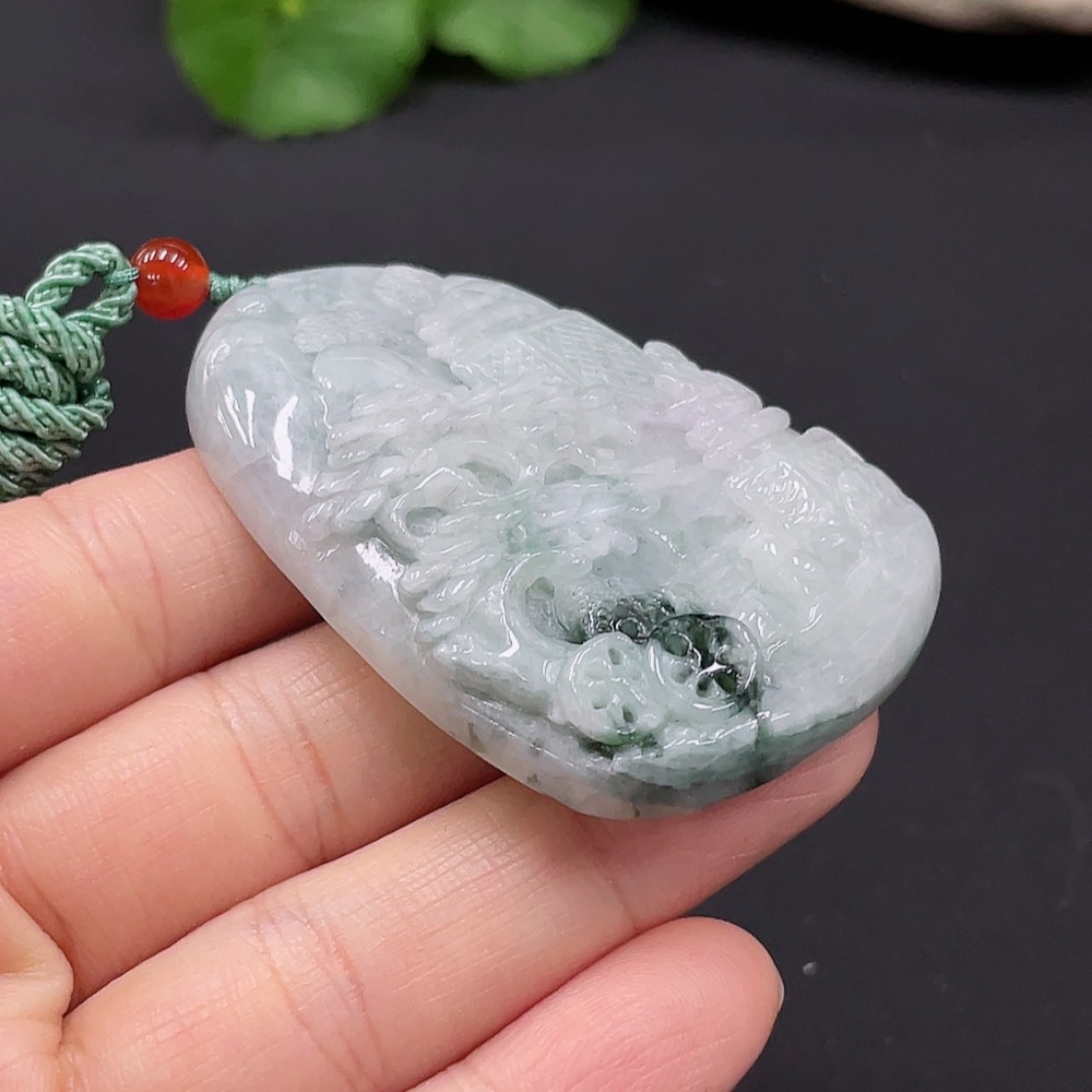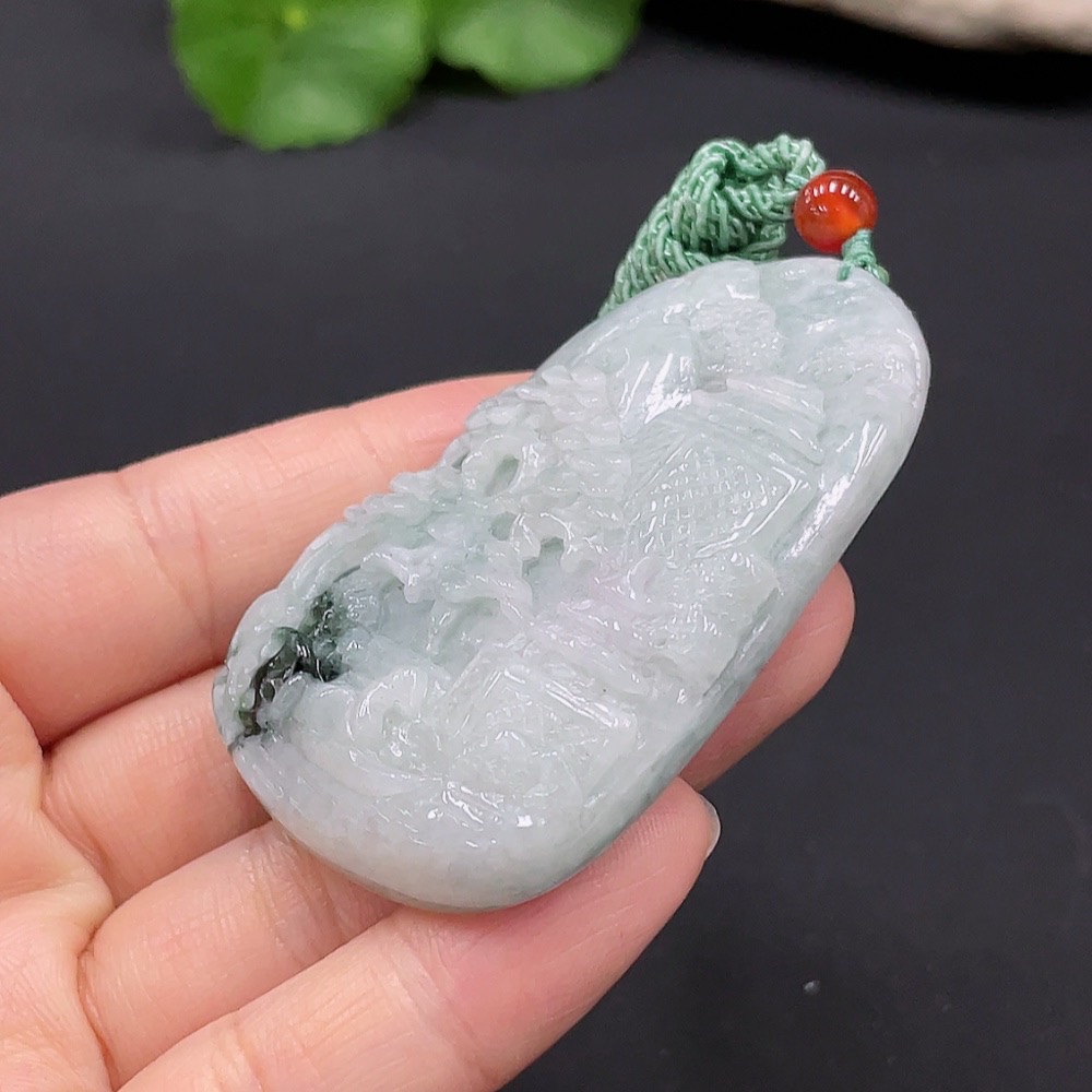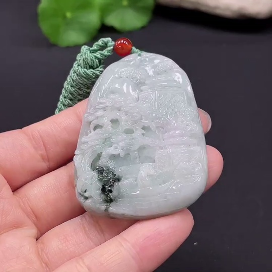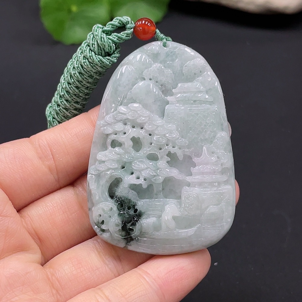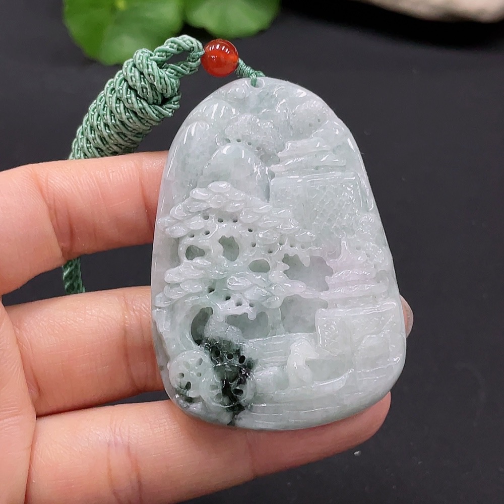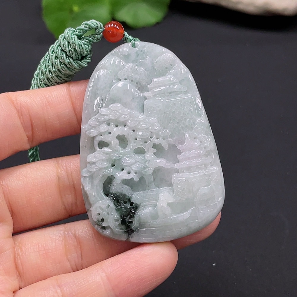 Jadeite Landscape Pendant Total weight about 45.93g with non-A grade beads