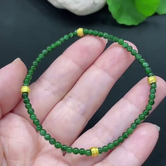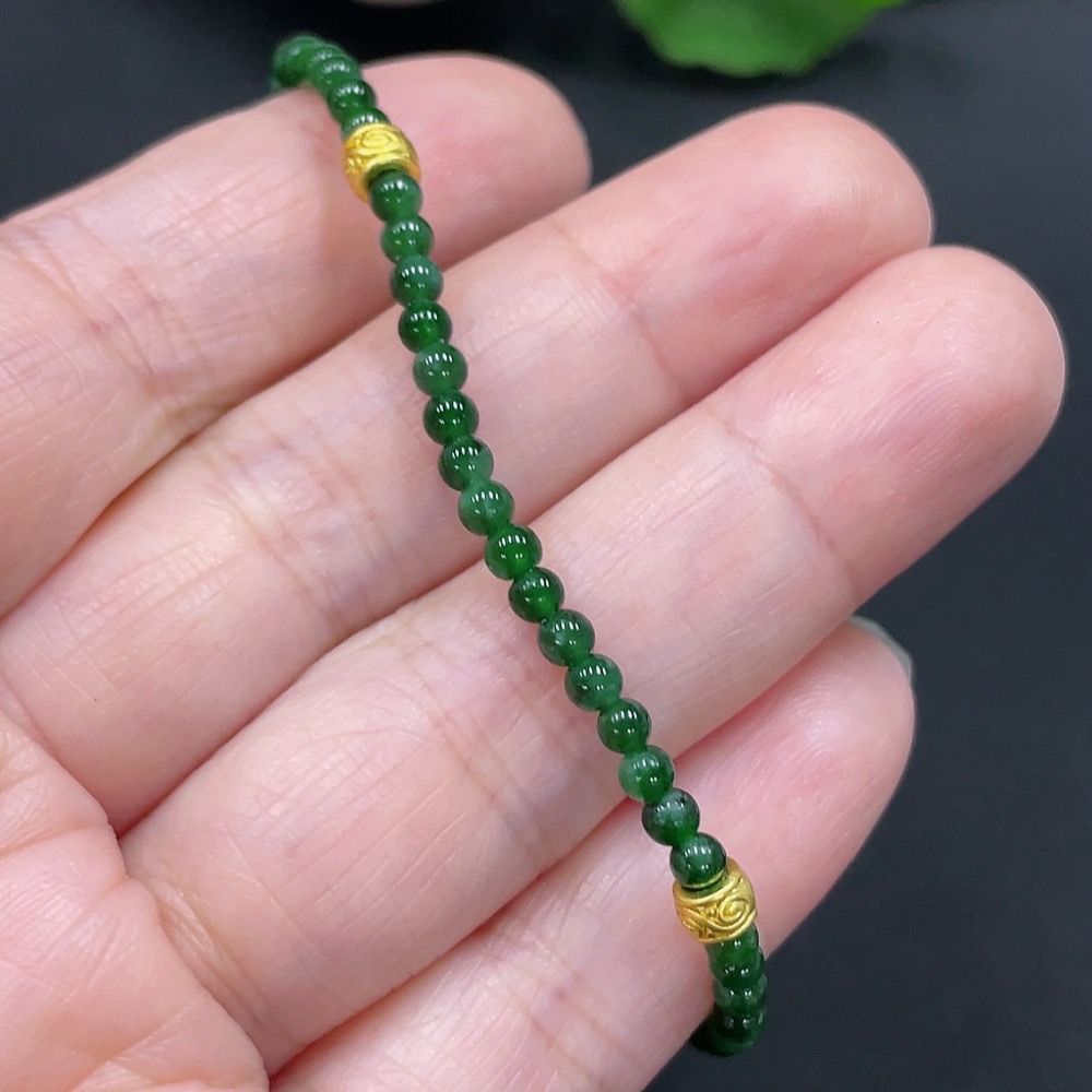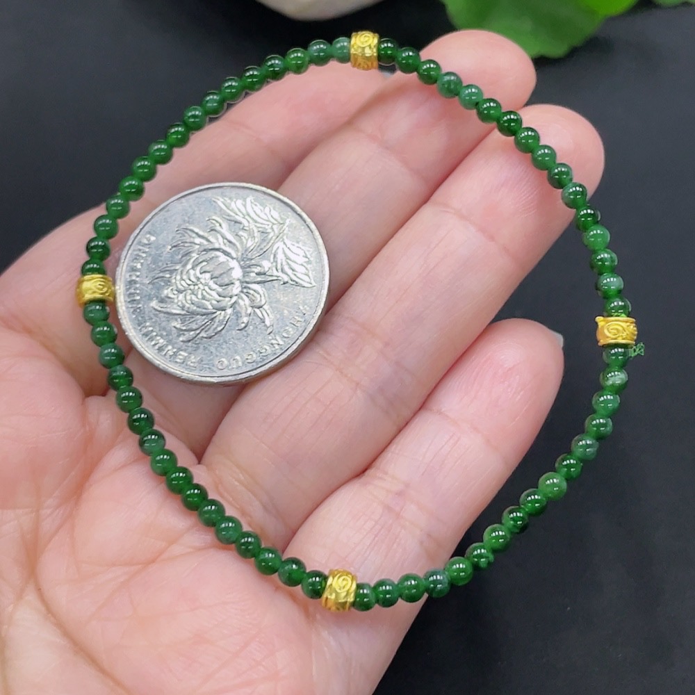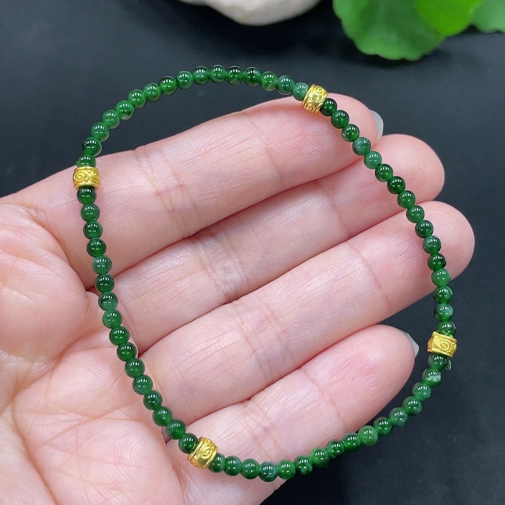 Jadeite bead necklace, approximately 2.9mm, total weight about 3.3g (non-gold inlaid)