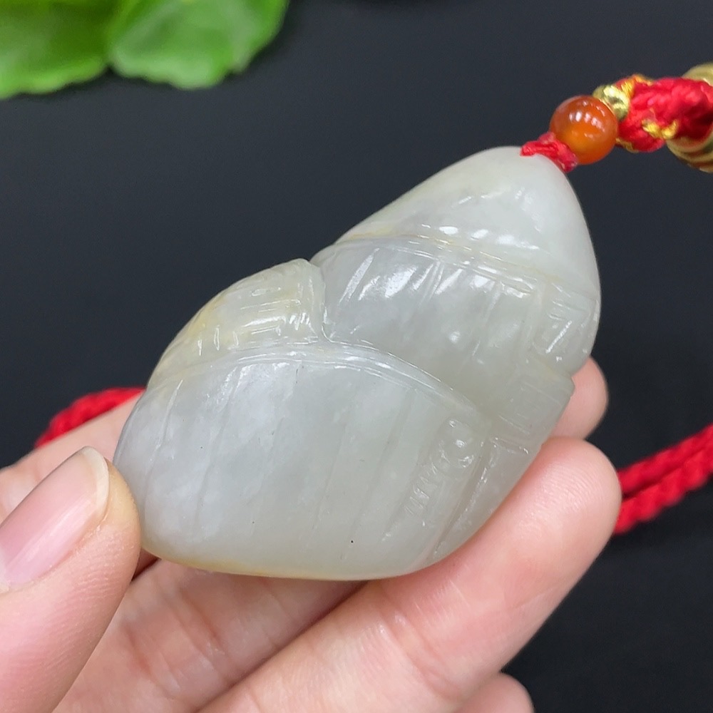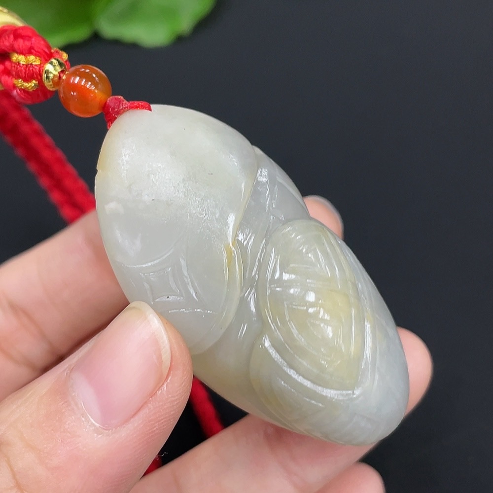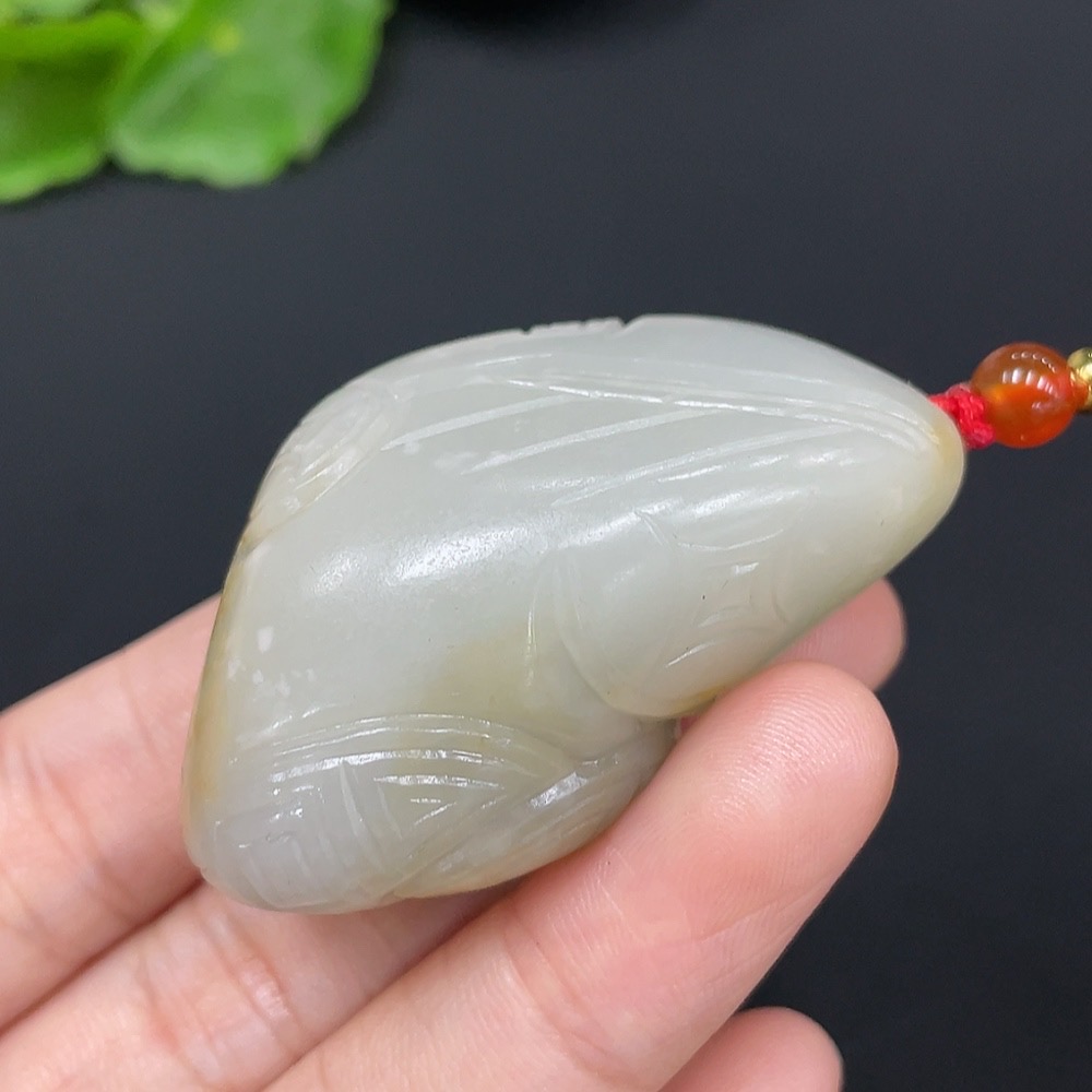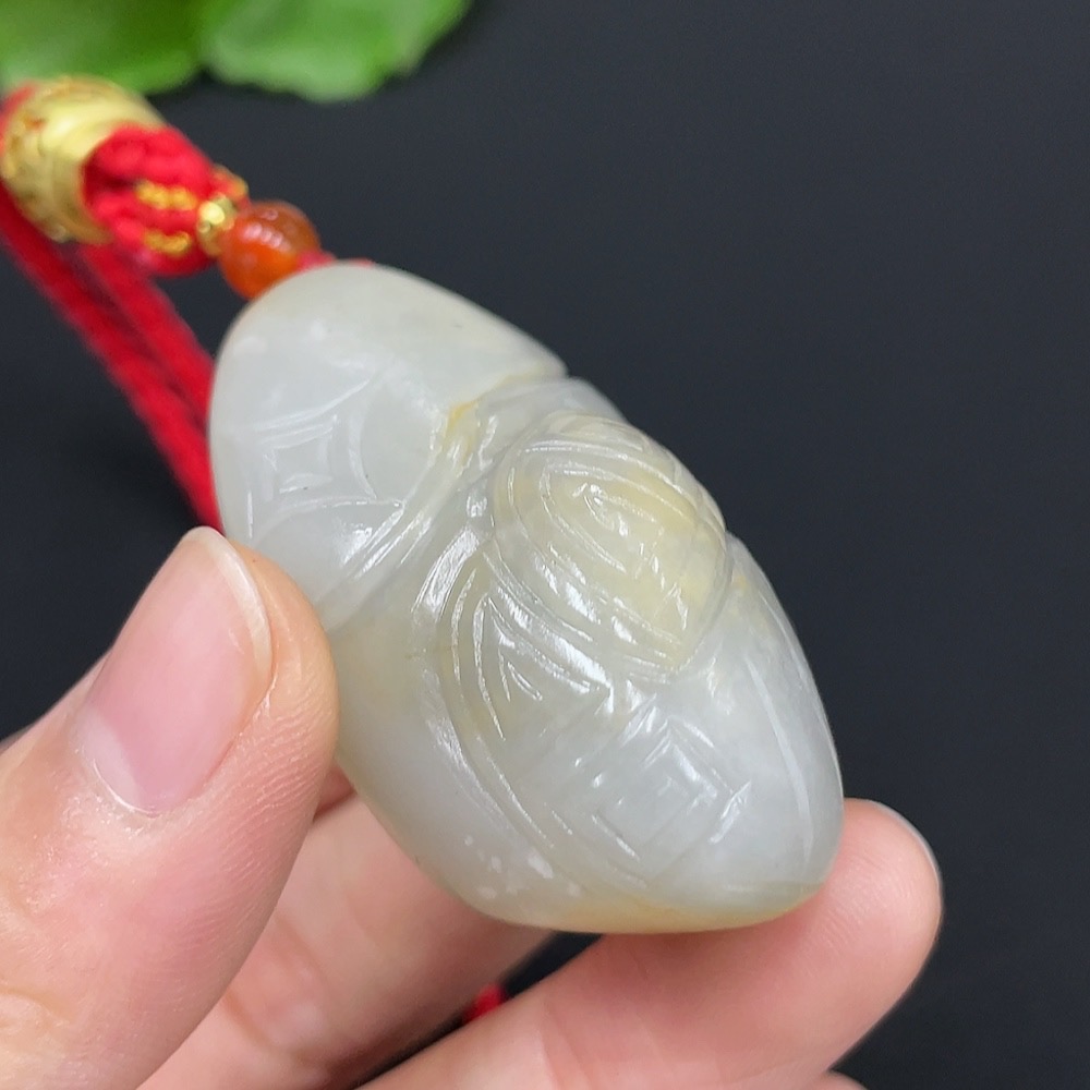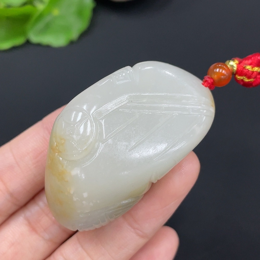 Hetian Jade Pendant, Antique Style, Undetermined Skin Color Origin, Total Weight (Including Rope) Approx. 51.9g