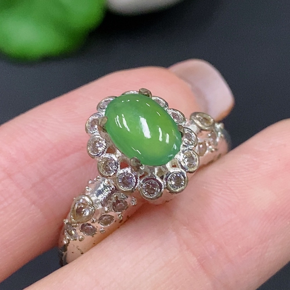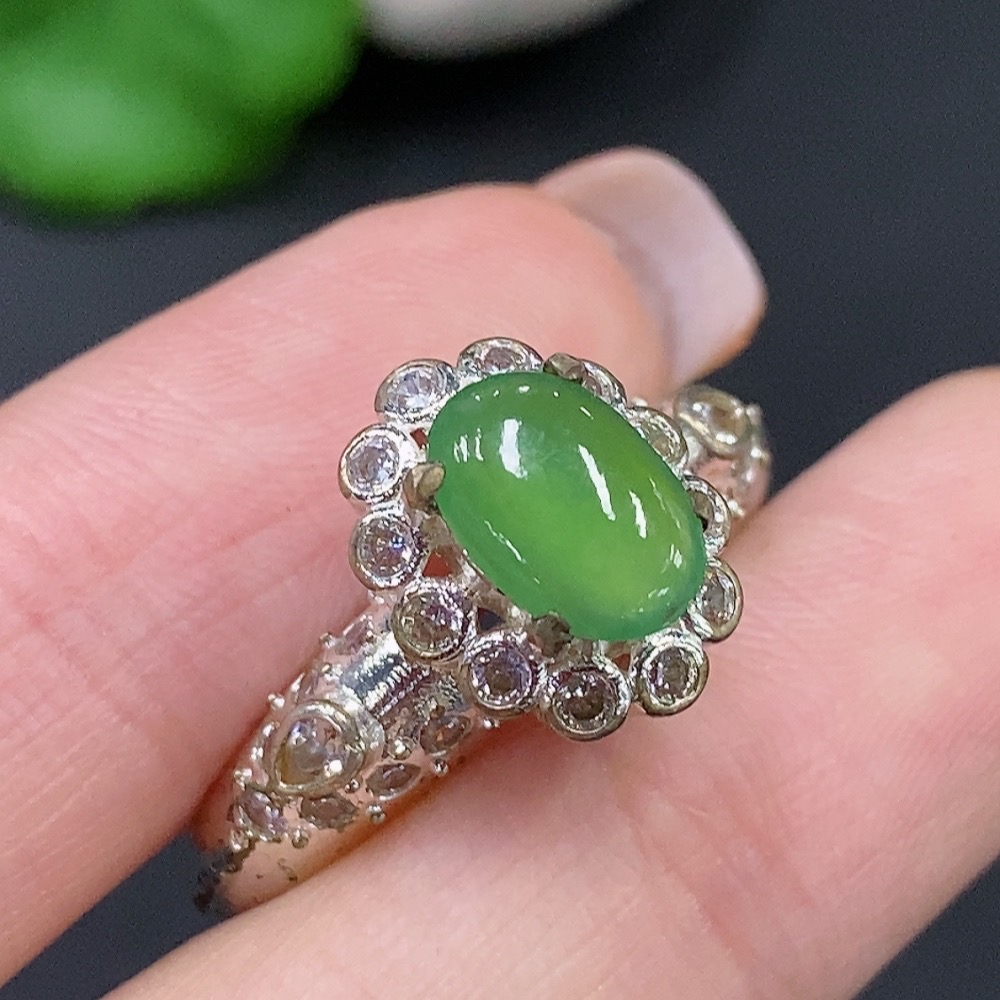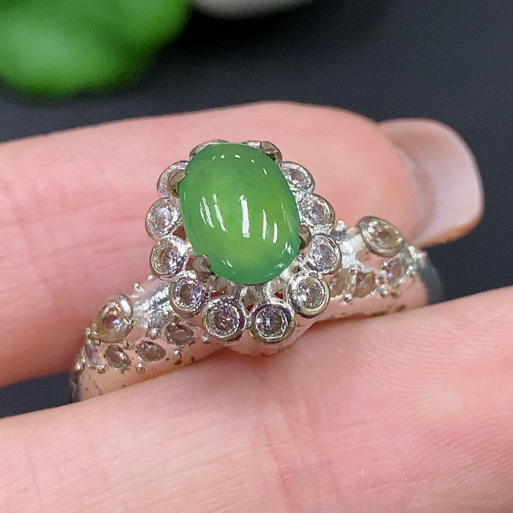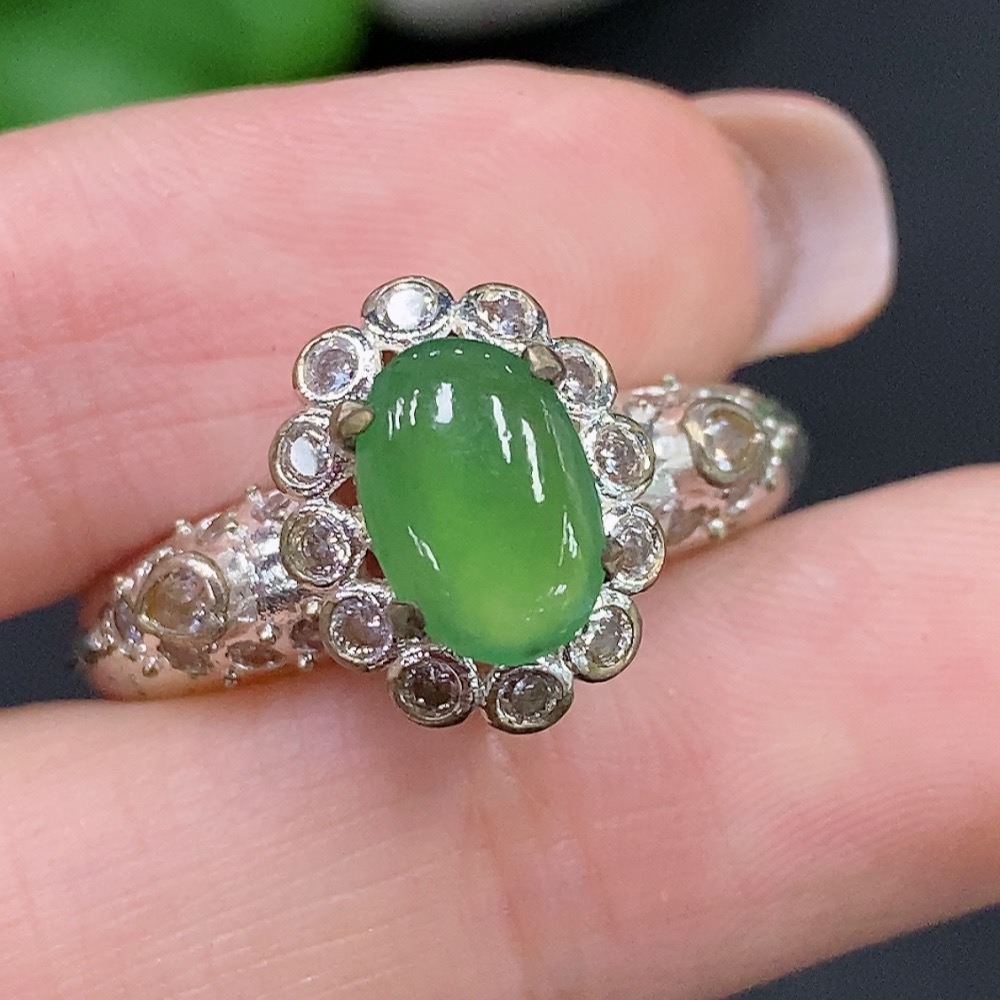 Trezaar - Jadeite Cabochon Non-Gold Inlaid Total Weight Approx. 7.3g