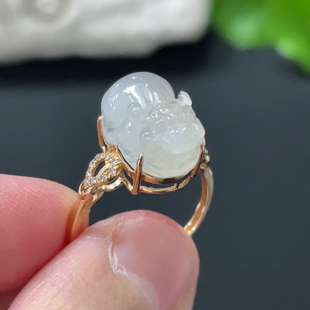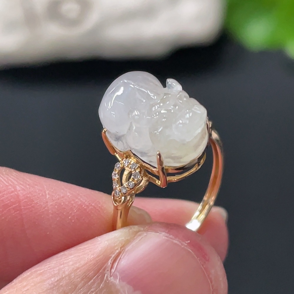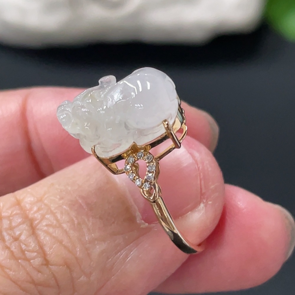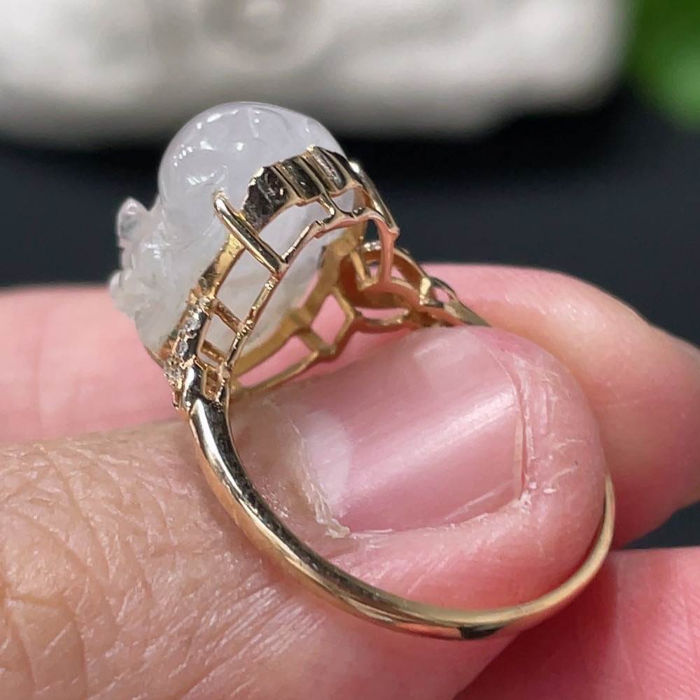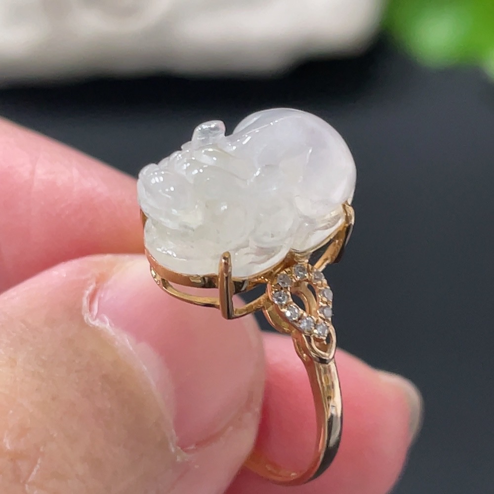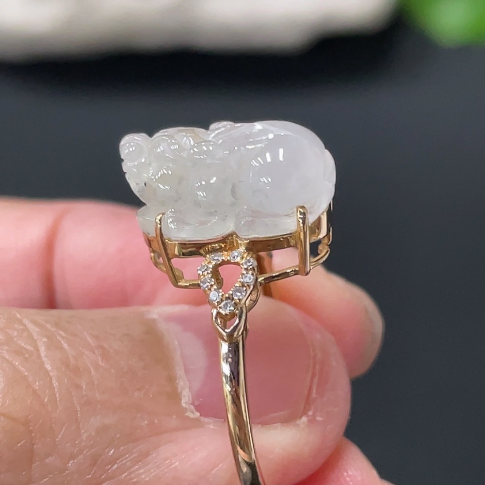 Jadeite Pi Xiu Inlaid Ring 18k Gold Setting Size 14 Total Weight Approx. 2.77g