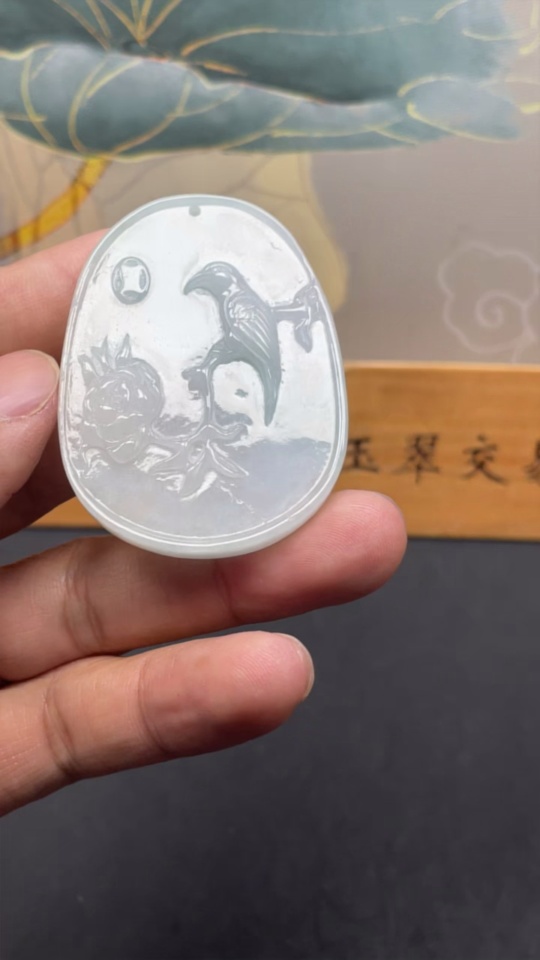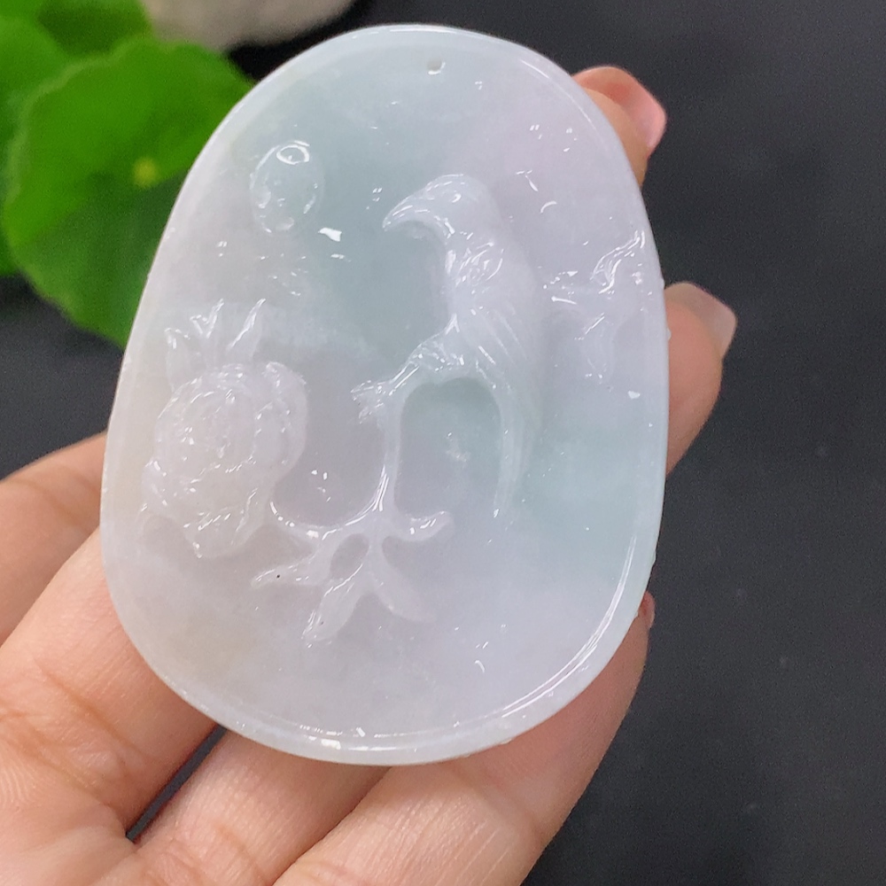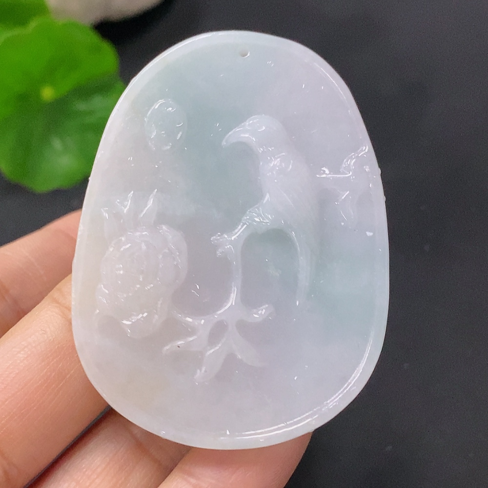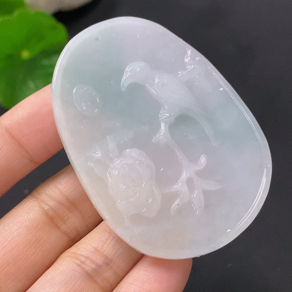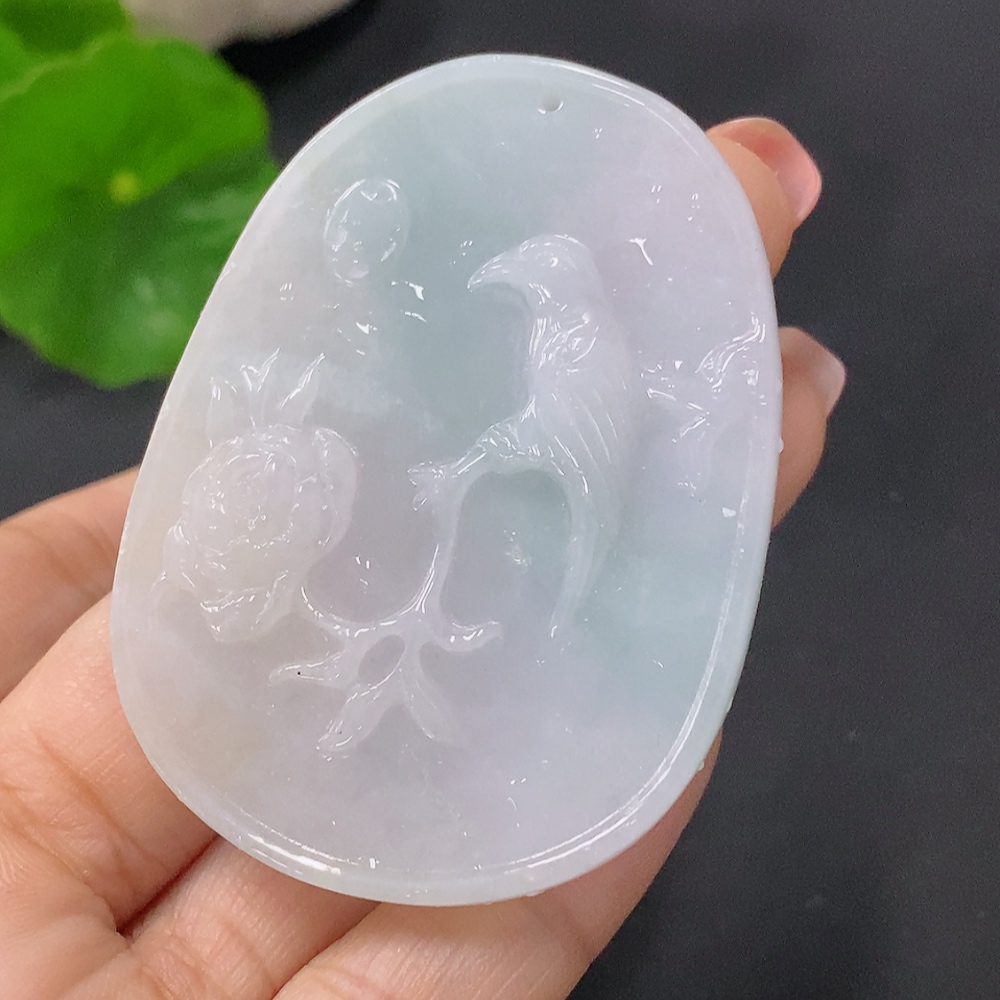 Jadeite Pendant Birds Singing and Flowers Giving Forth Fragrance