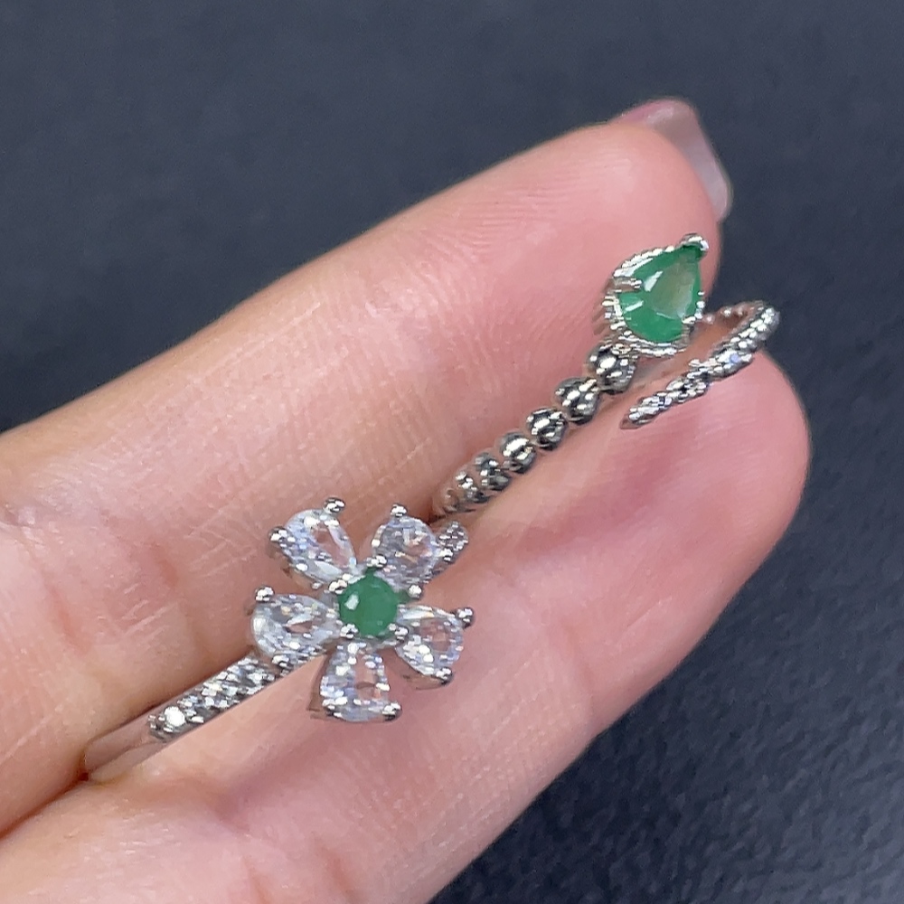 Emerald Ring, Clarity Enhanced, Adjustable Shank, Non-Gold Setting, Total Weight Approx. 3.66g
