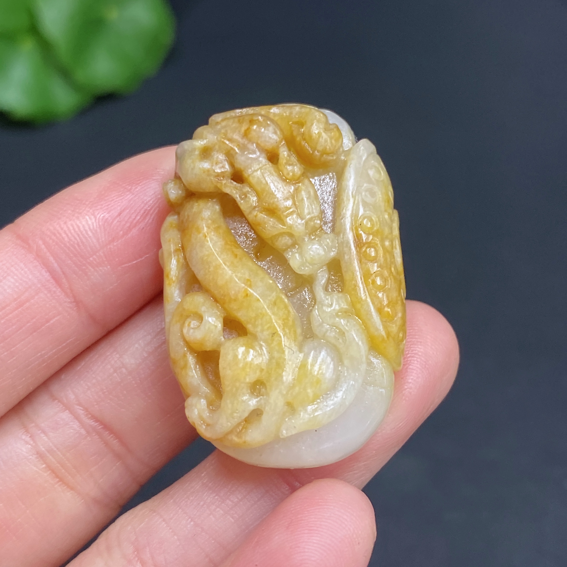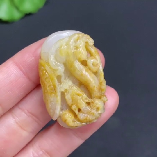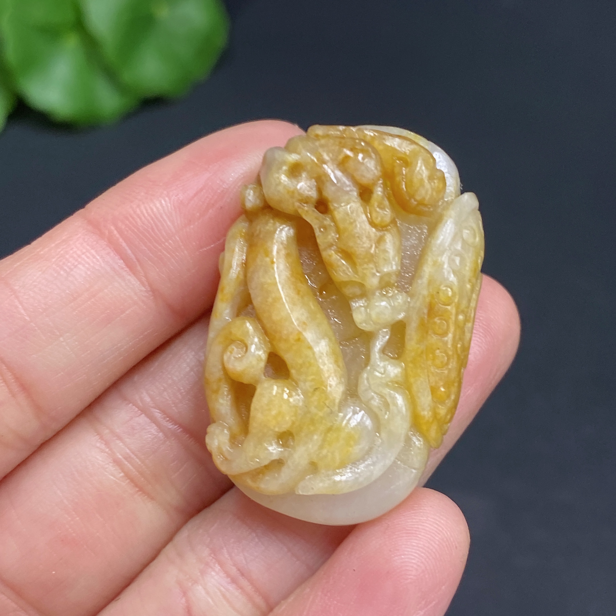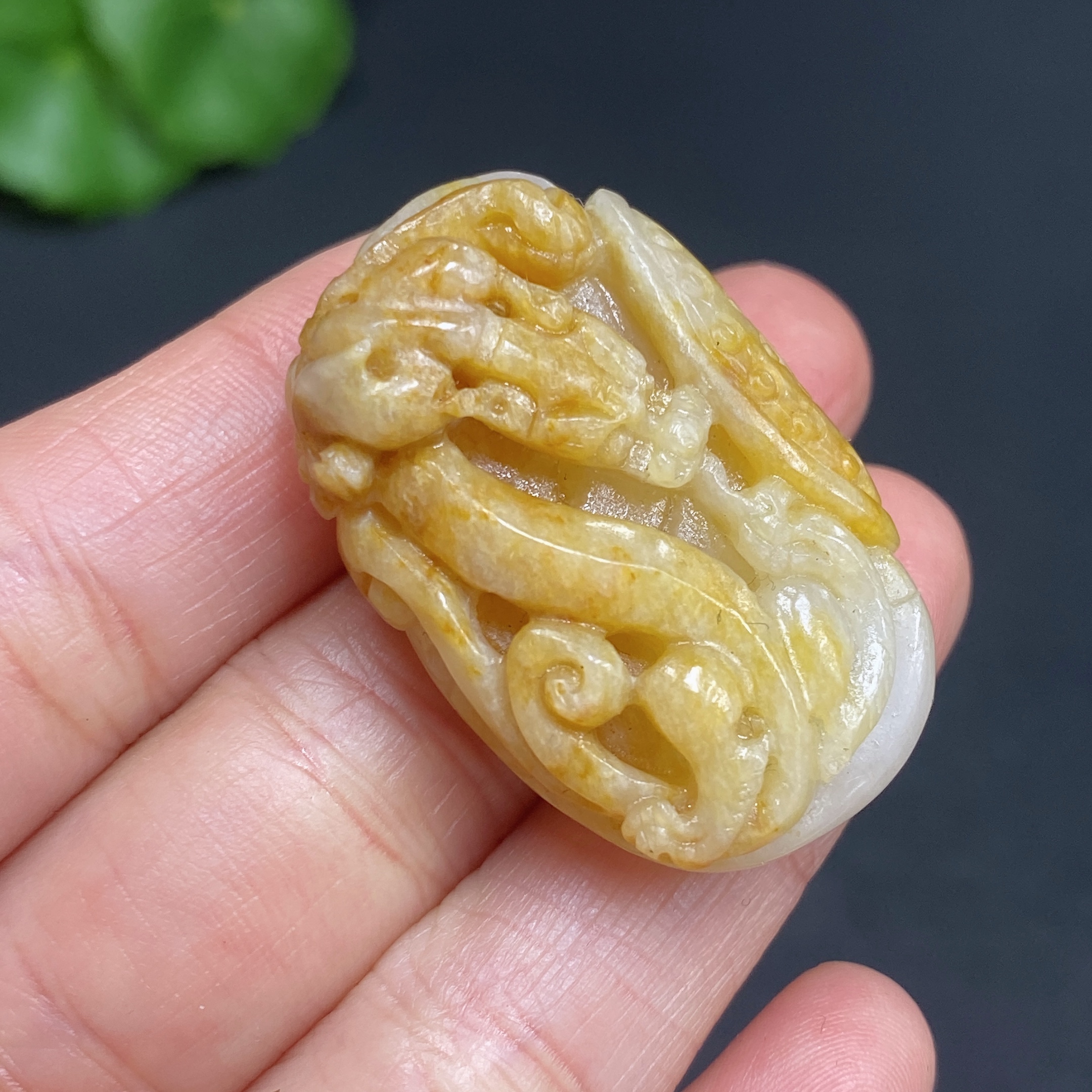 Hetian Jade Pendant, Auspicious Beast, Undetermined Skin Color Origin, Total Weight Approx. 17.6g