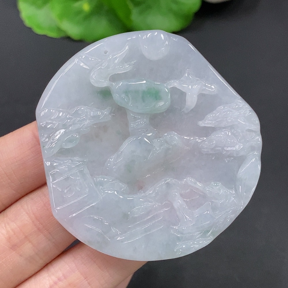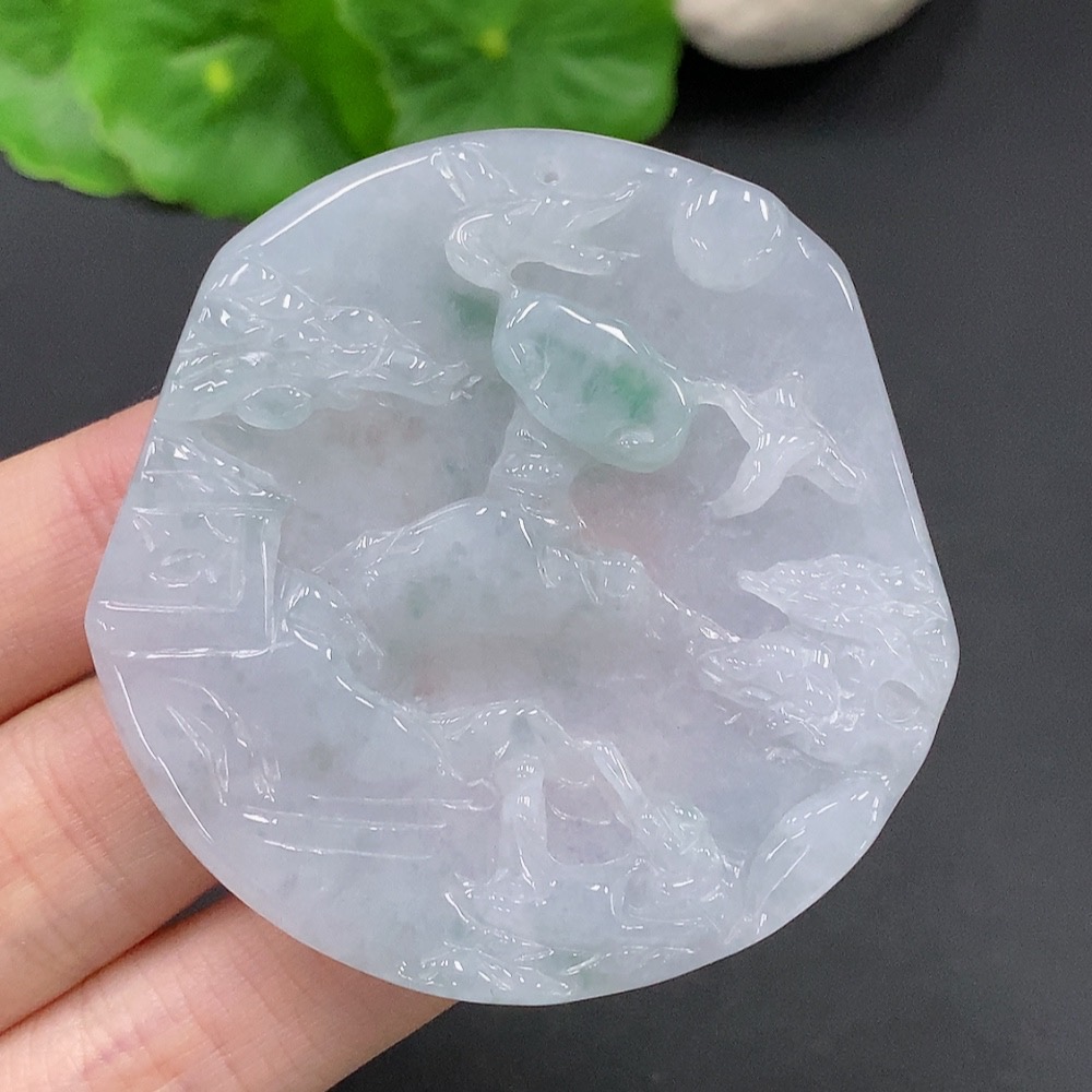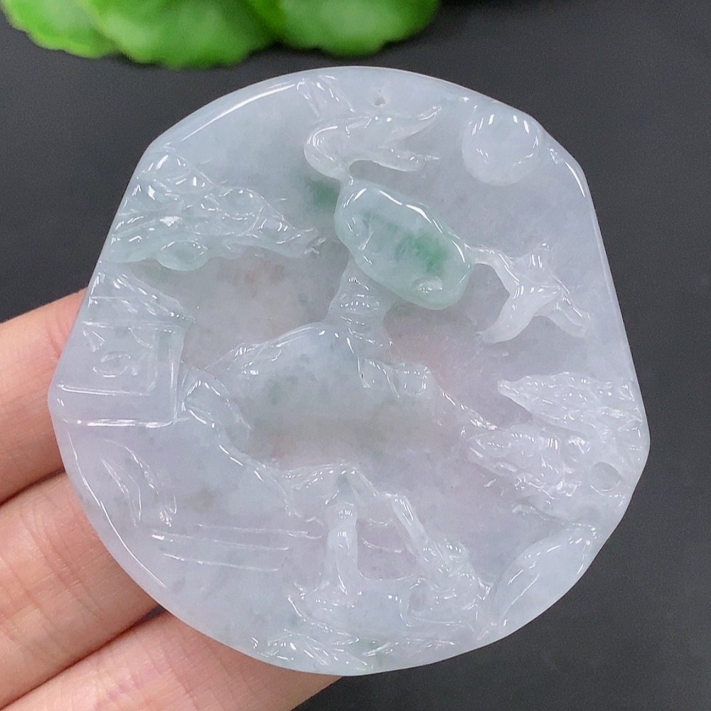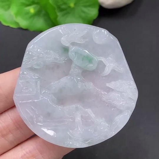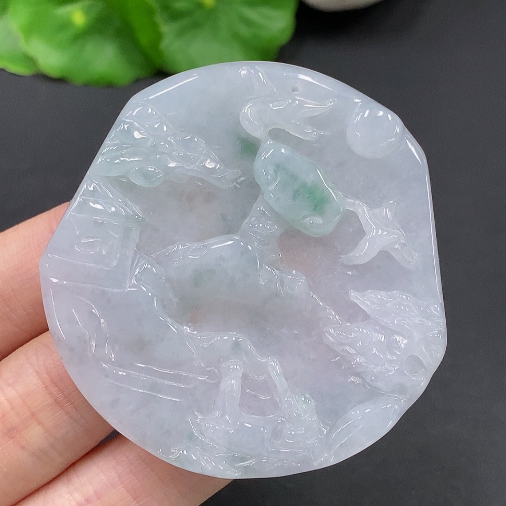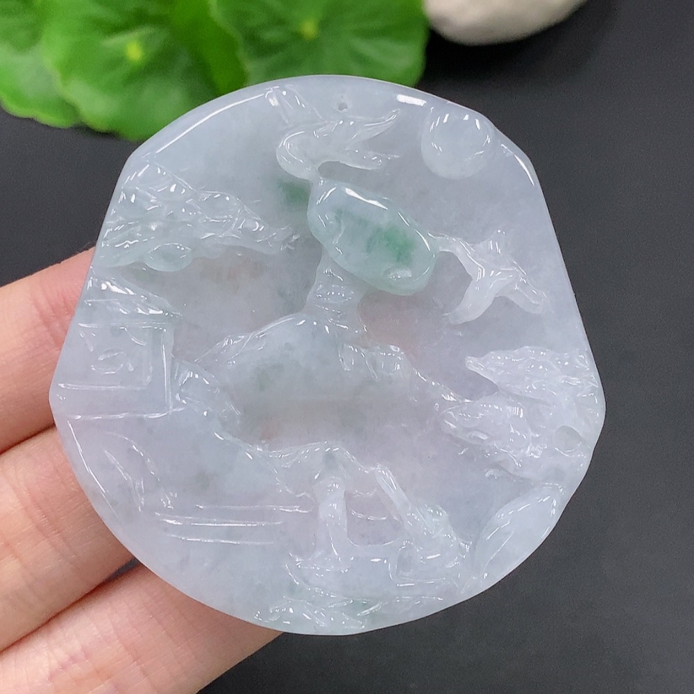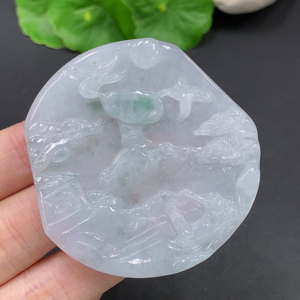 Jadeite Landscape Pendant, Total Weight Approximately 34g