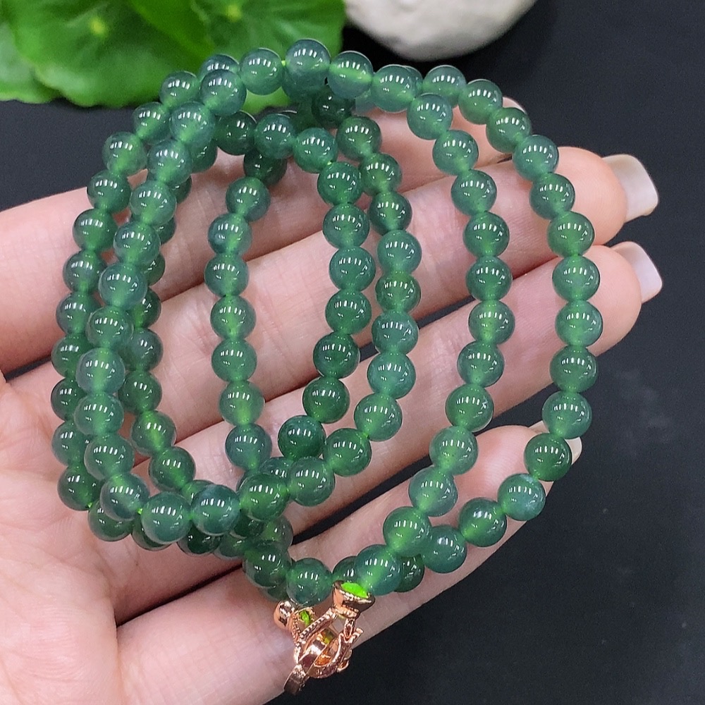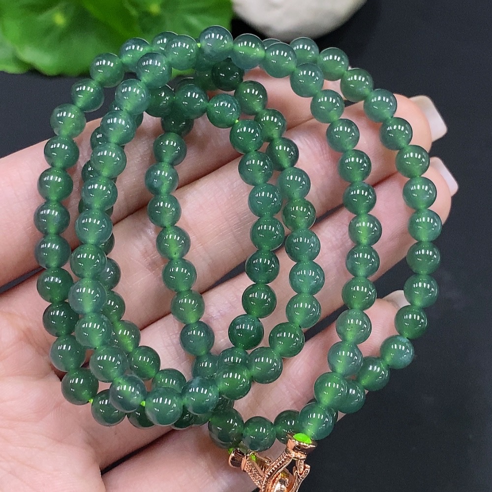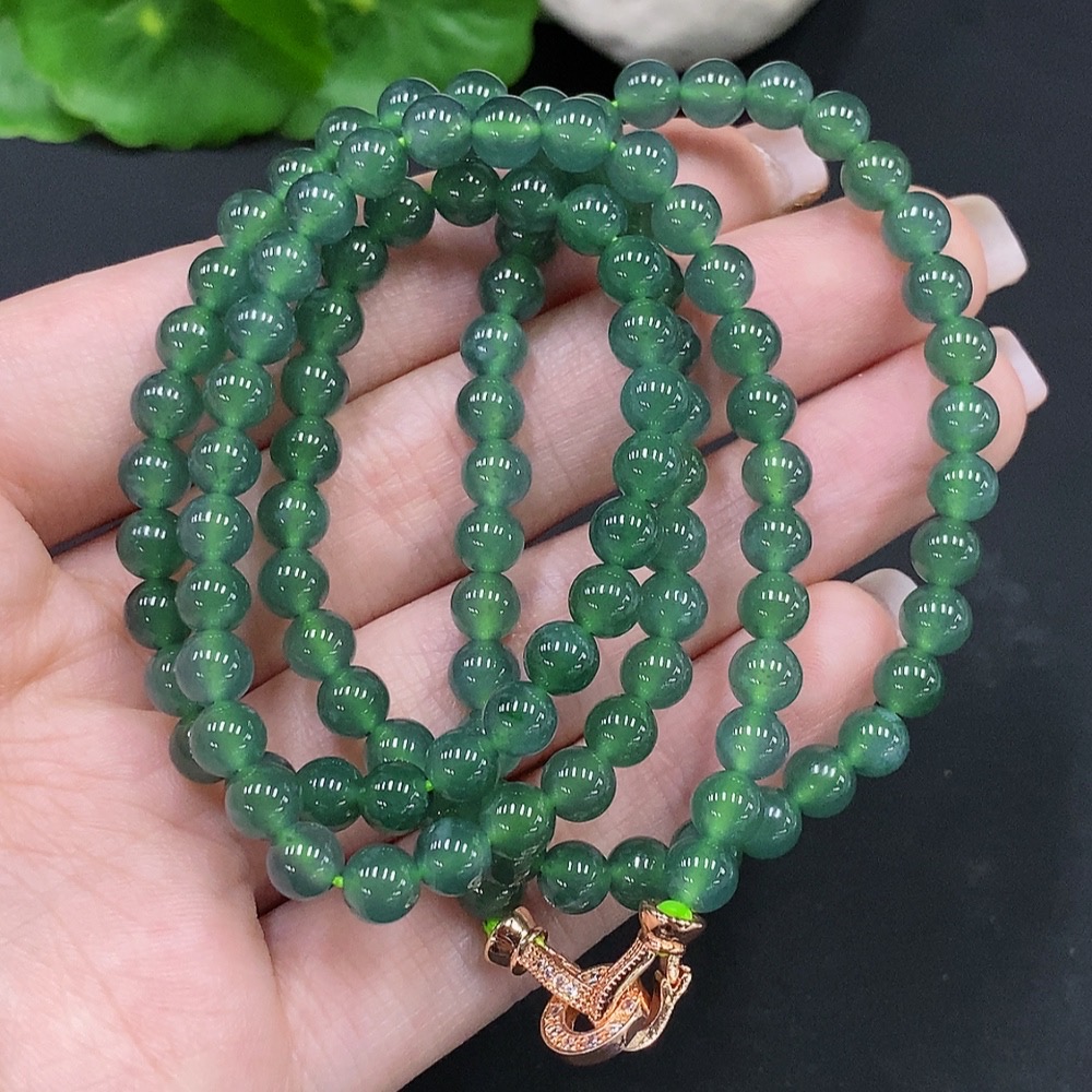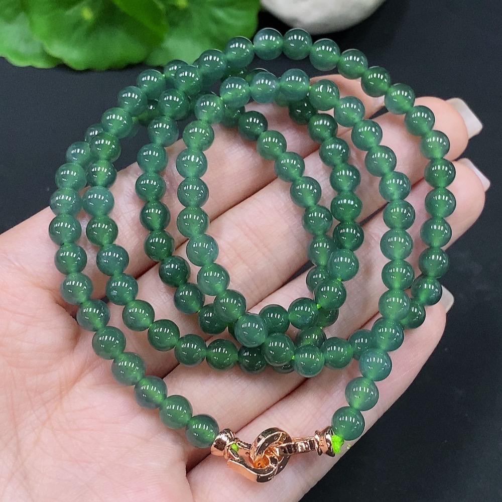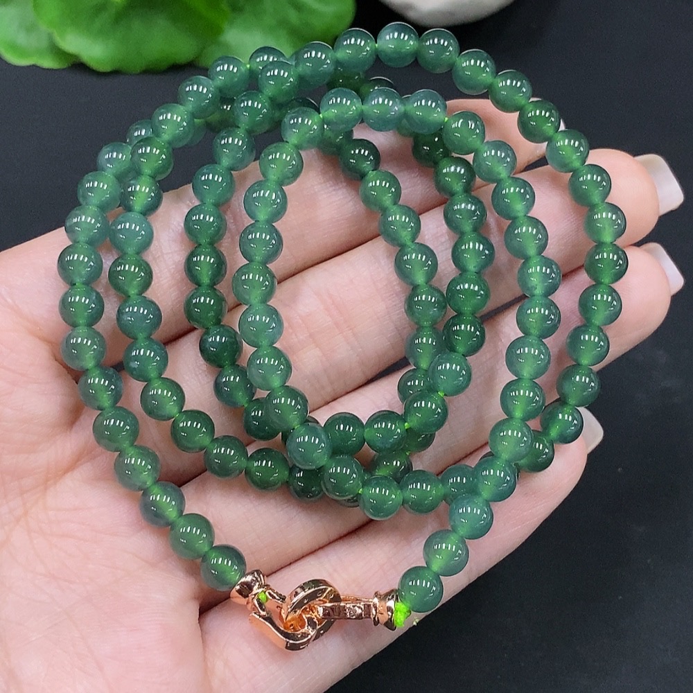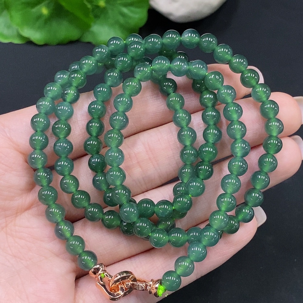 Jadeite Bead Necklace Non-Gold Inlaid Total Weight Approximately 32.6g Size About 5.3mm