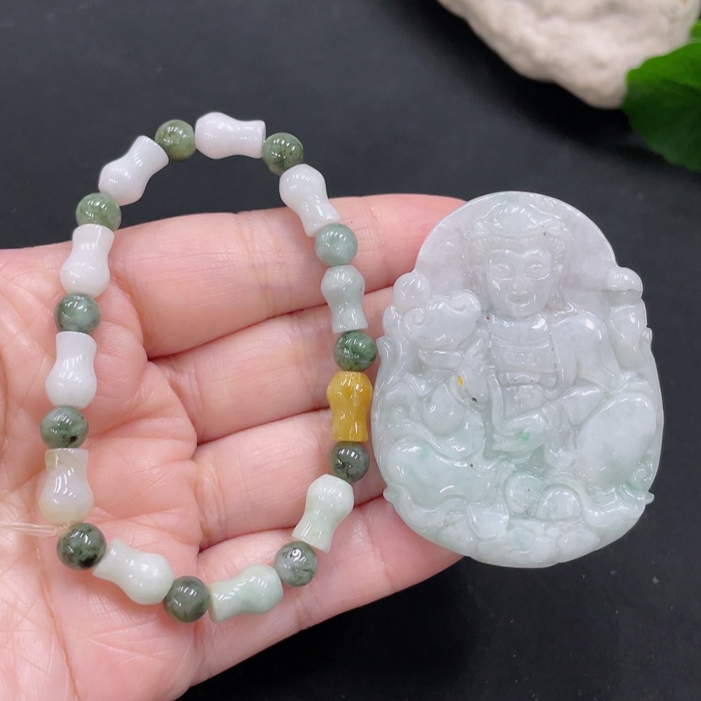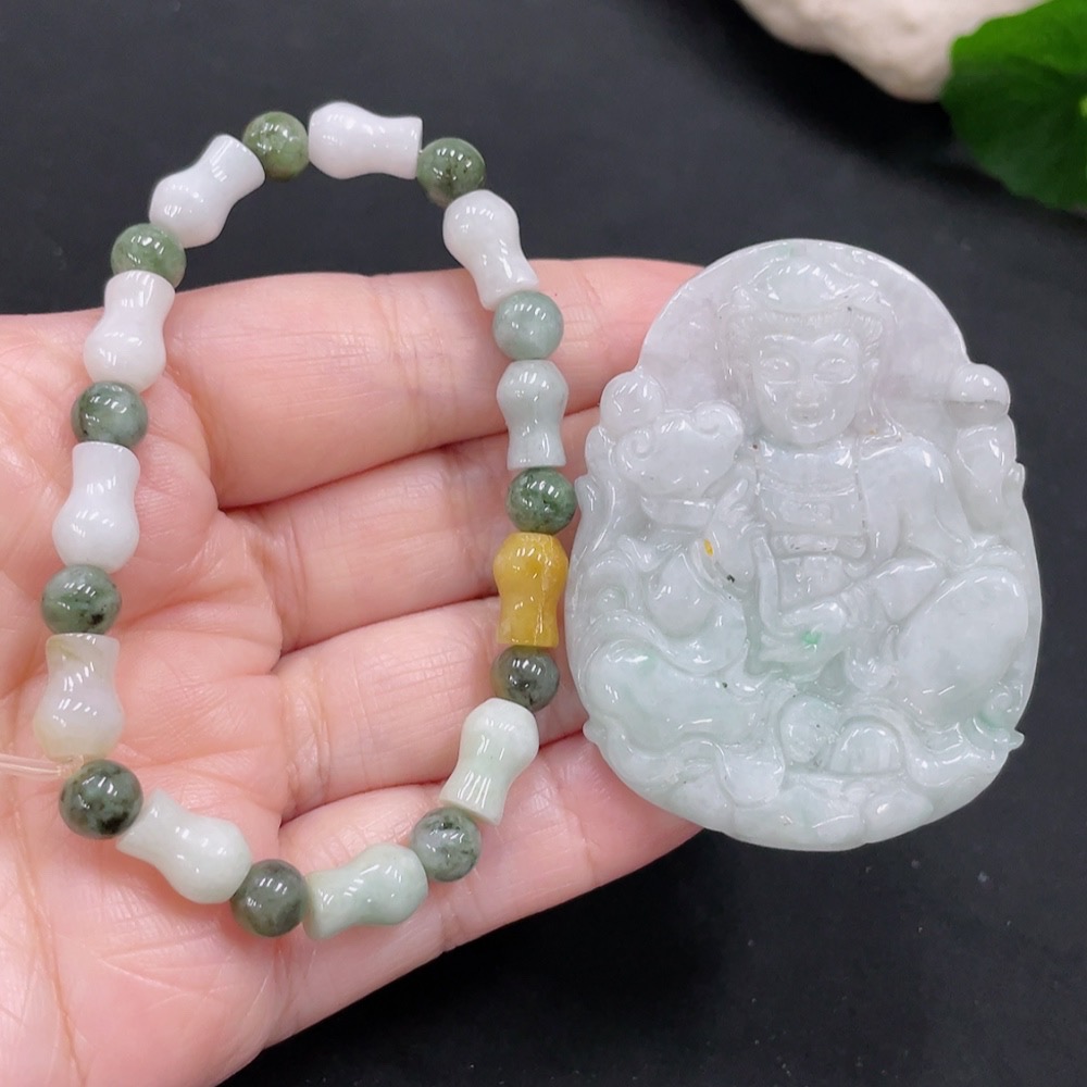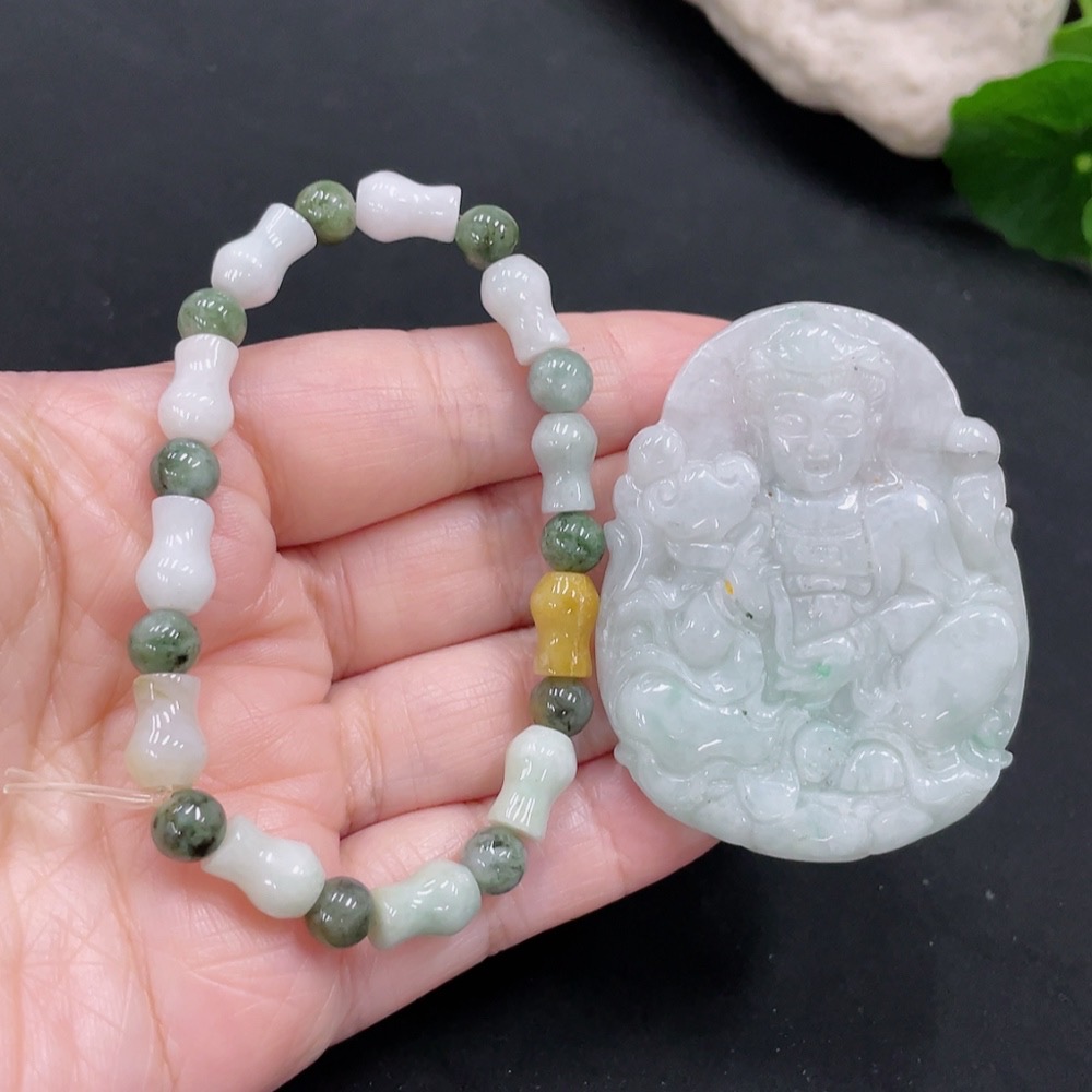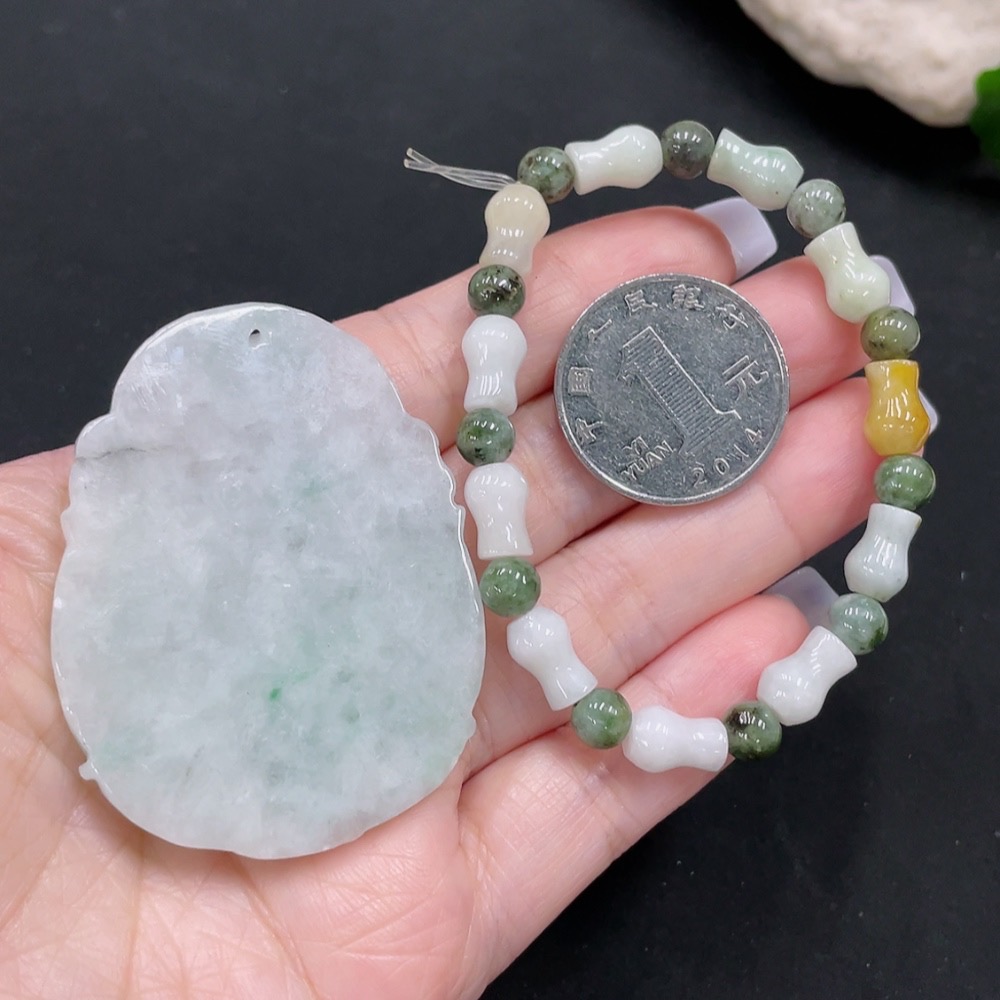 Jadeite Bracelet + Pendant Sell as a Lot (Color origin undetermined)