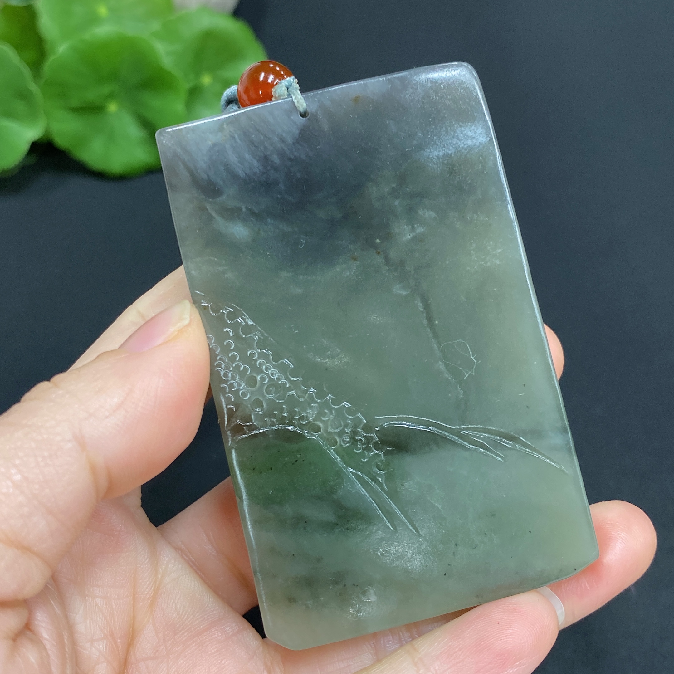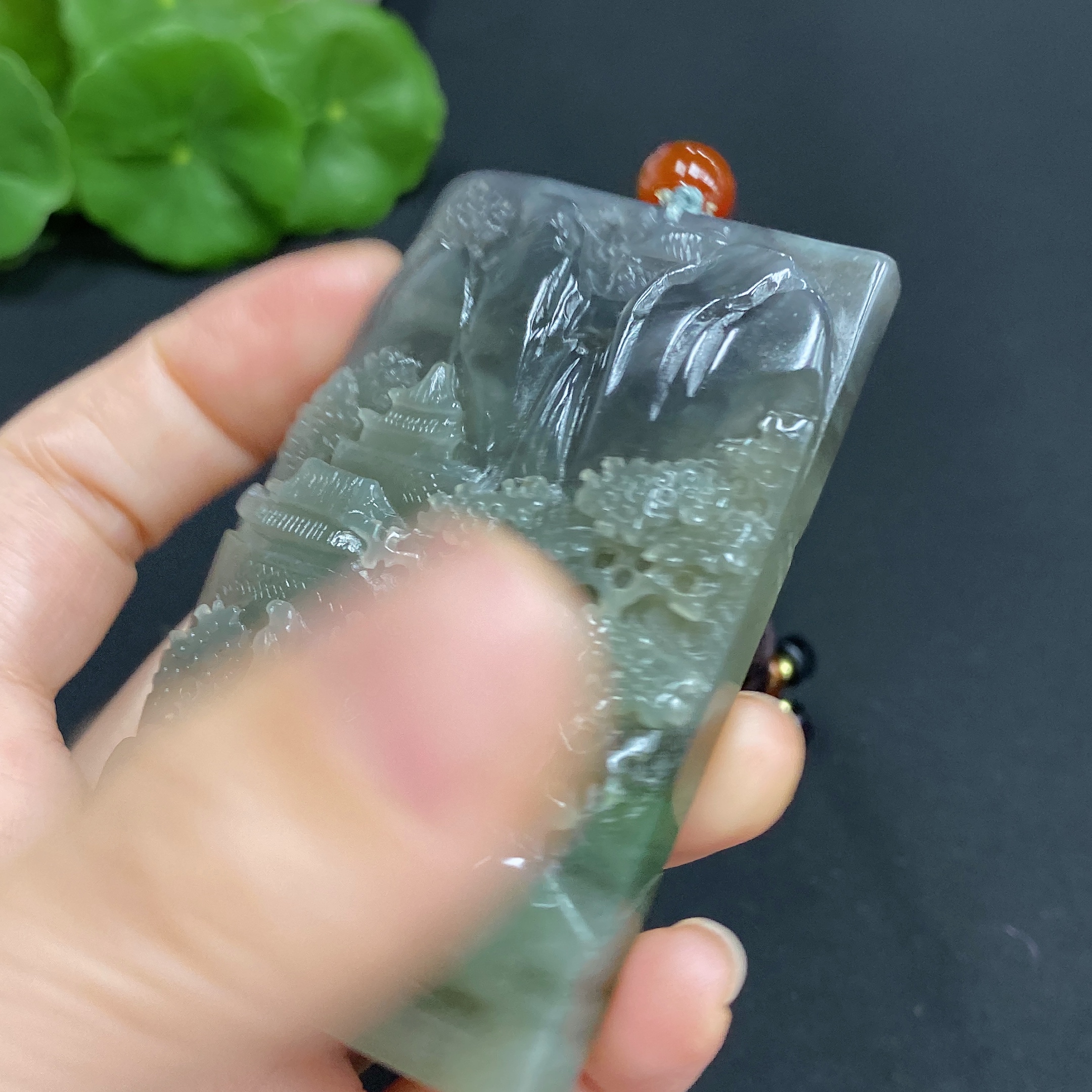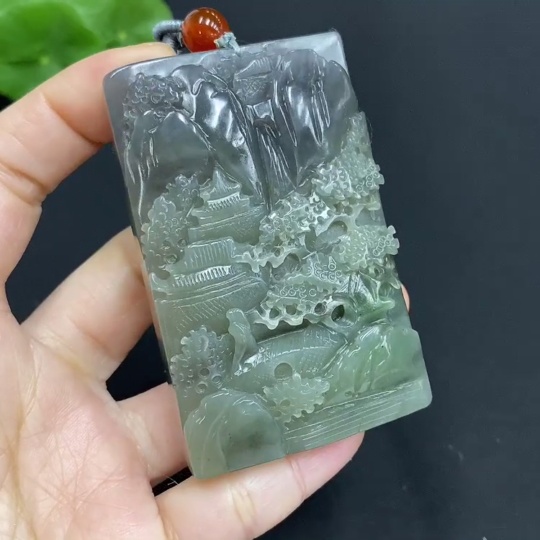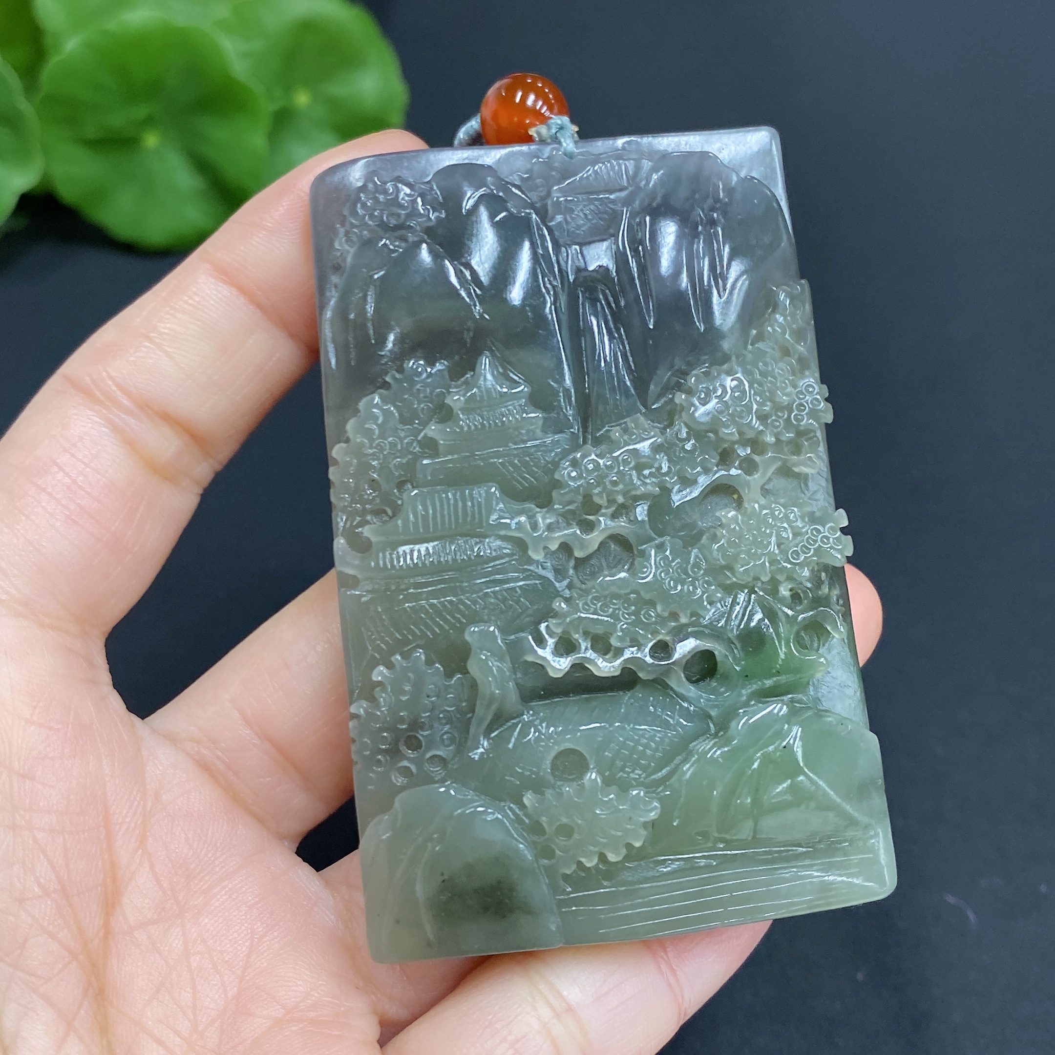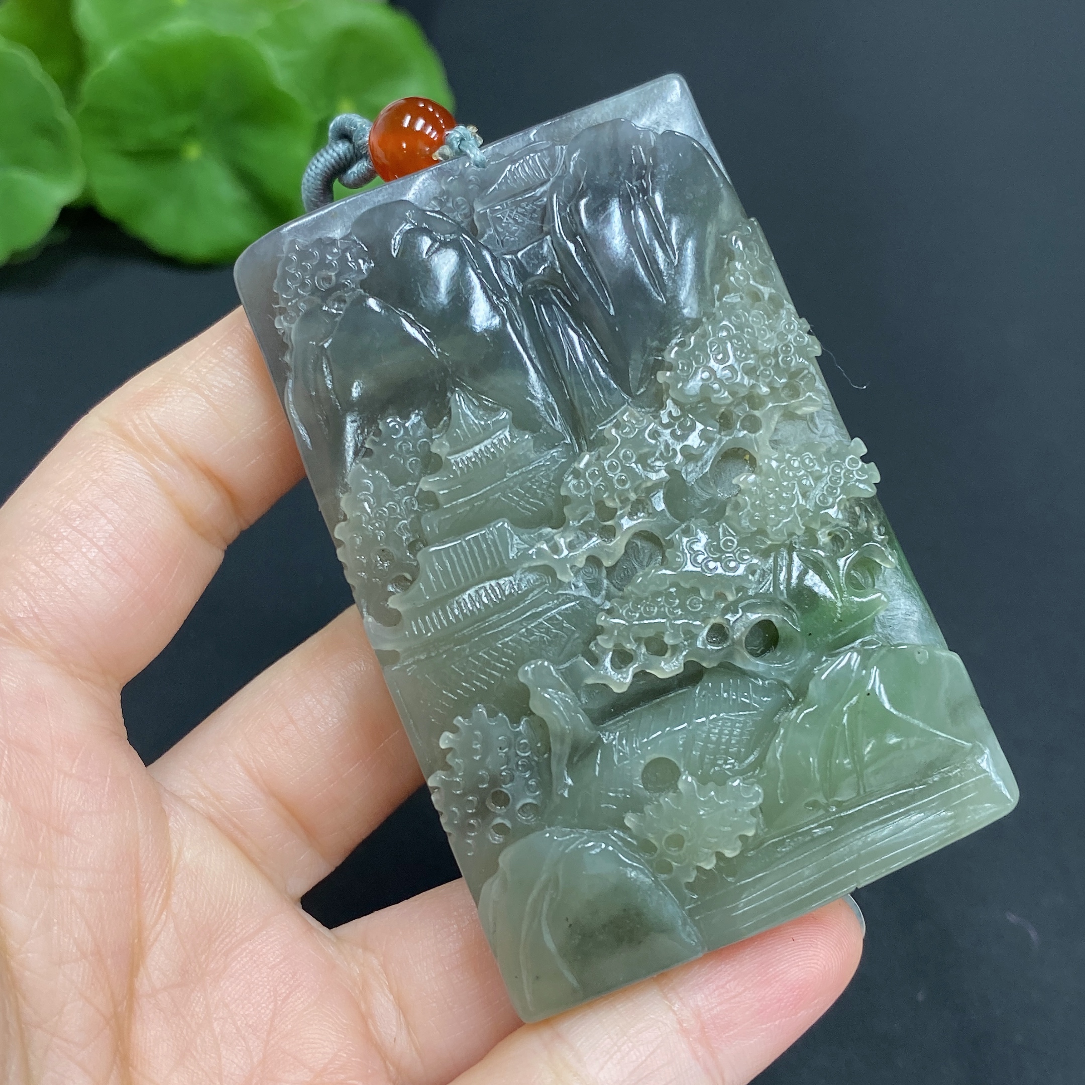 Hetian Jade Pendant Landscape Plaque Total Weight (including rope) 96.4g
