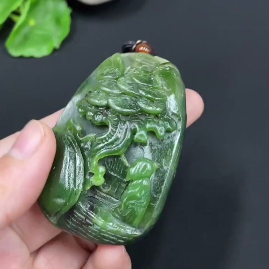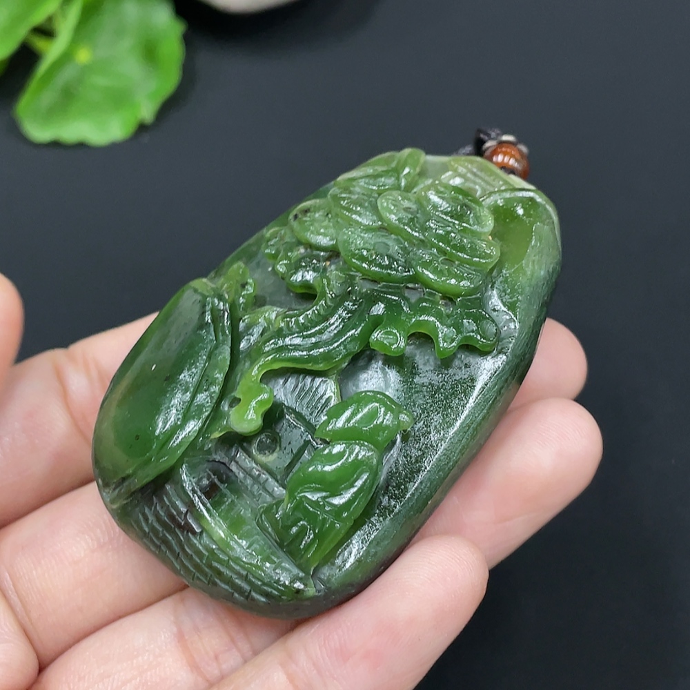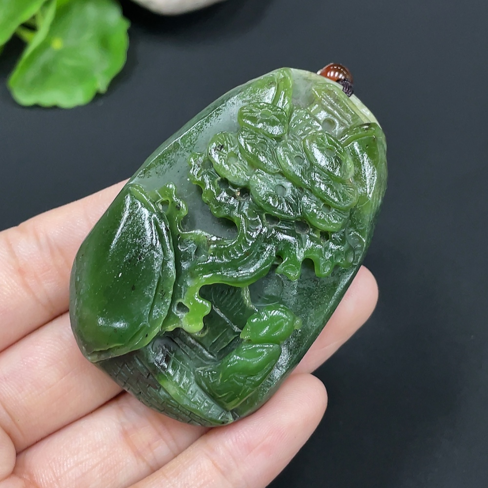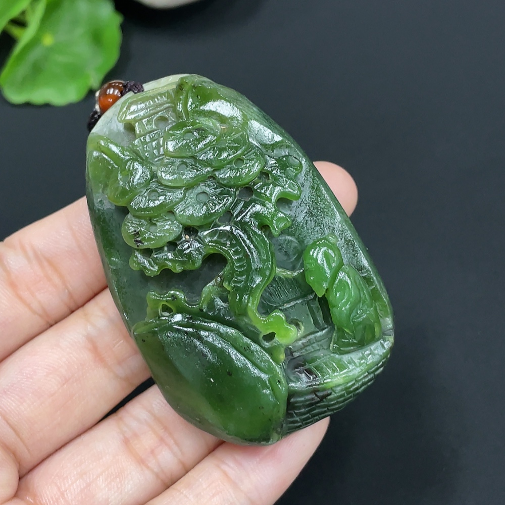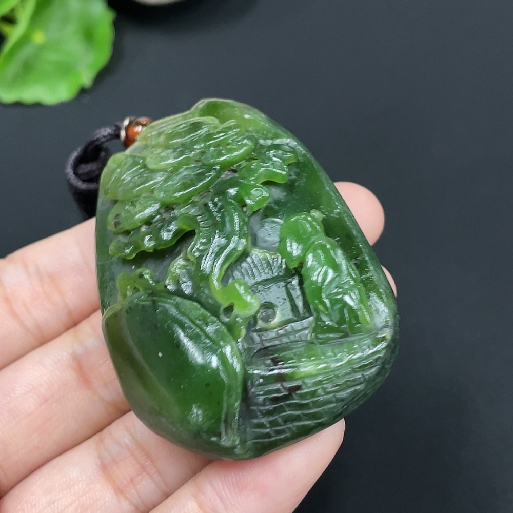 Hetian Jade Pendant, Landscape, Total Weight (with rope) Approx. 60.3g