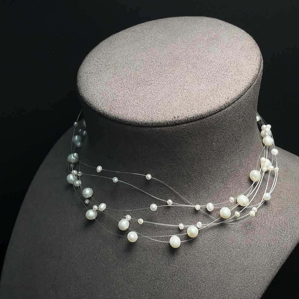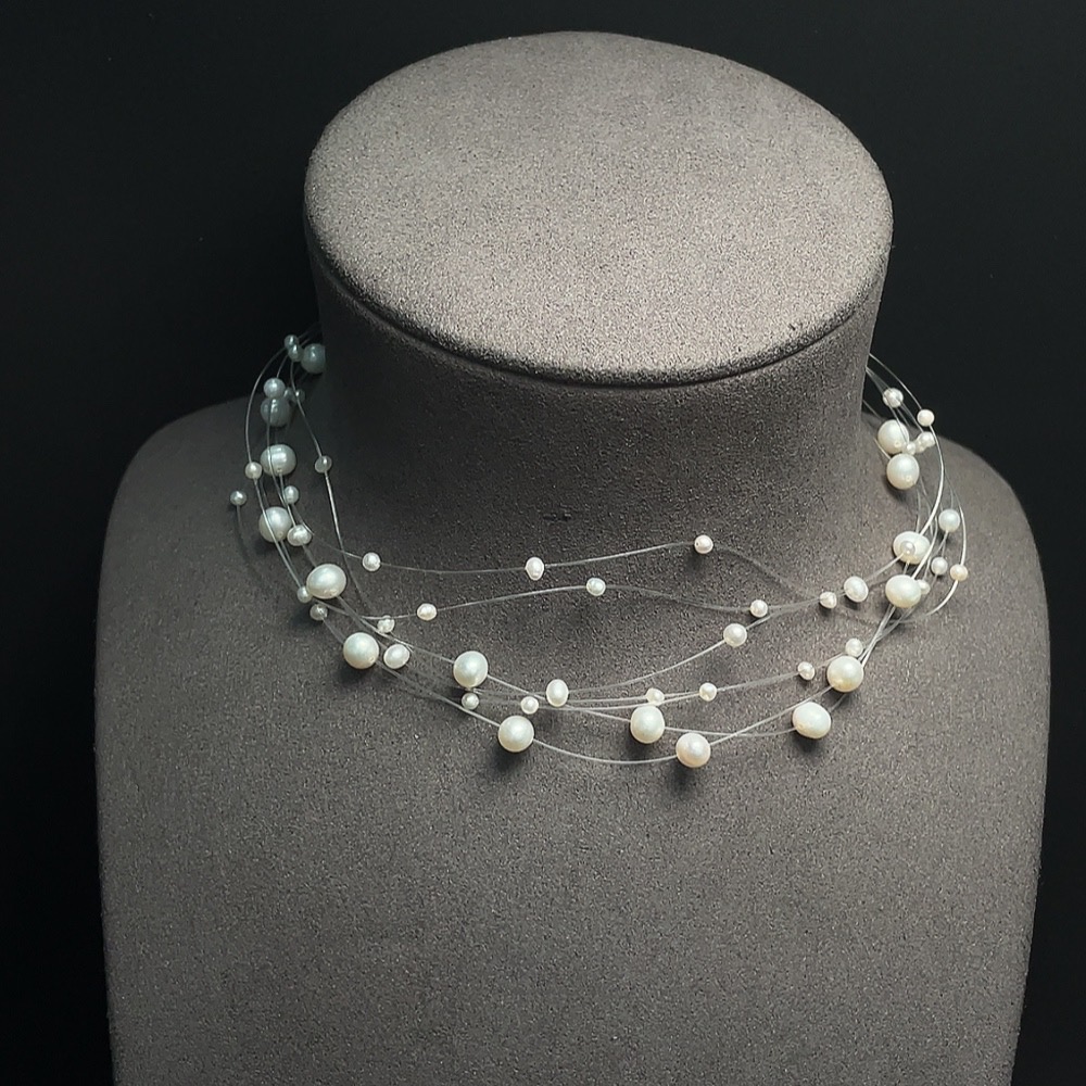 Pearl Bead Necklace Non-Gold Setting Size Approx. 2.7-6.1mm Total Weight Approx. 9.45g