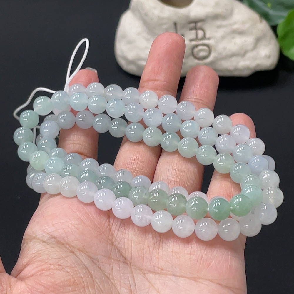 Jadeite Bead Necklace Approximately 7.3mm Bead Size Total Weight About 61.9g