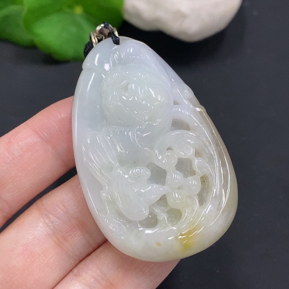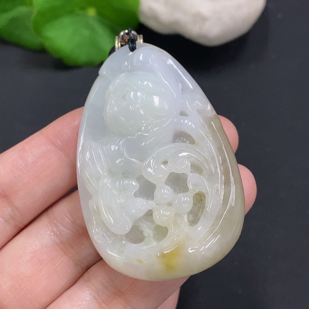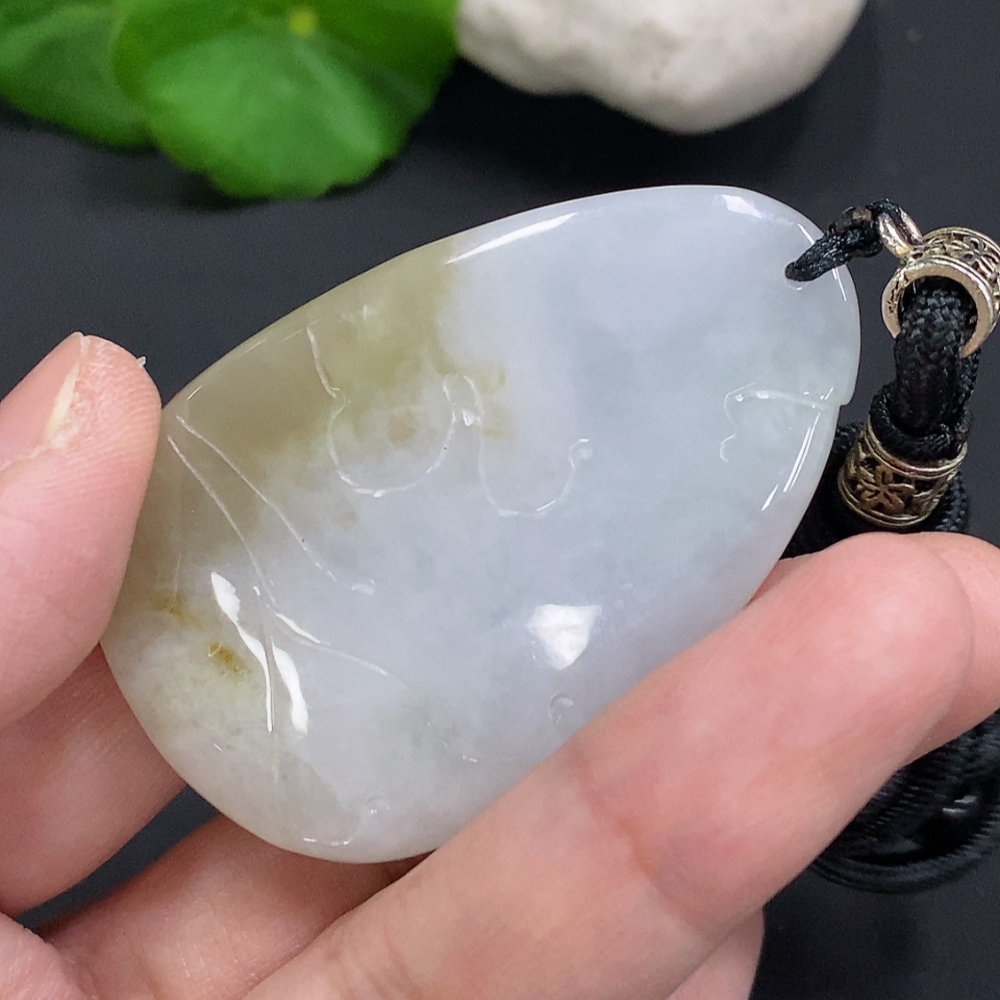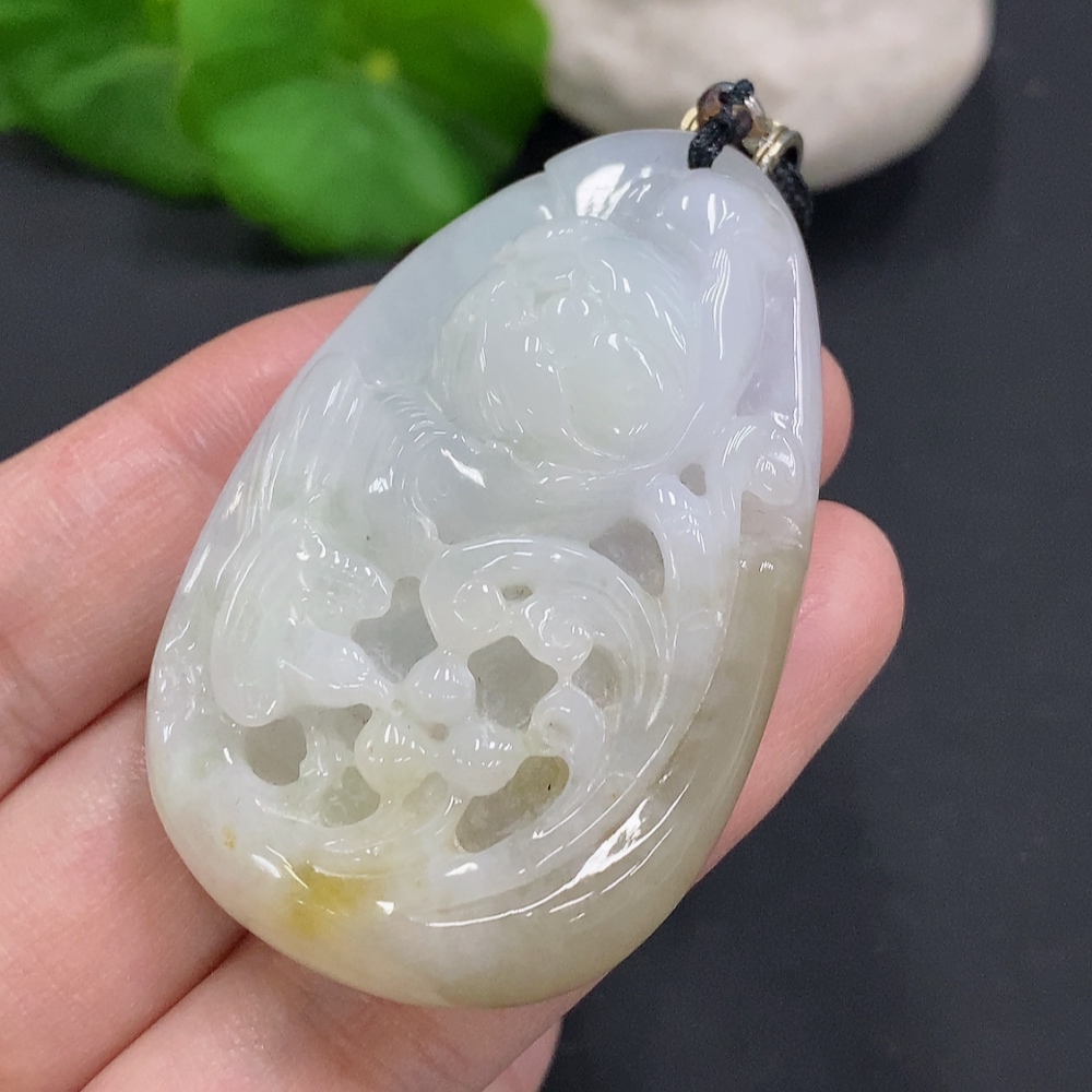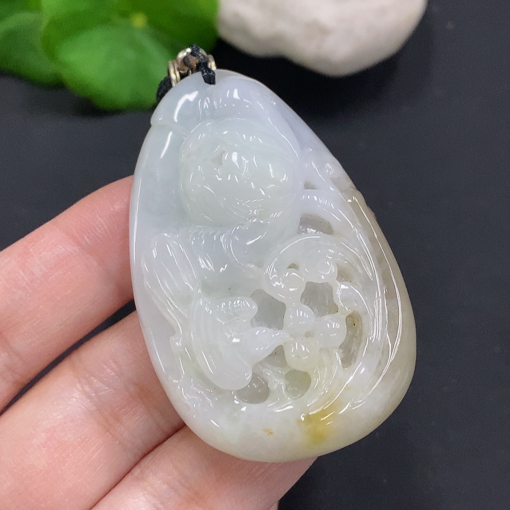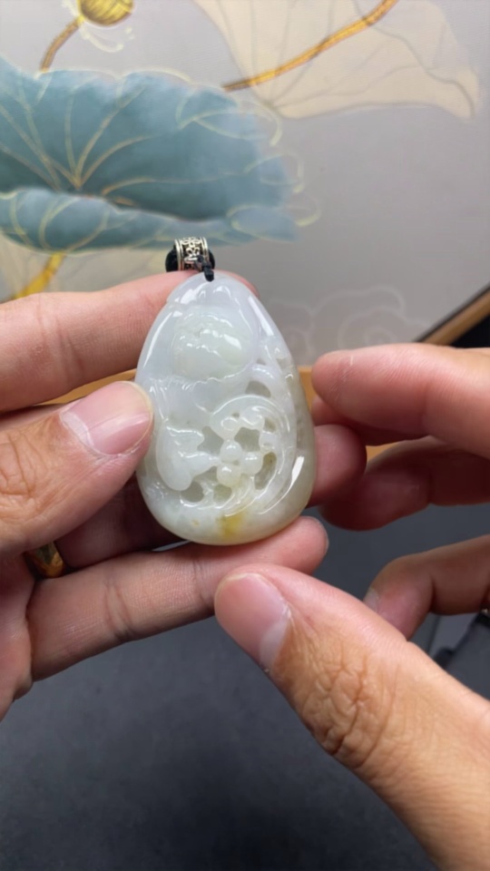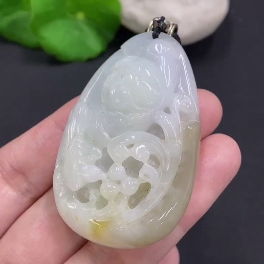 Jadeite Blossom of Wealth and Honor Pendant, total weight including rope approximately 50.7g
