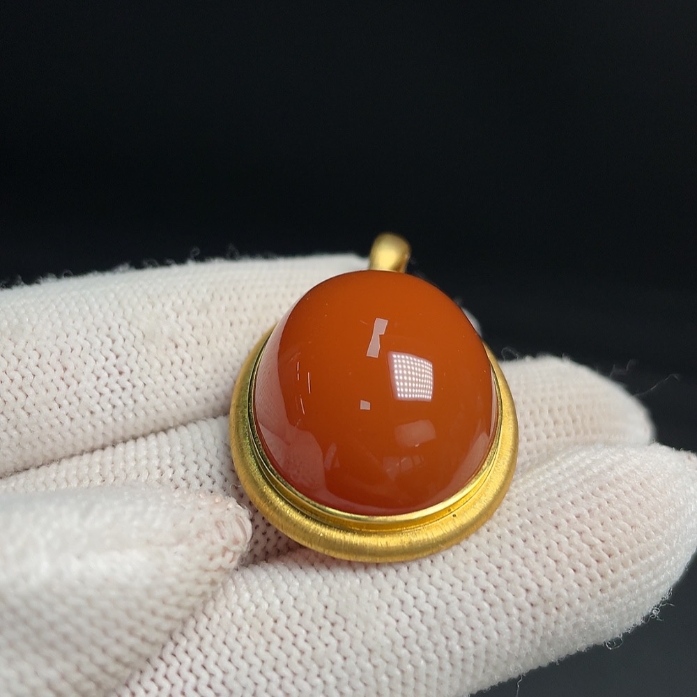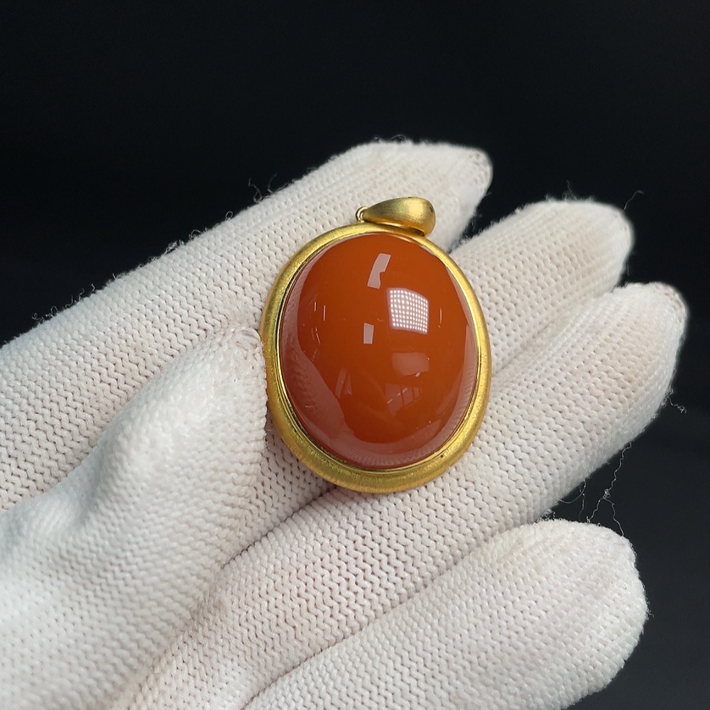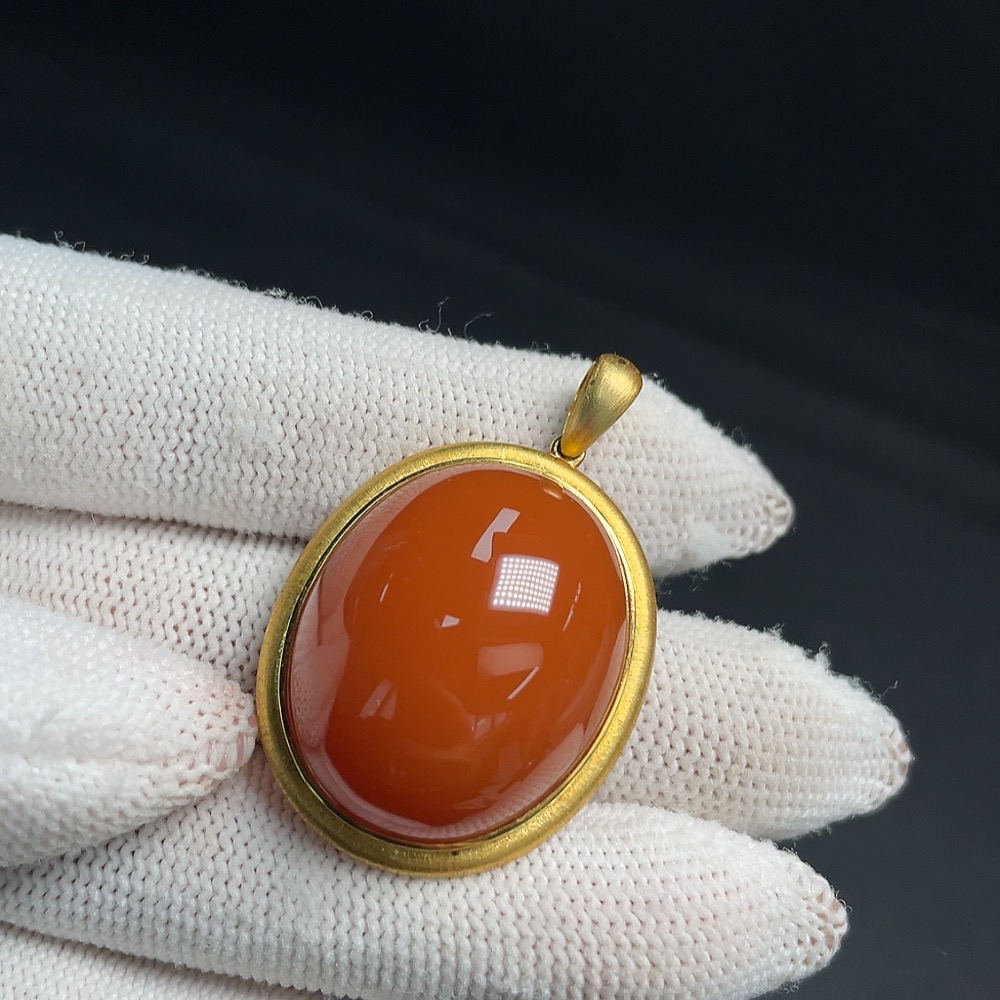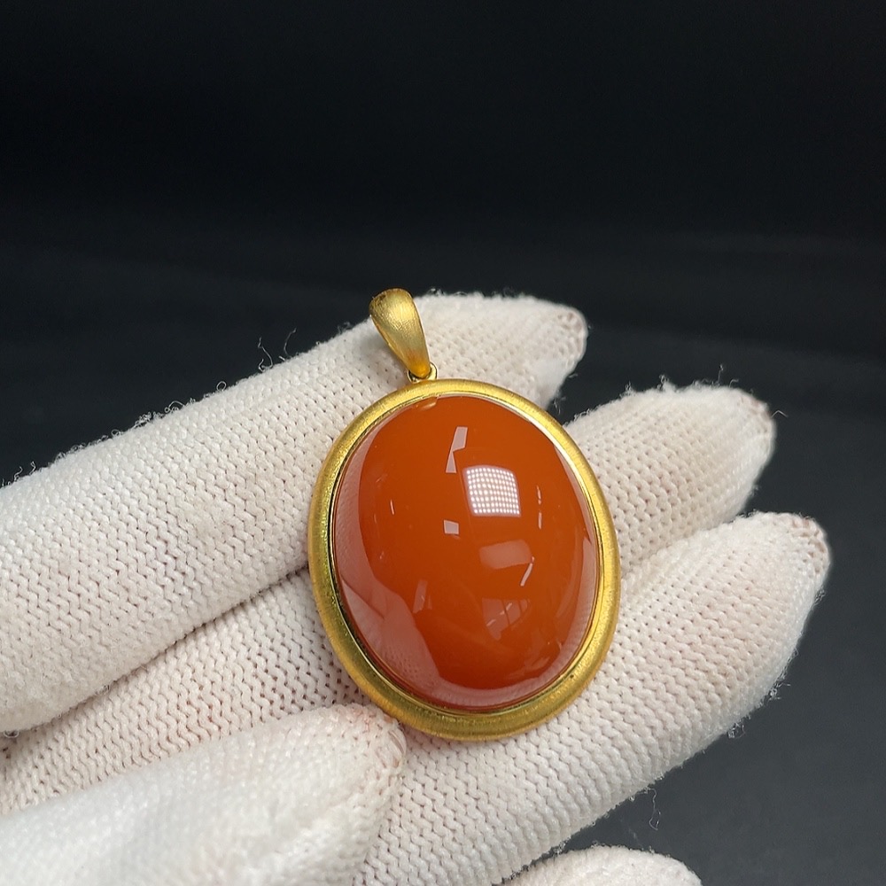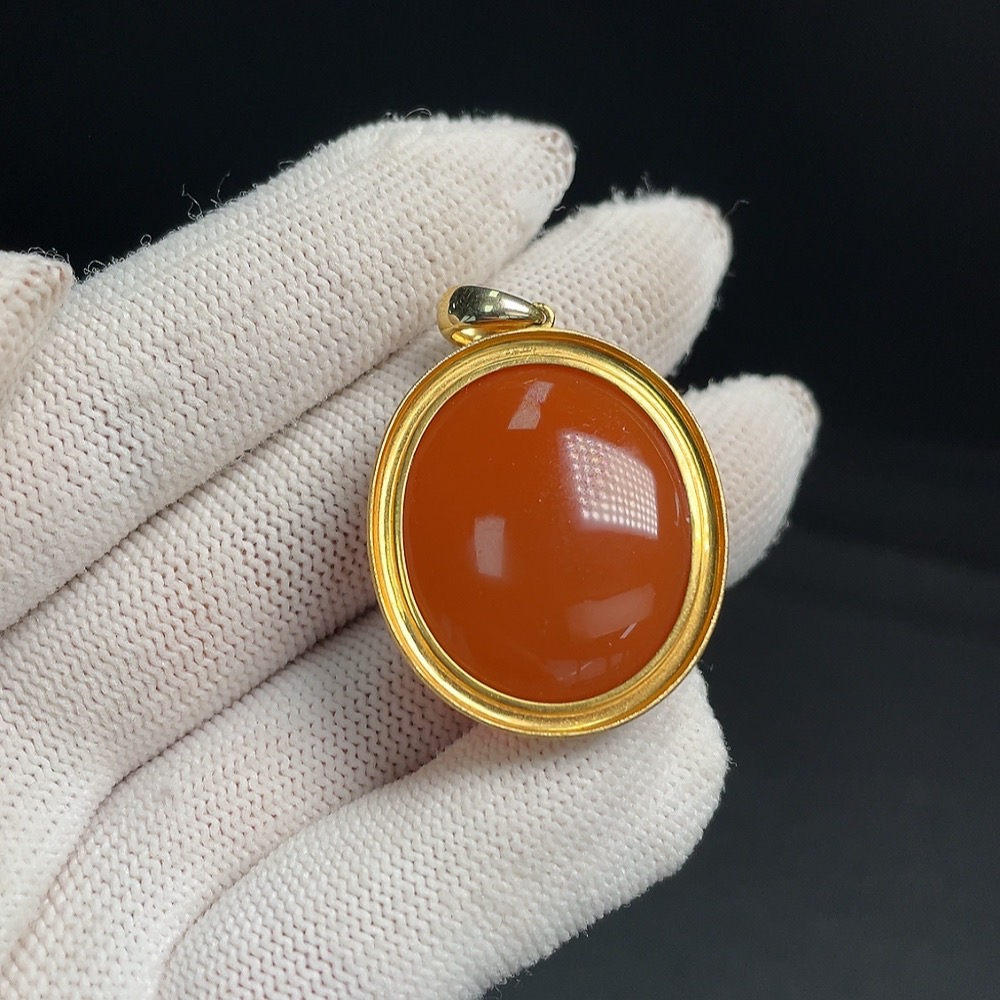 South Red Agate Inlaid Pendant 18K Gold Total Product Weight Approx. 15.74g